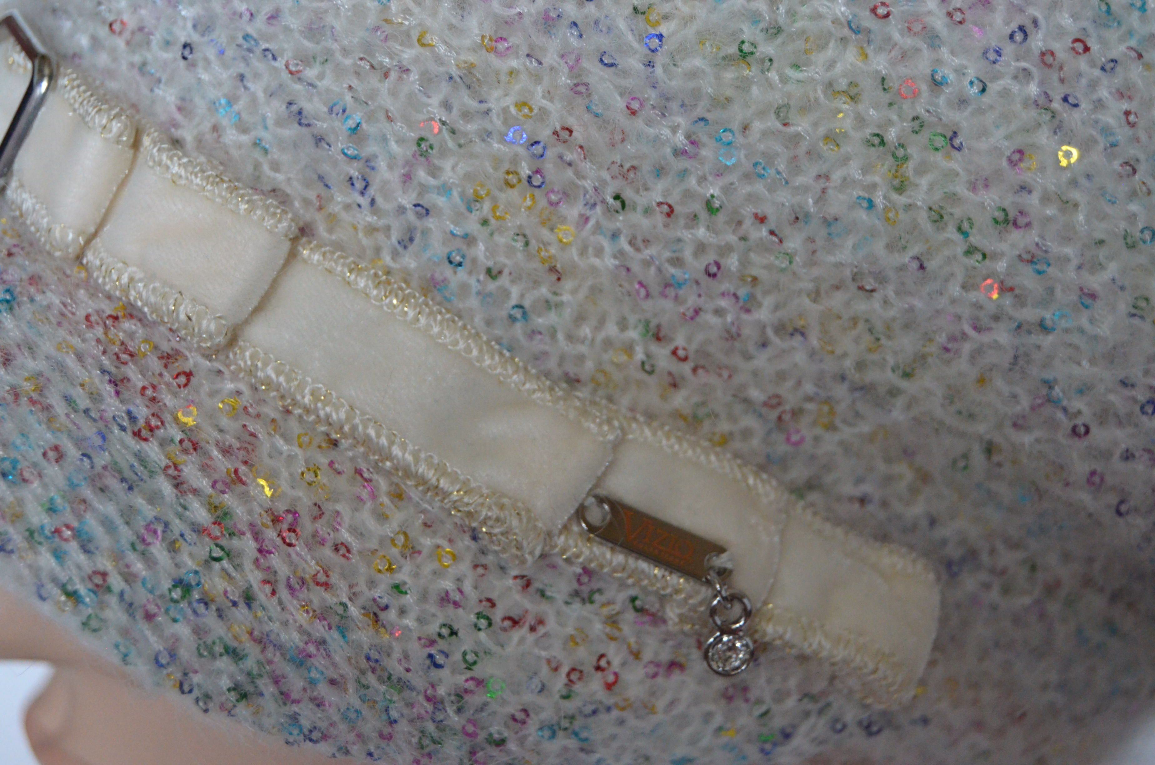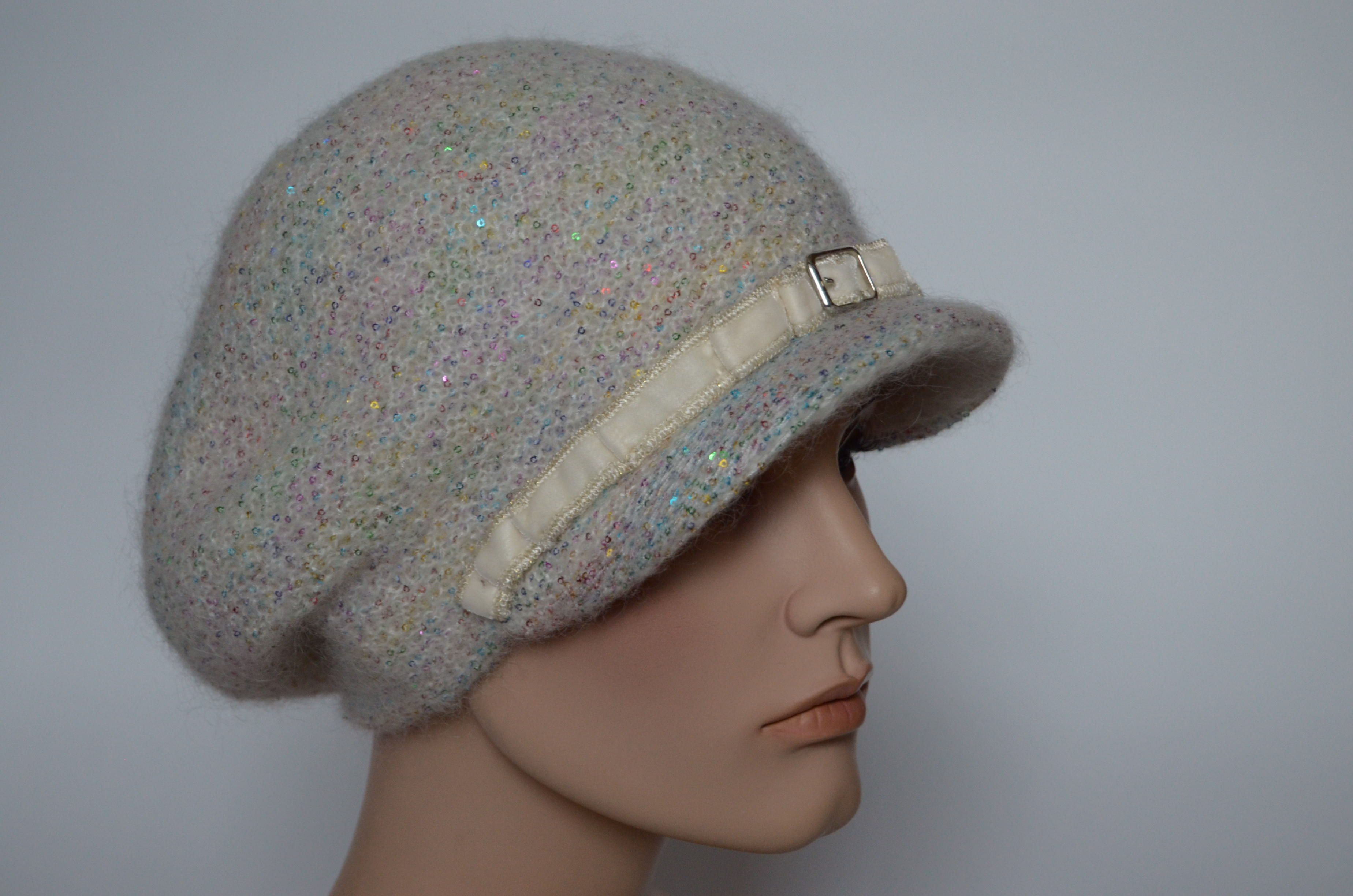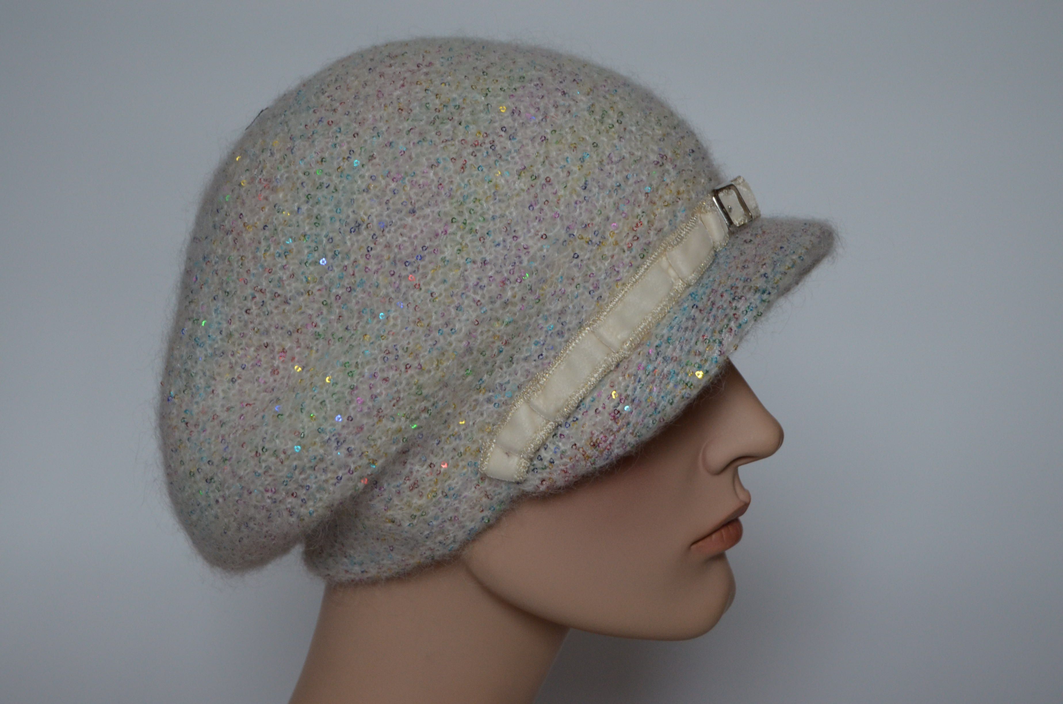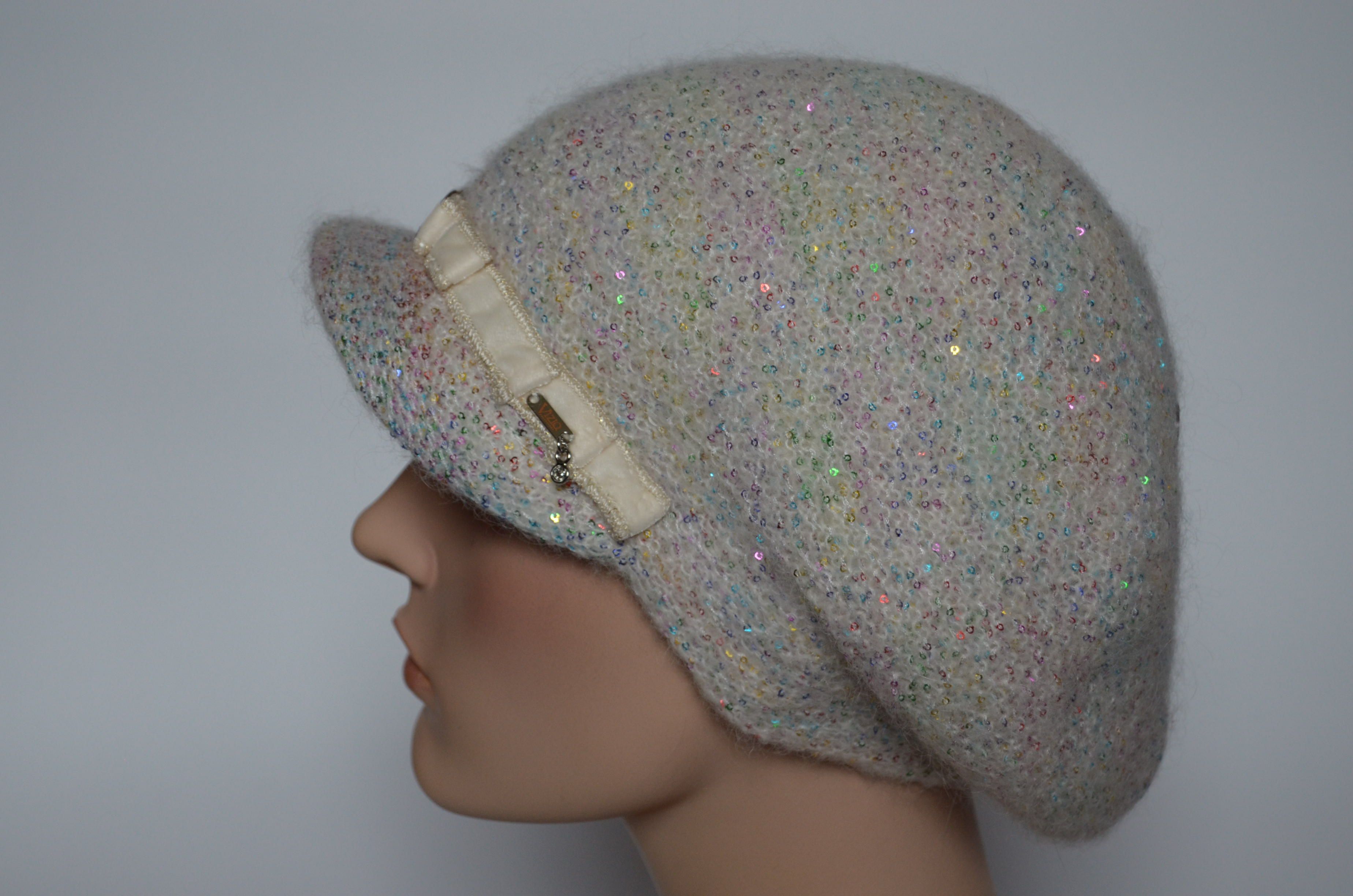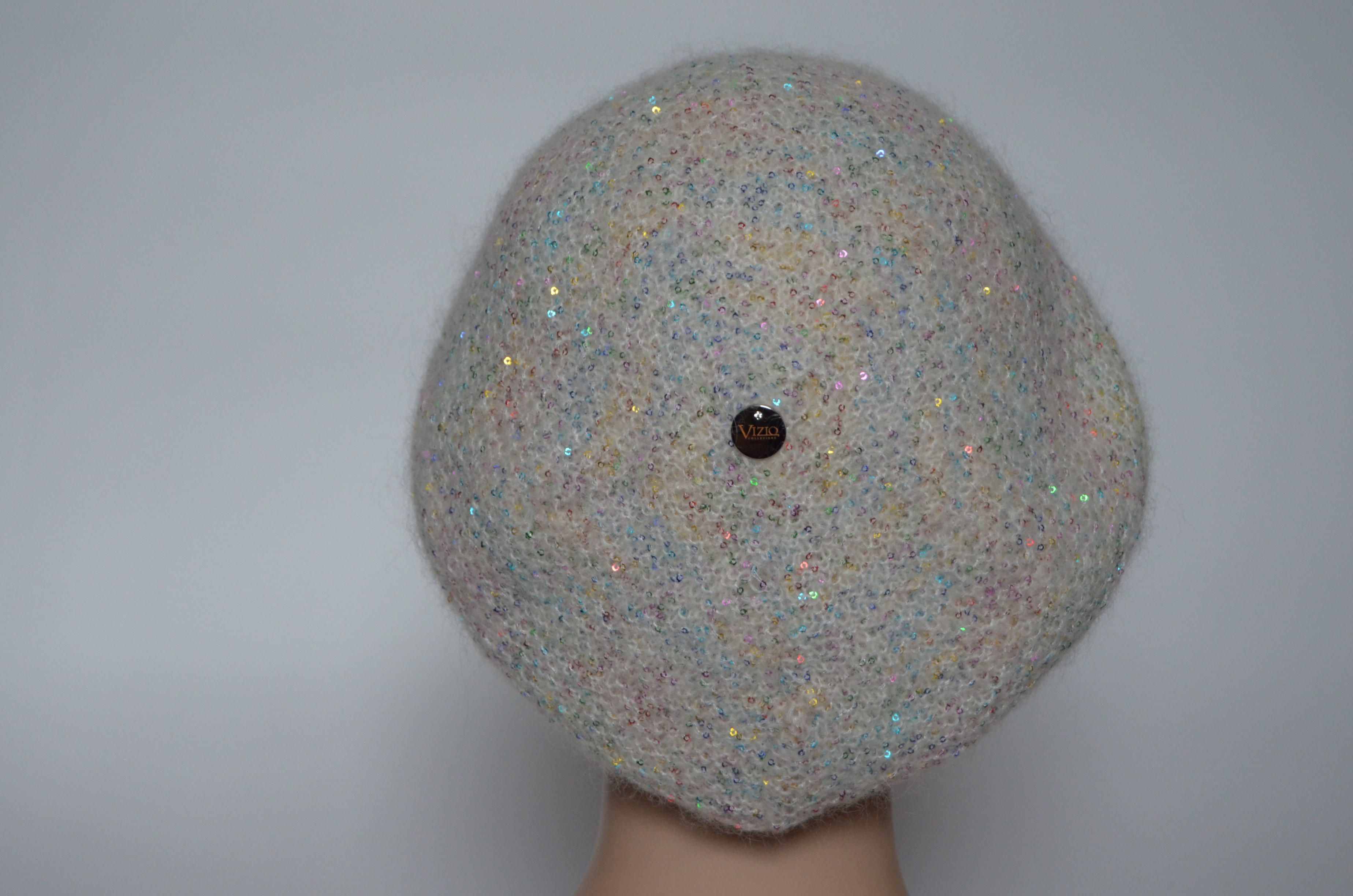 Вязаная кепка для женщин зима 2021 - 2022 Vizio Италия 6997 белая с разноцветными пайетками купить в интернет магазине итальянских кепок и беретов Москва и Россия