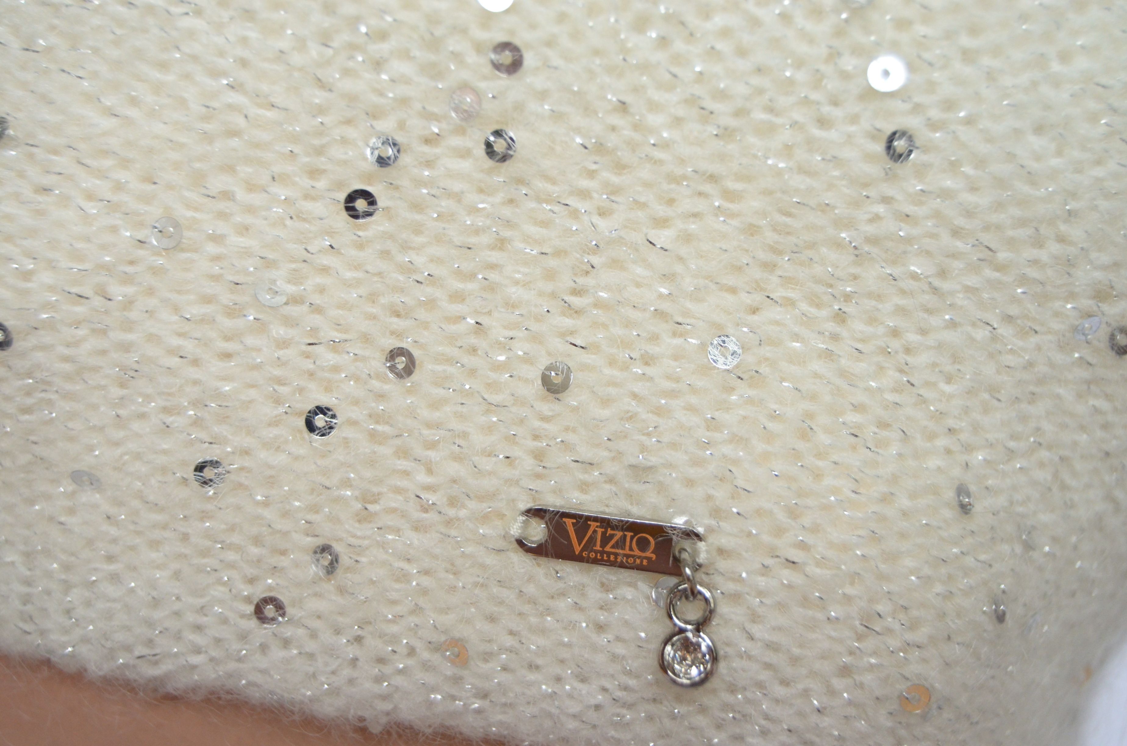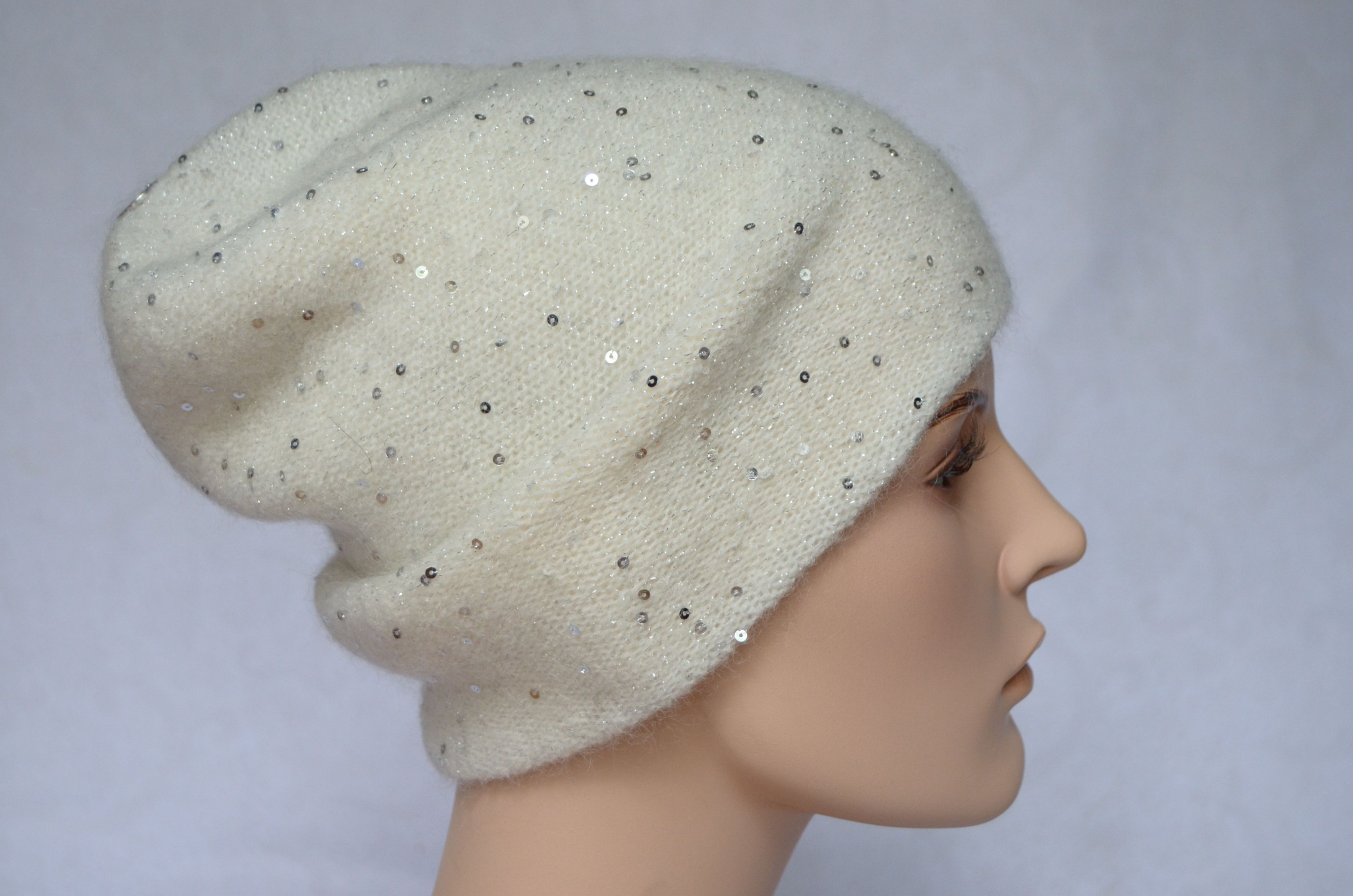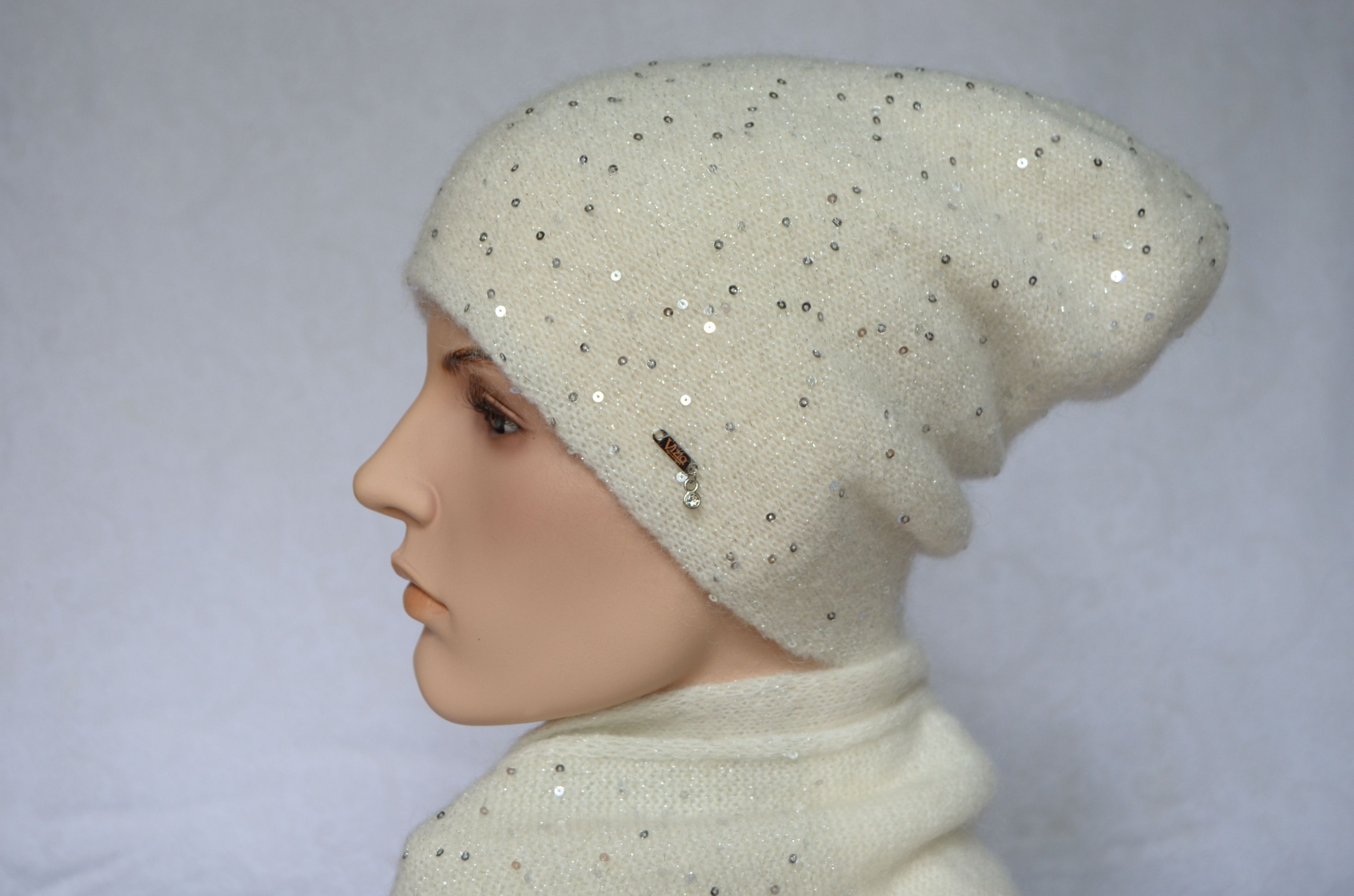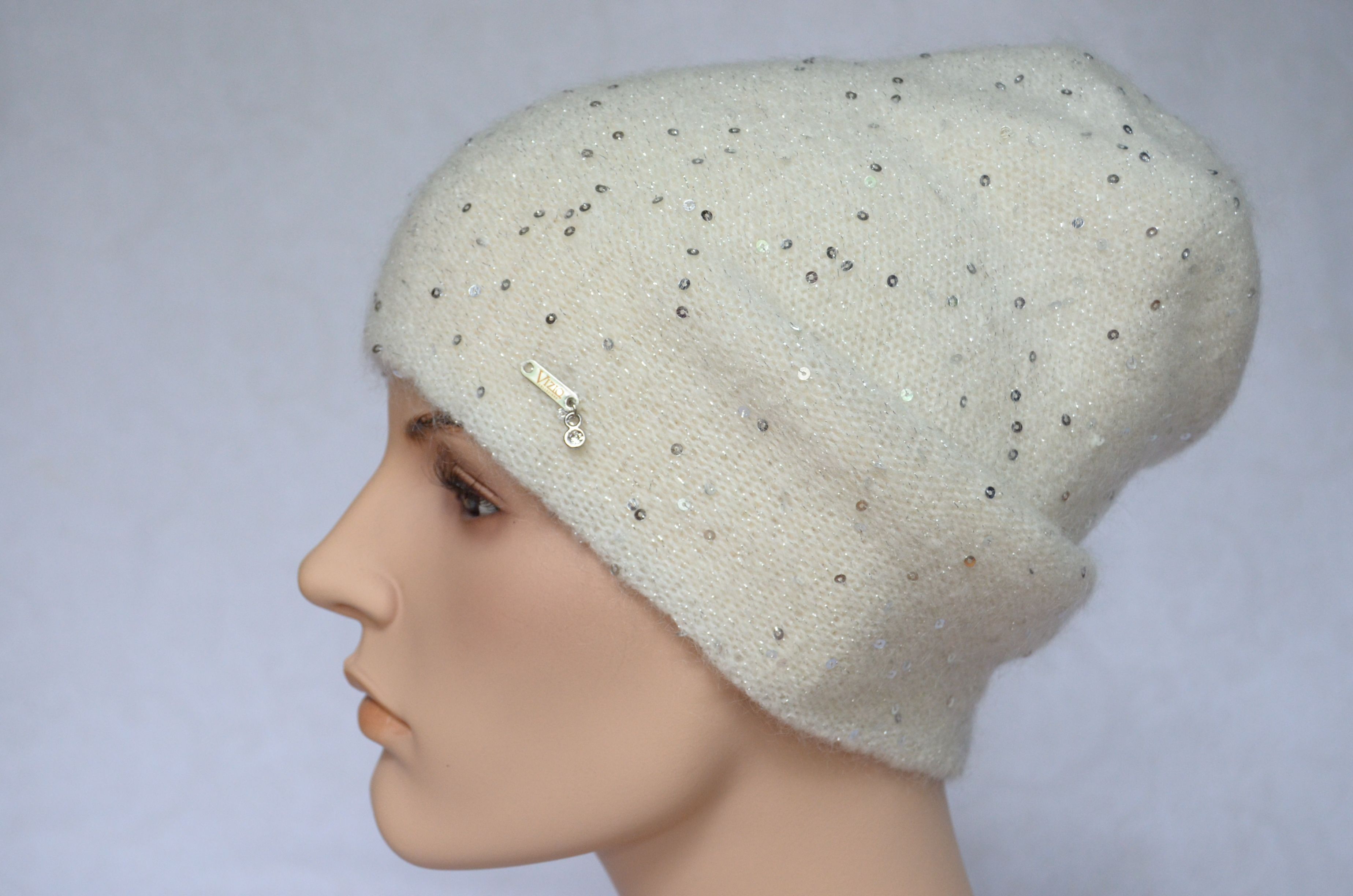 Итальянская белая удлиненная шапка с пайетками Vizio Италия 6943 CL зима 2021 - 2022 купить в Москве и России интернет магазин