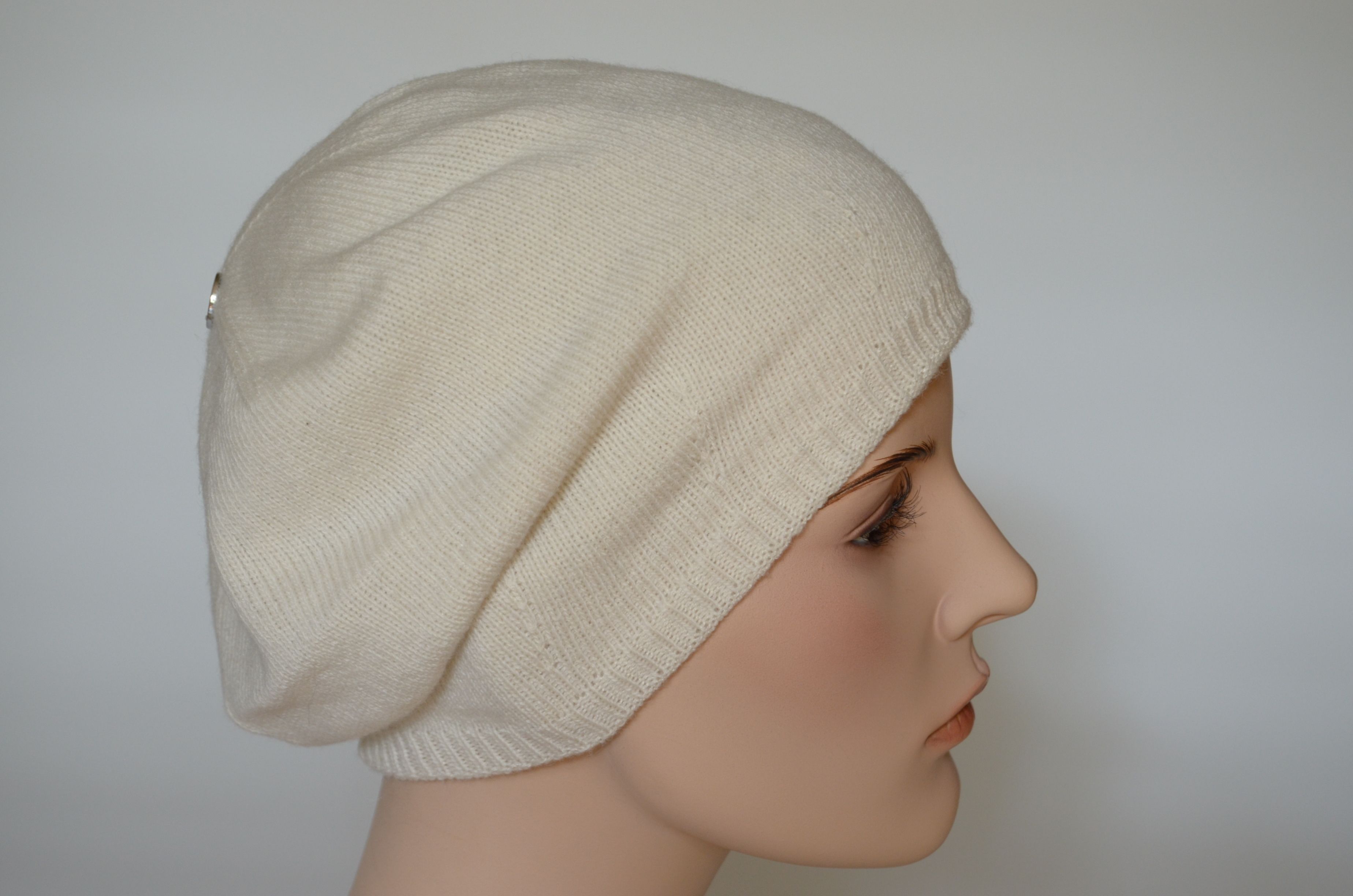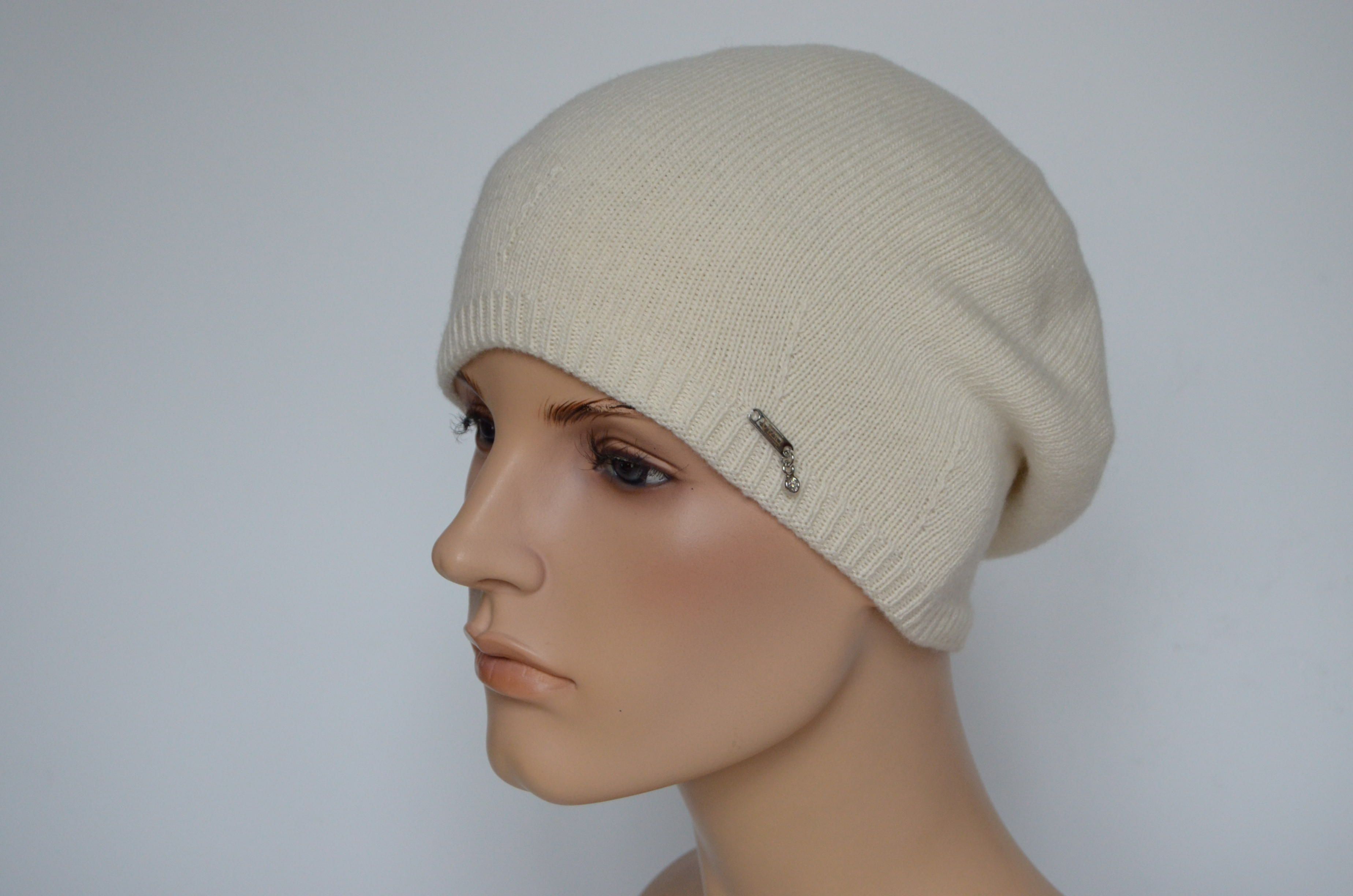 Женский берет из кашемира белого цвета зимний