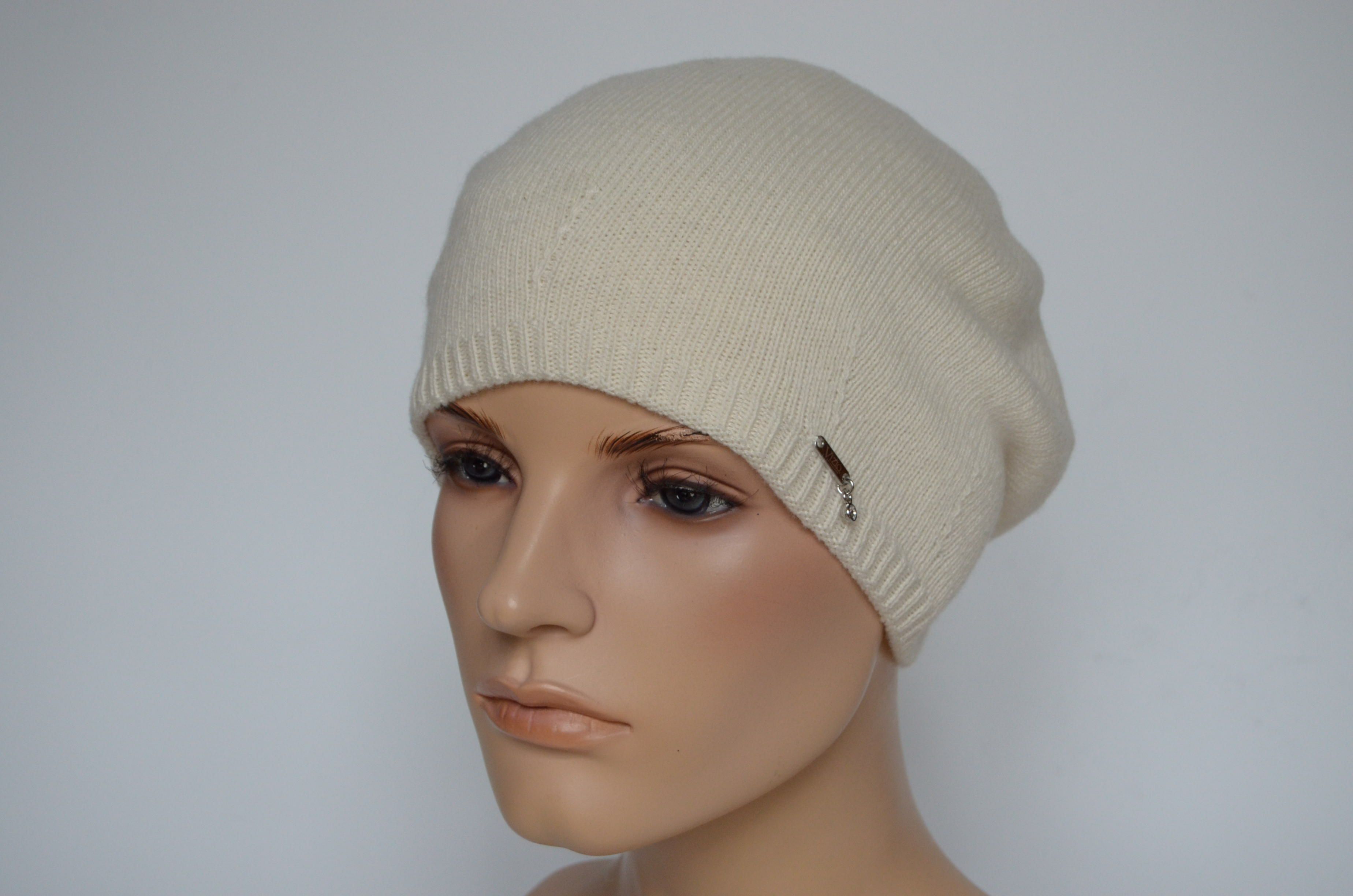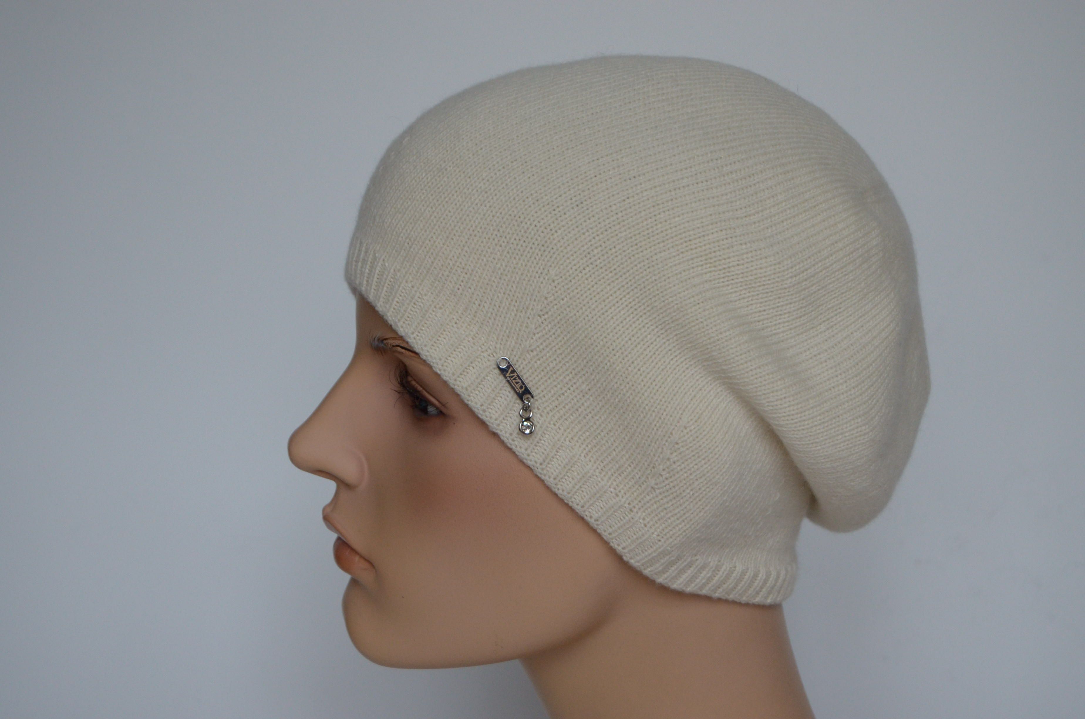 Вязаный белый женский берет кашемировый Loro Piana Италия Vizio 7016 коллекция головных уборов Vizio Collezione из стопроцентного кашемира Лоро Пьяно