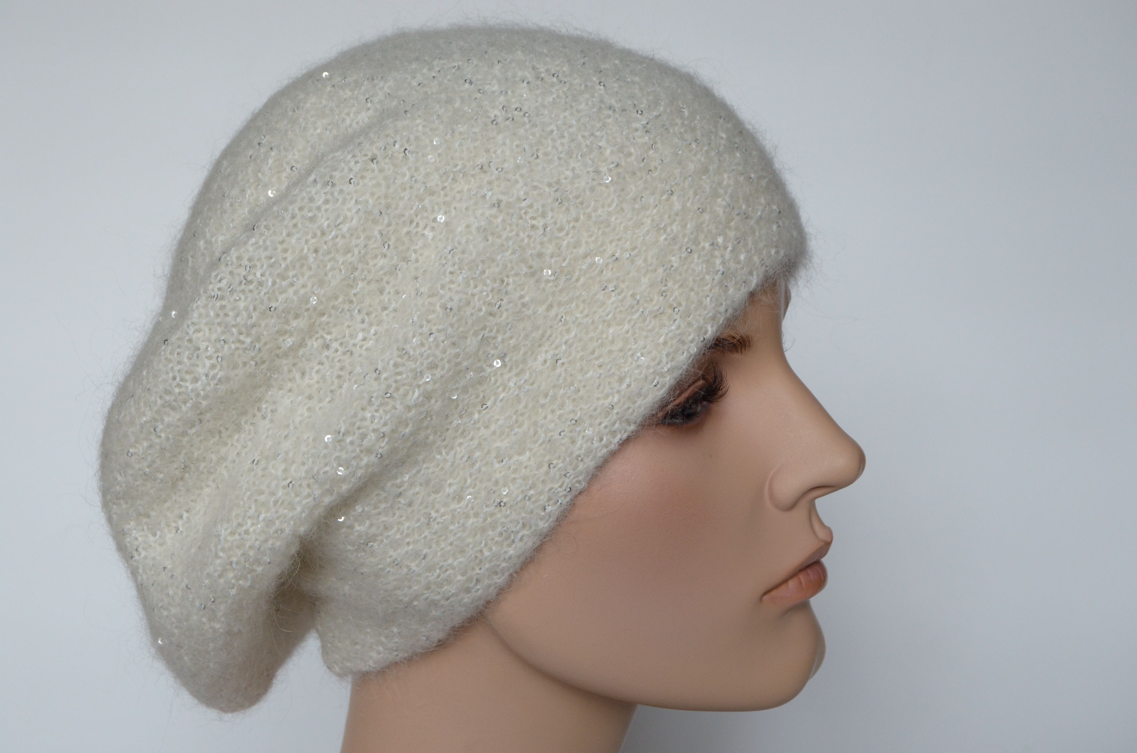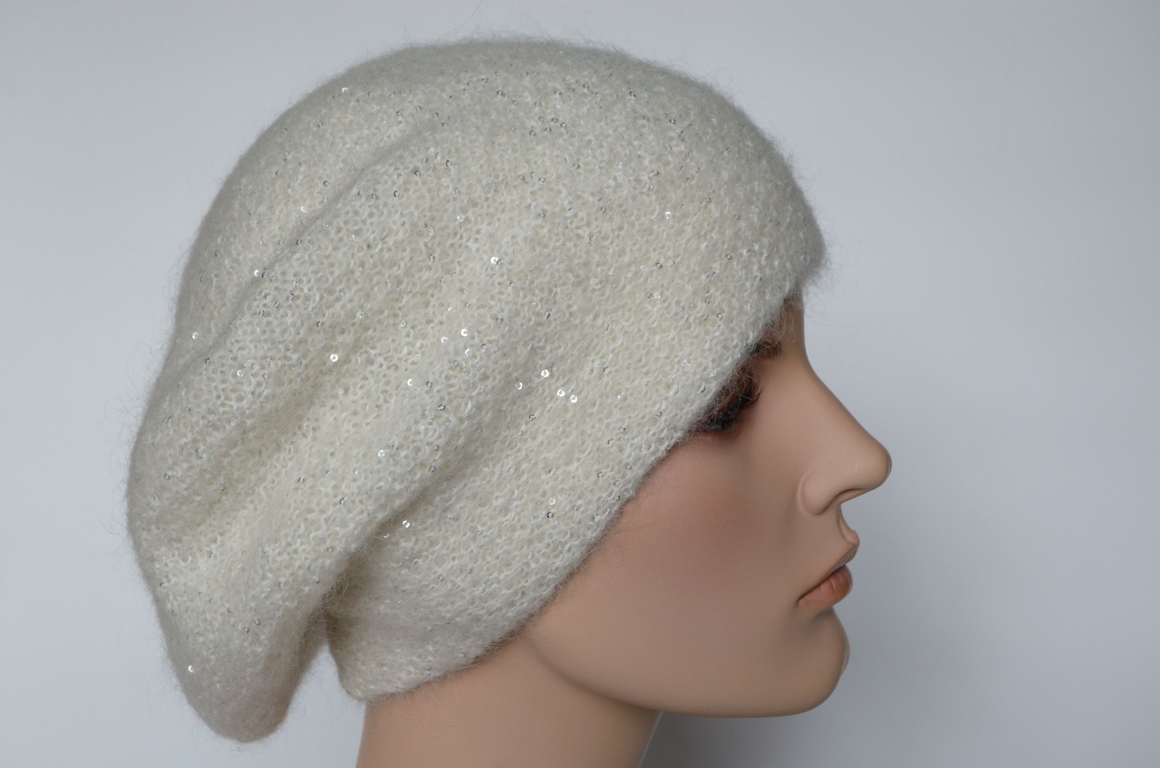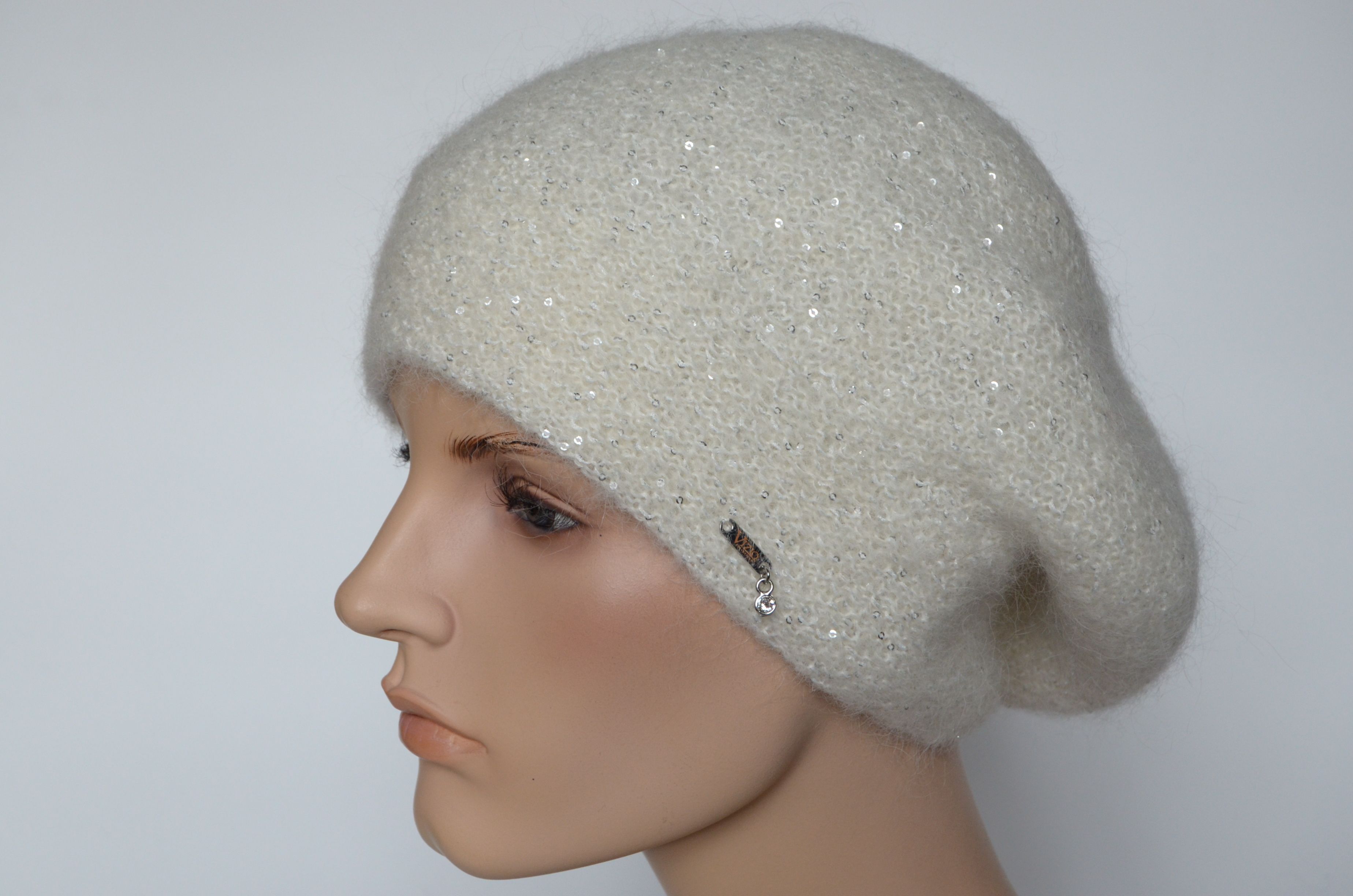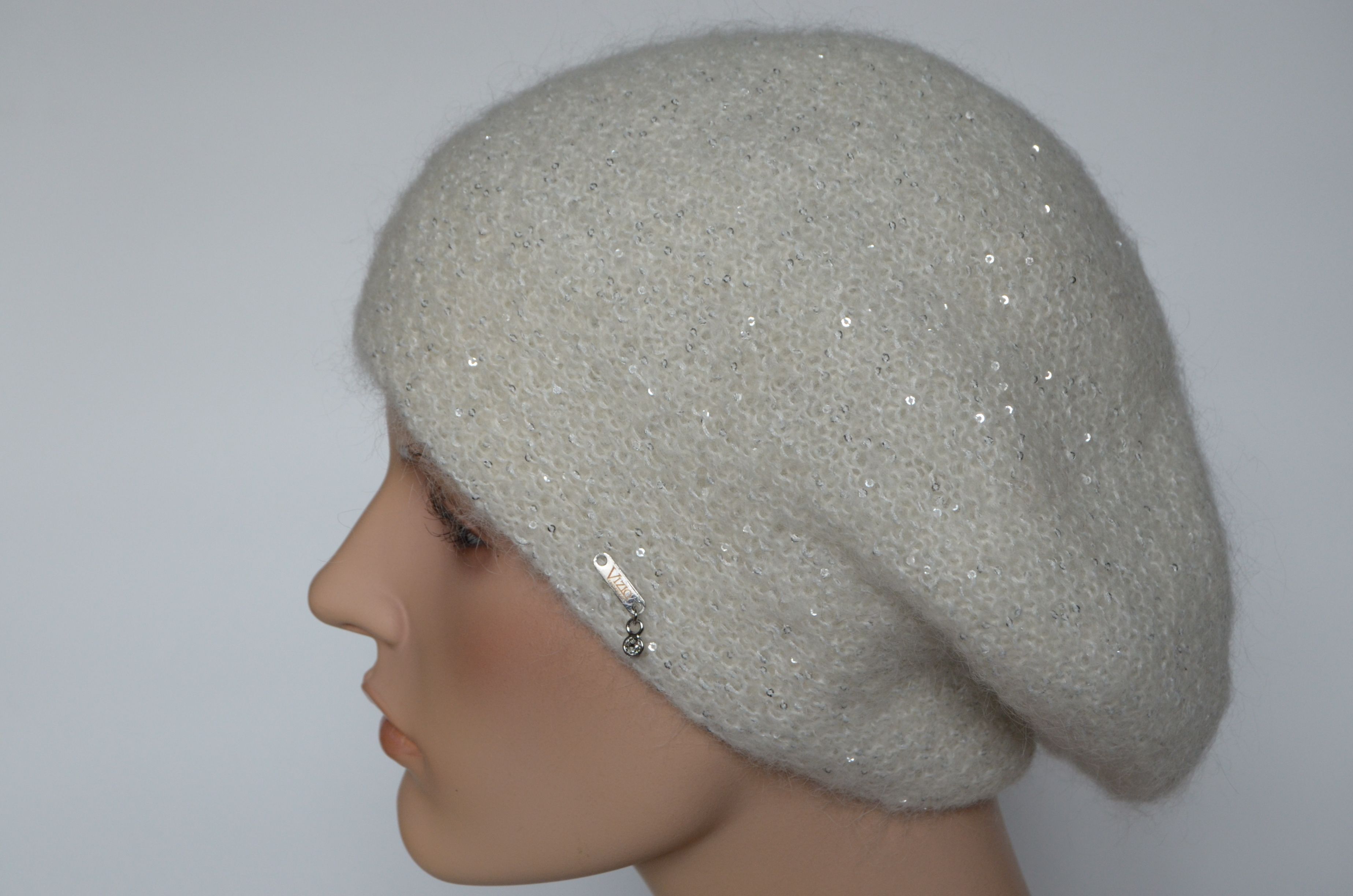 Вязаный белый берет с мелкими пайетками для женщин зима 2021 - 2022 Vizio Италия 6997 зимний купить в интернет магазине итальянских кепок и беретов Москва и Россия