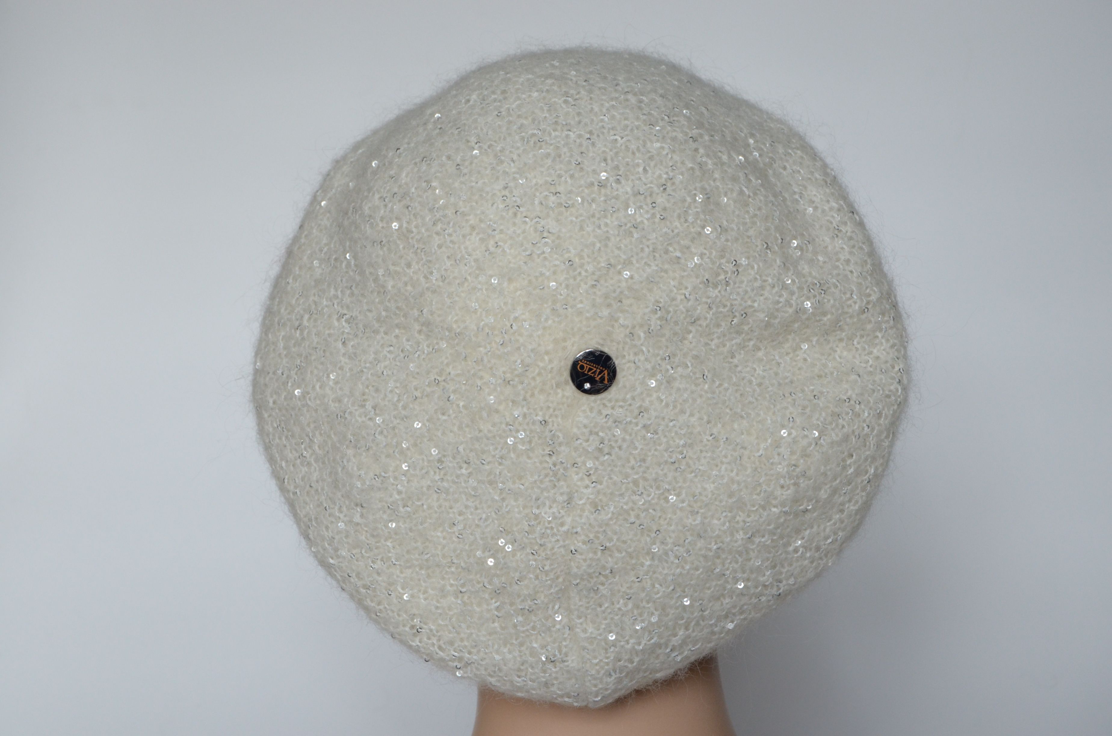 Женский белый берет с мелкими пайетками зима 2022 Визио Vizio Италия 6997 новая коллекция итальянских зимних вязаных беретов для женщин Vizio Collezione