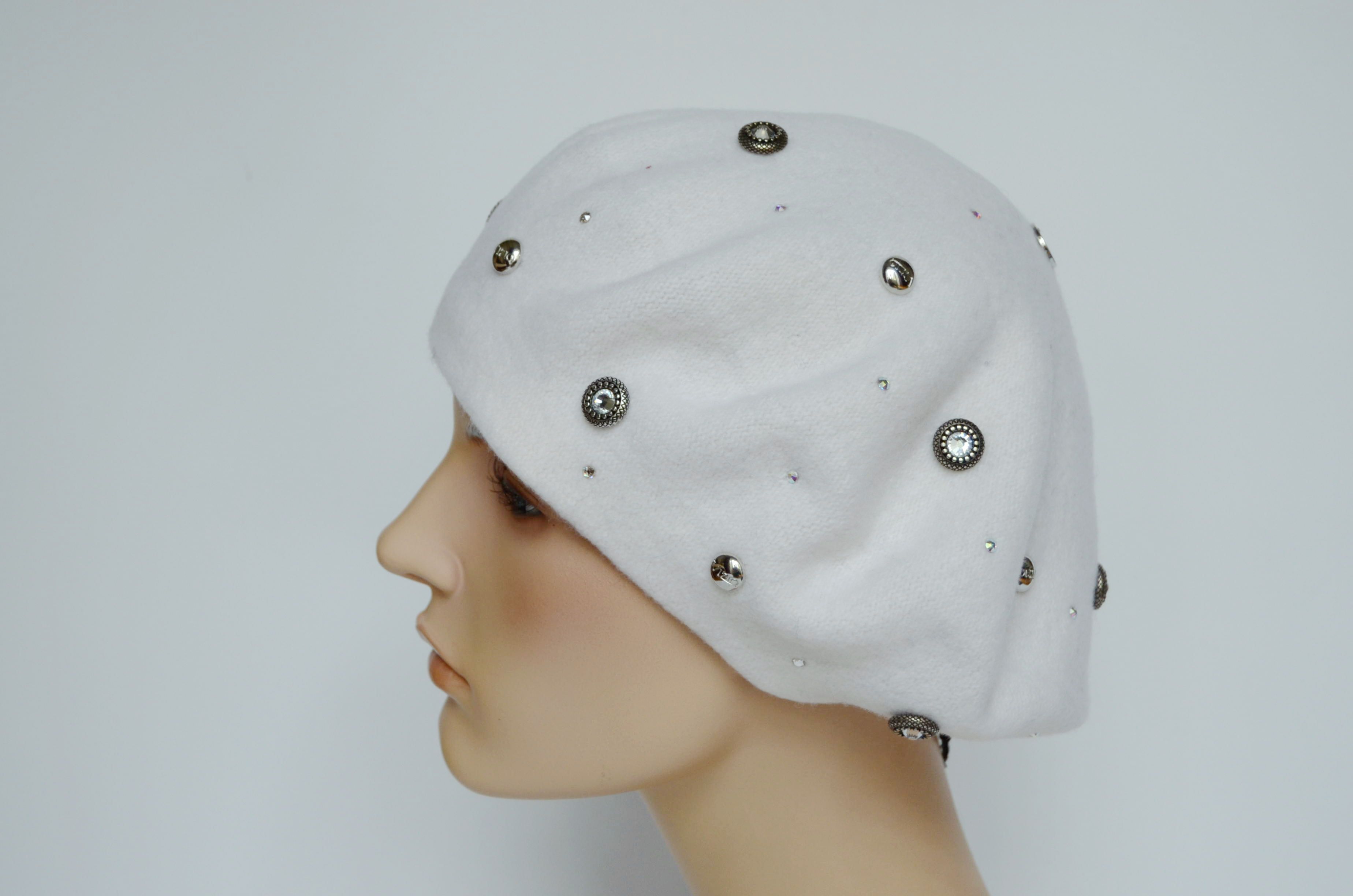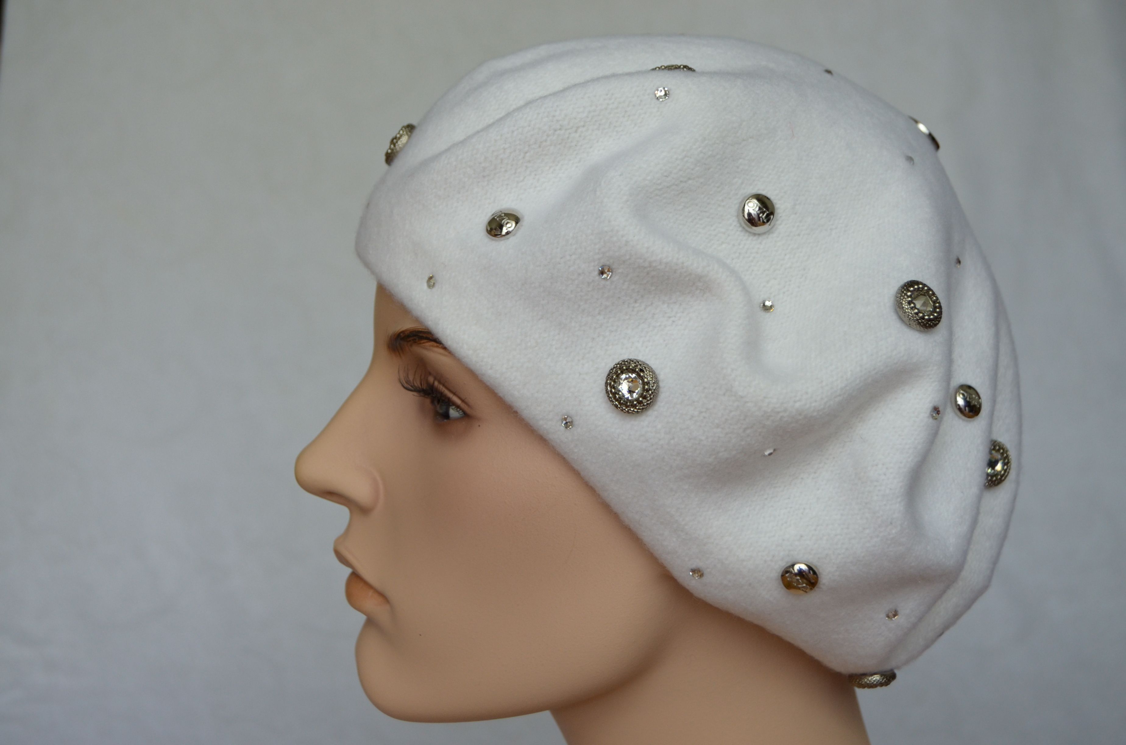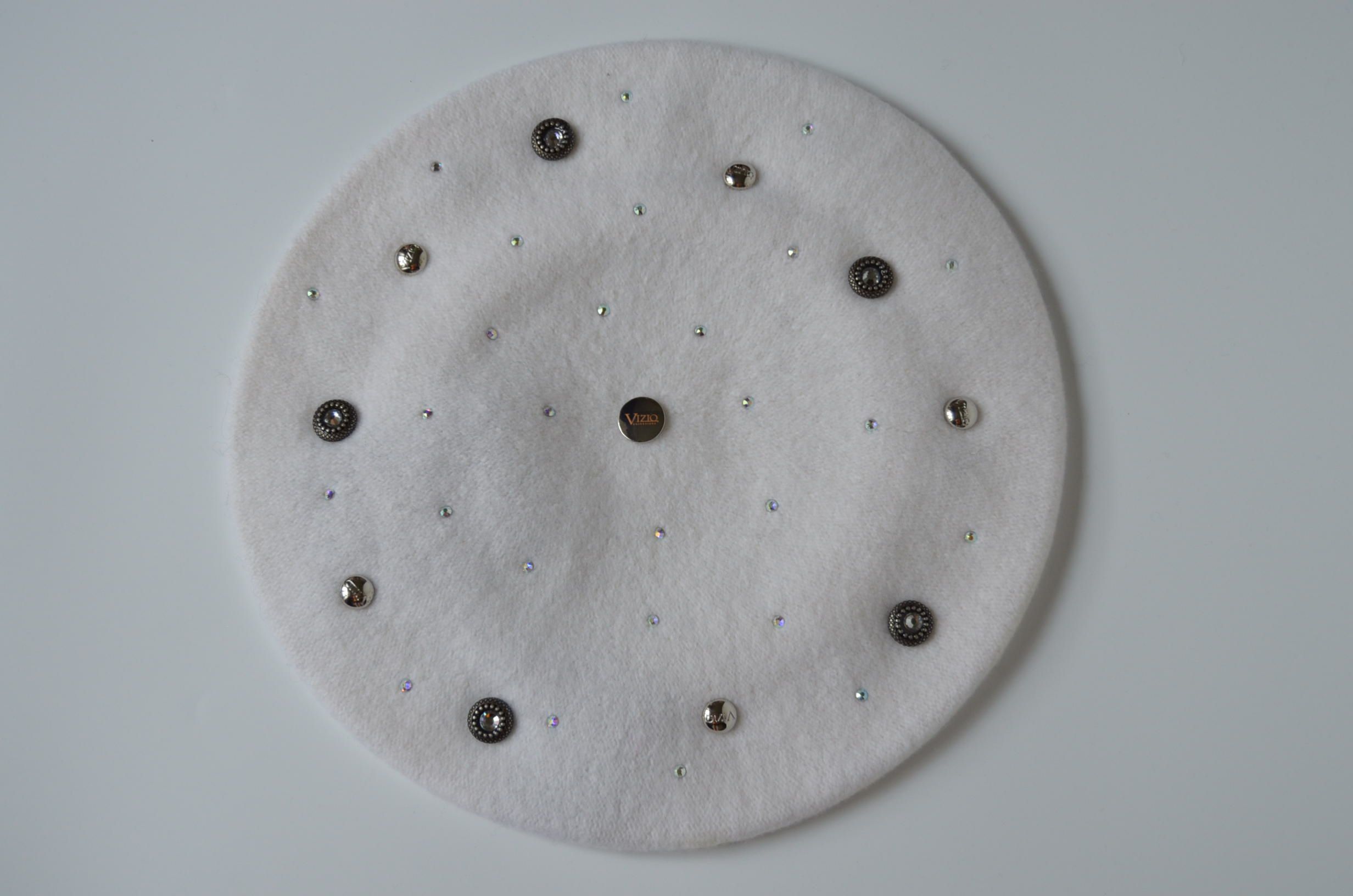 Женский фетровый берет белого цвета Vizio Италия 3633 популярная модель берета из фетра со стразами Сваровски итальянского бренда женских головных уборов Vizio Collezione.Берет очень хорош в посадке и подходит под все формы женской головы