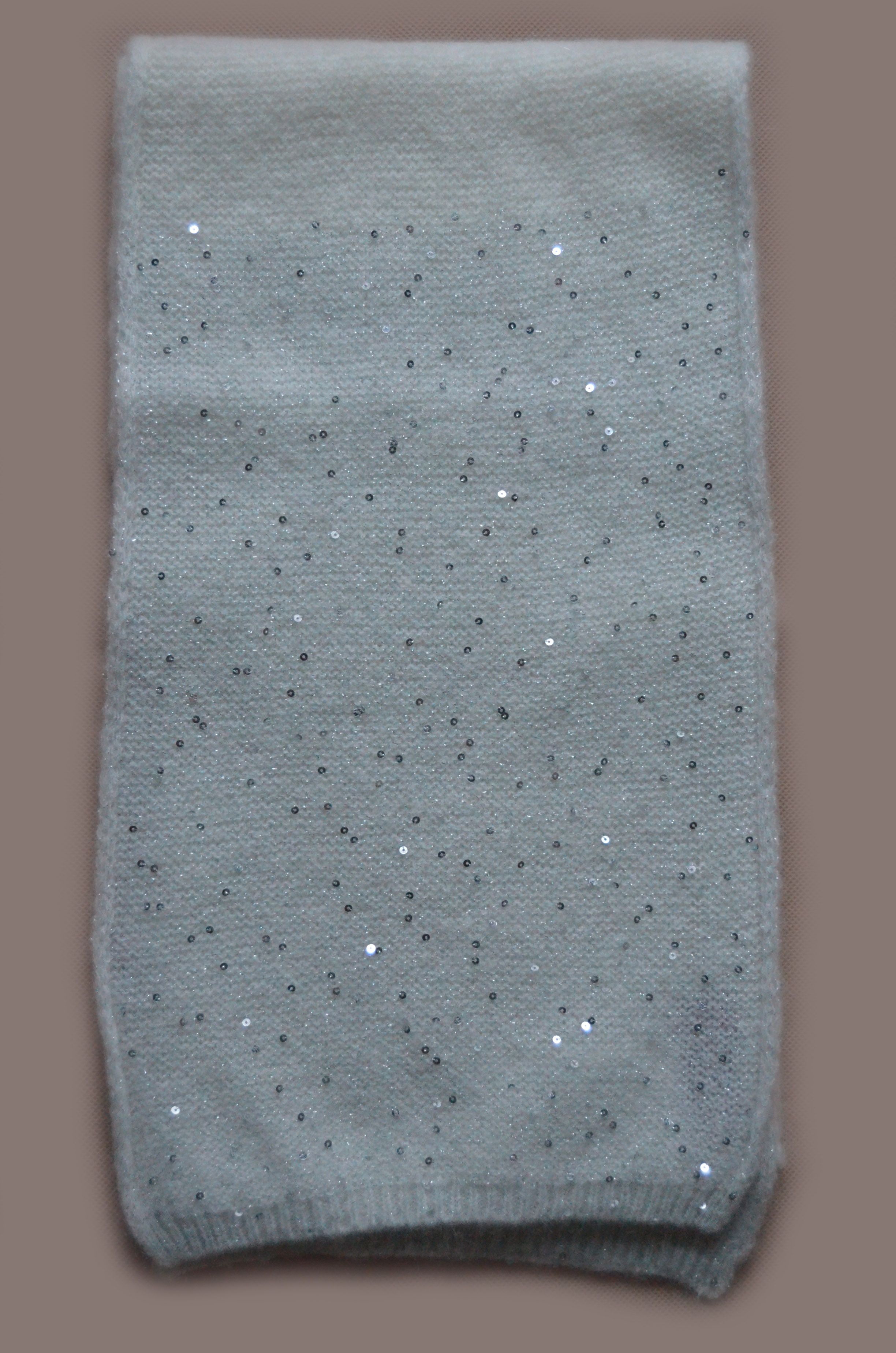 Белый вязаный шарф с серебристыми пайетками Италия Визио 6160 /6157/5609/5893/5851/5847 под итальянские шапки Vizio с пайетками