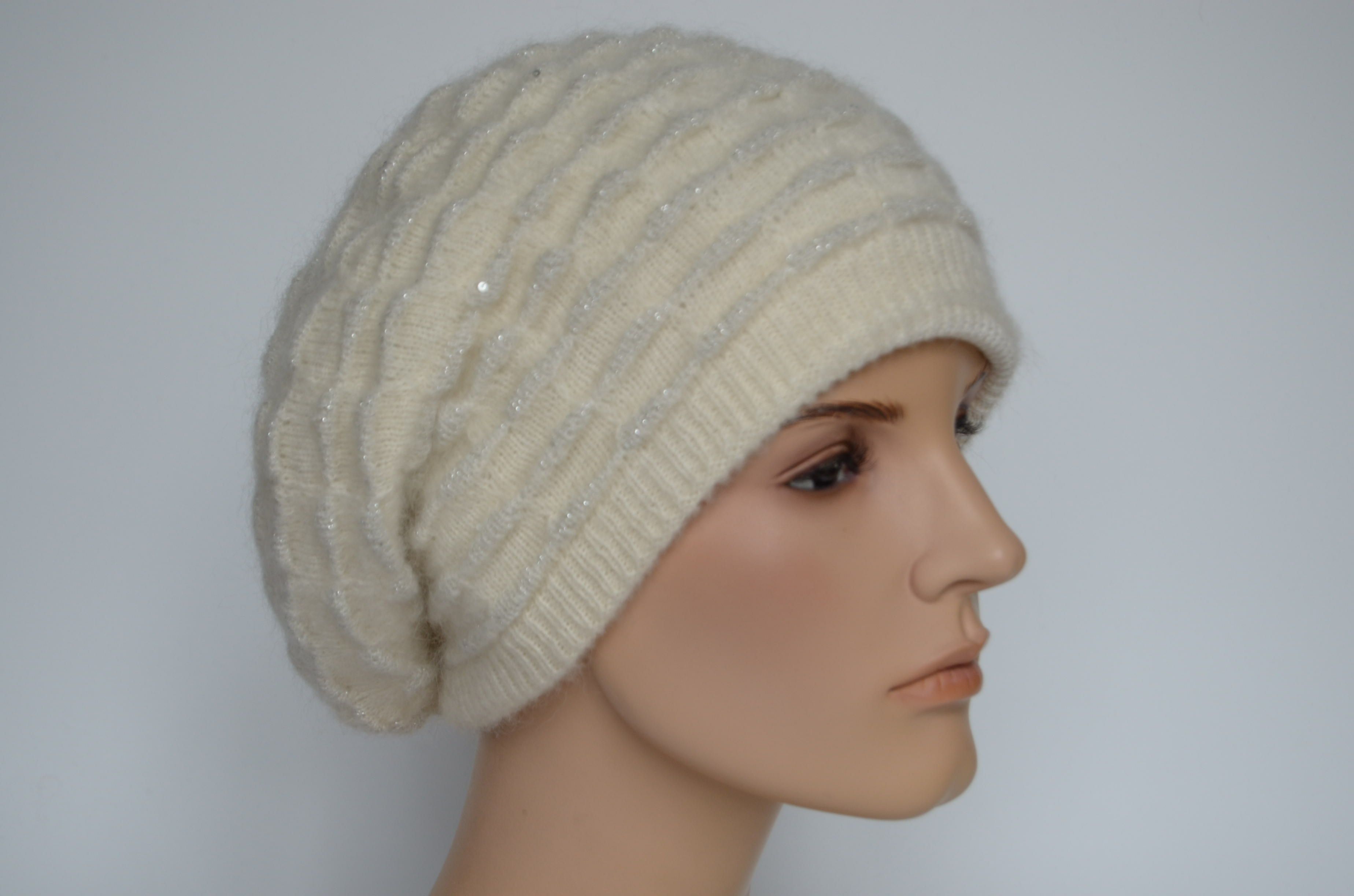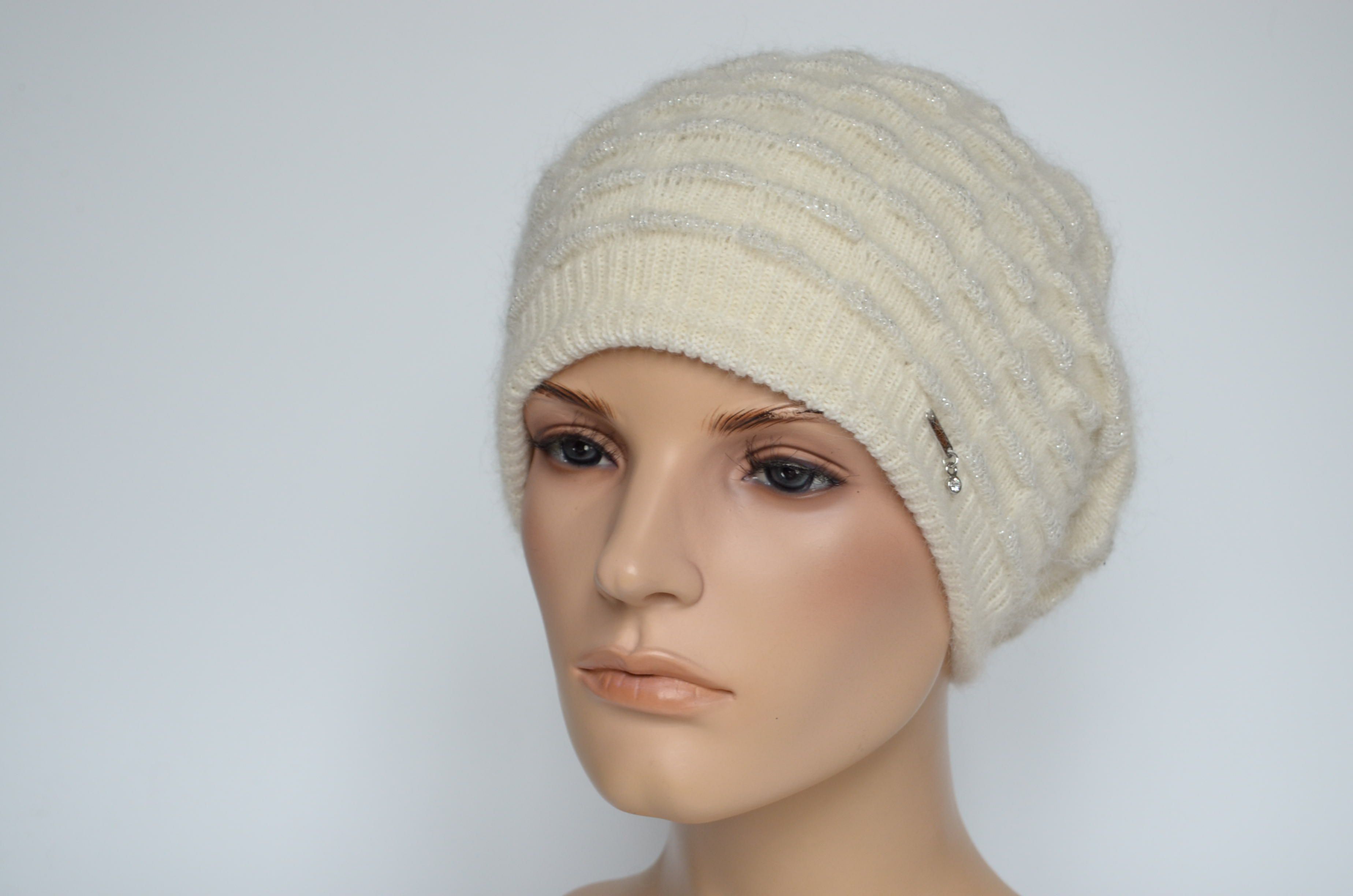 Приобрести вязаный белый берет с пайетками Визио Италия зима 2023 вы можете в интернет магазине итальянских головных уборов для женщин в Москве и доставкой по России