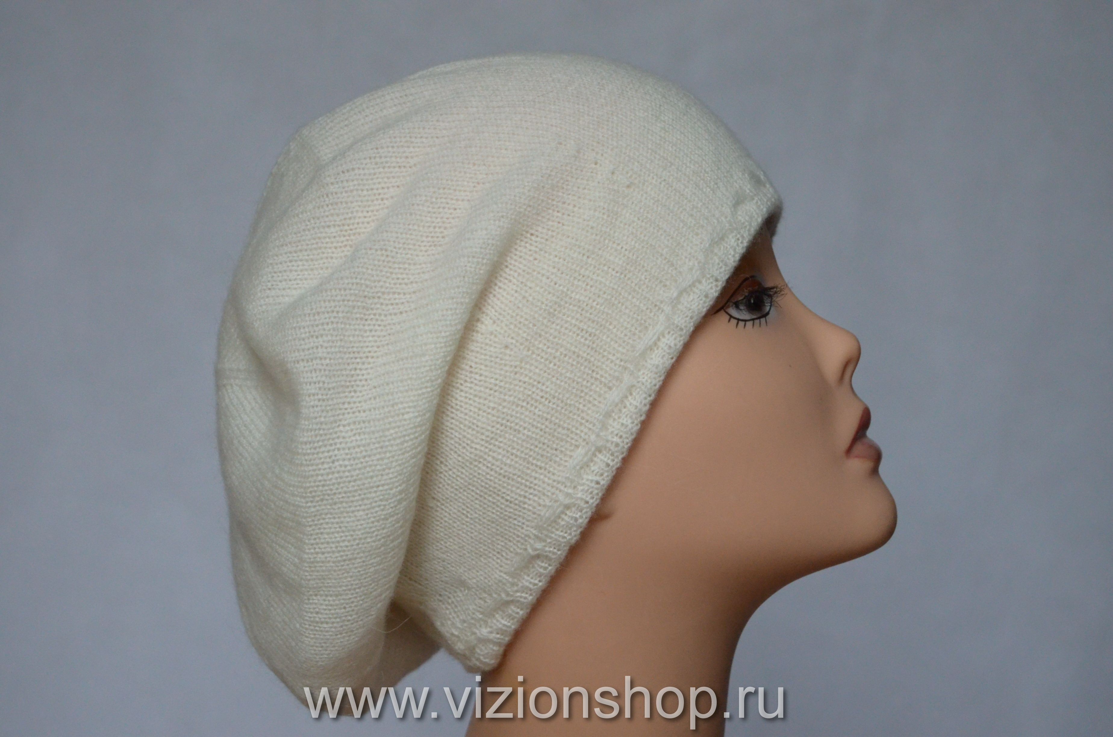 Купить белый вязаный берет из кашемира Loro Piana итальянского дизайнера женских головных уборов Vizio Collezione в интернет магазине модных женских шапок и беретов Италии в Москве и России -