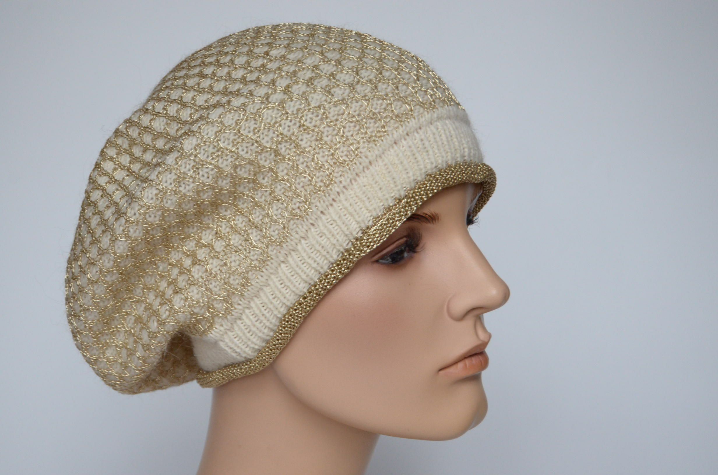 Берет вязаный сетчатый зимний белого цвета для женщин