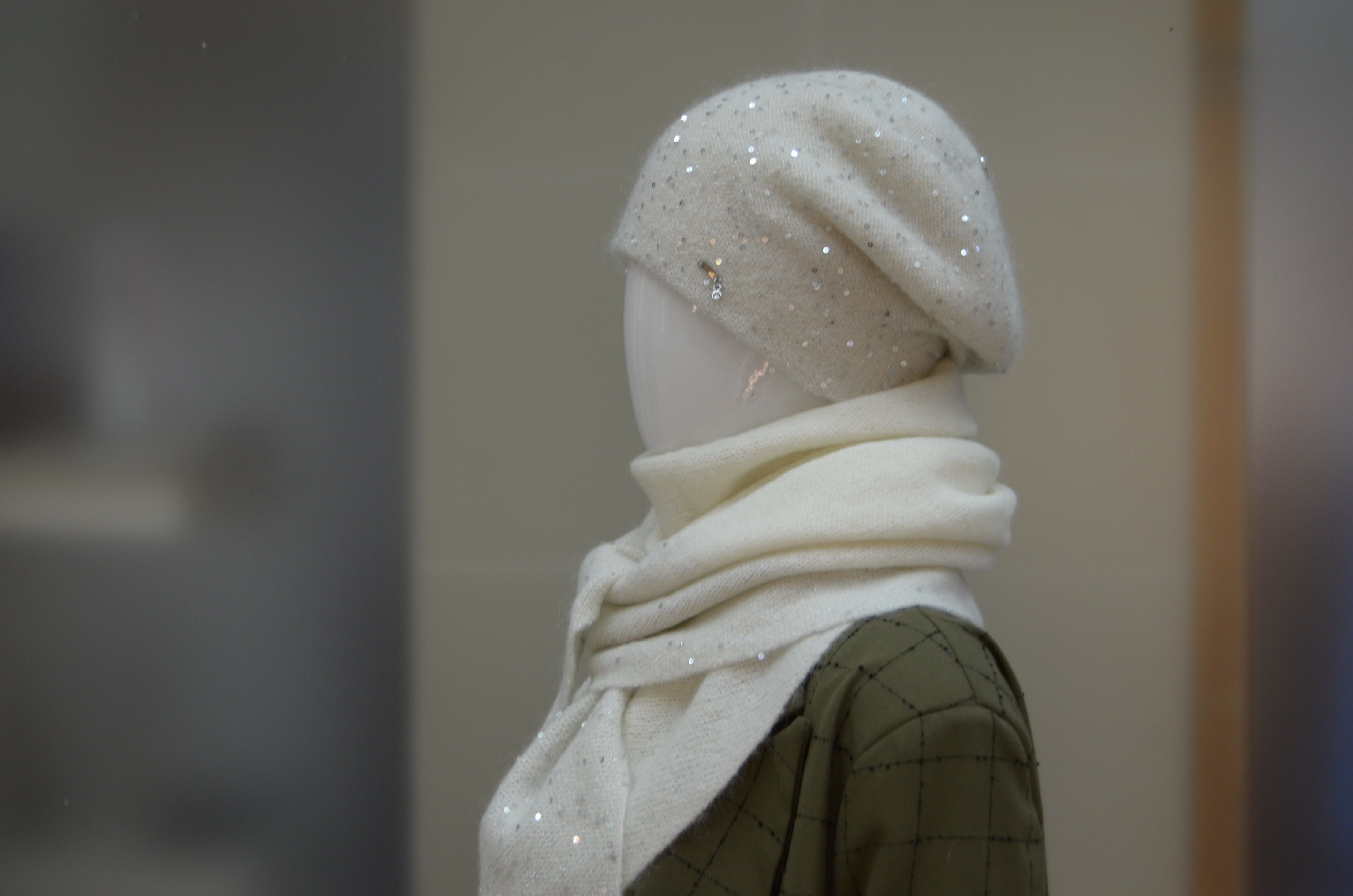 Состав берета: мохер 35 %, полиамид 25 %, шерсть 32 %, пайетки, полиэстер 6 %, эластан 2 %