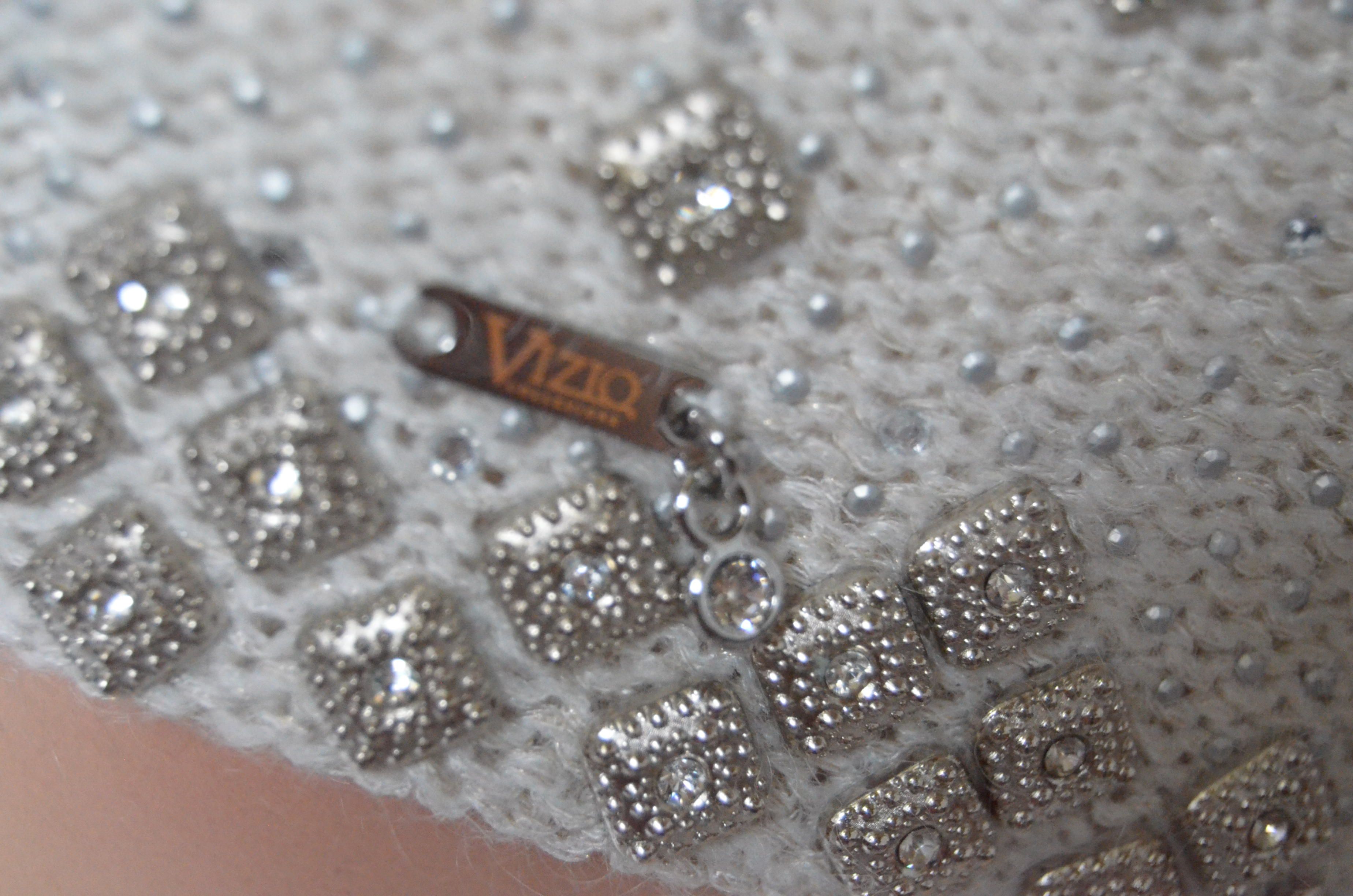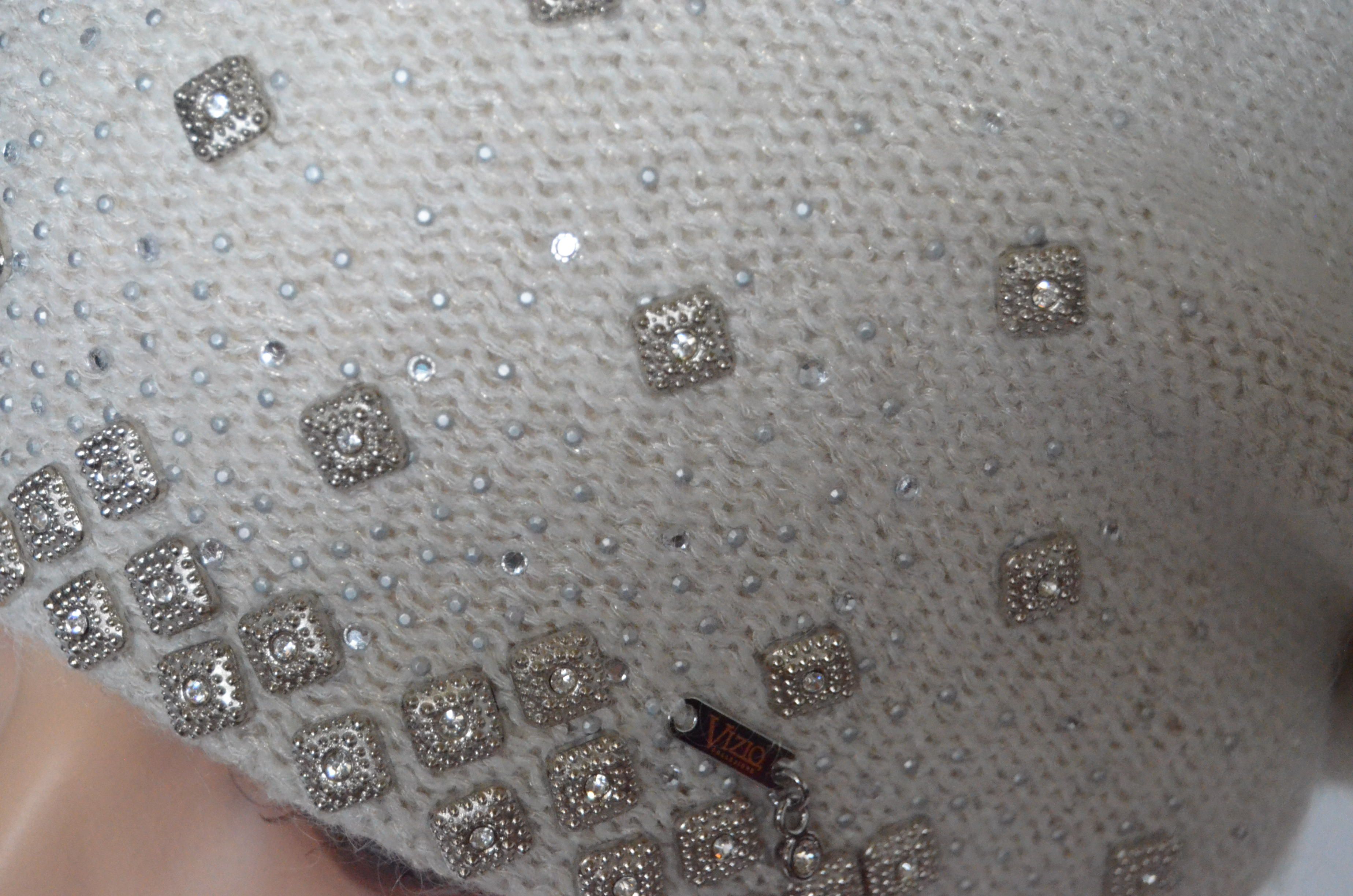 Берет белый вязаный с украшениями для женщин модная коллекция женских беретов белого цвета Vizio 6439 ( 6570 ) осень - зима от производителя женских вязаных головных уборов Италии Vizio Collezione