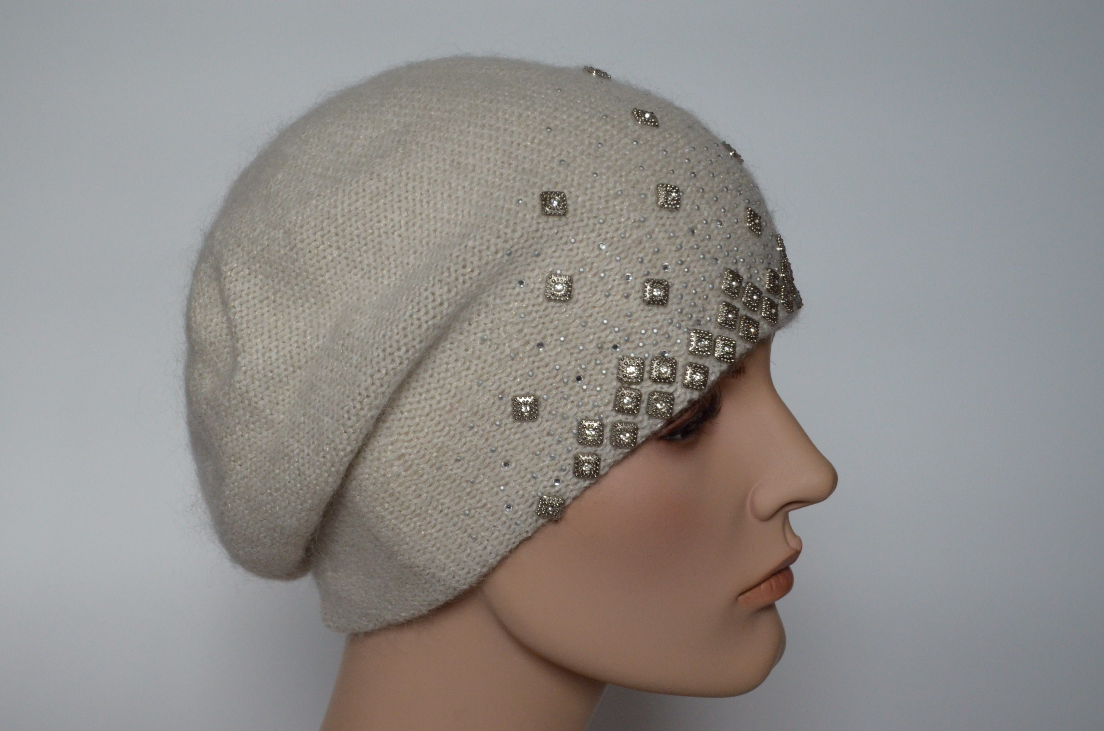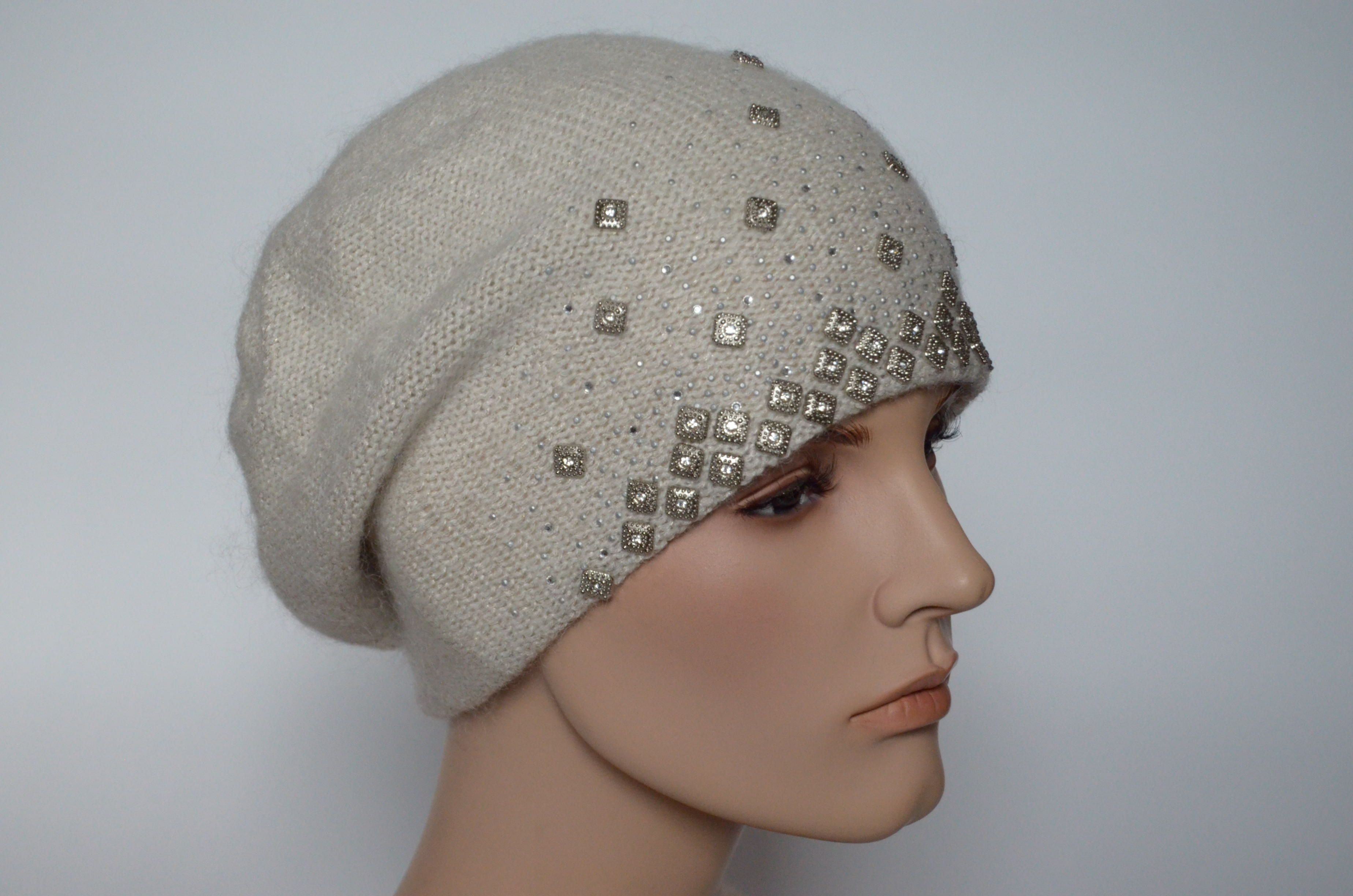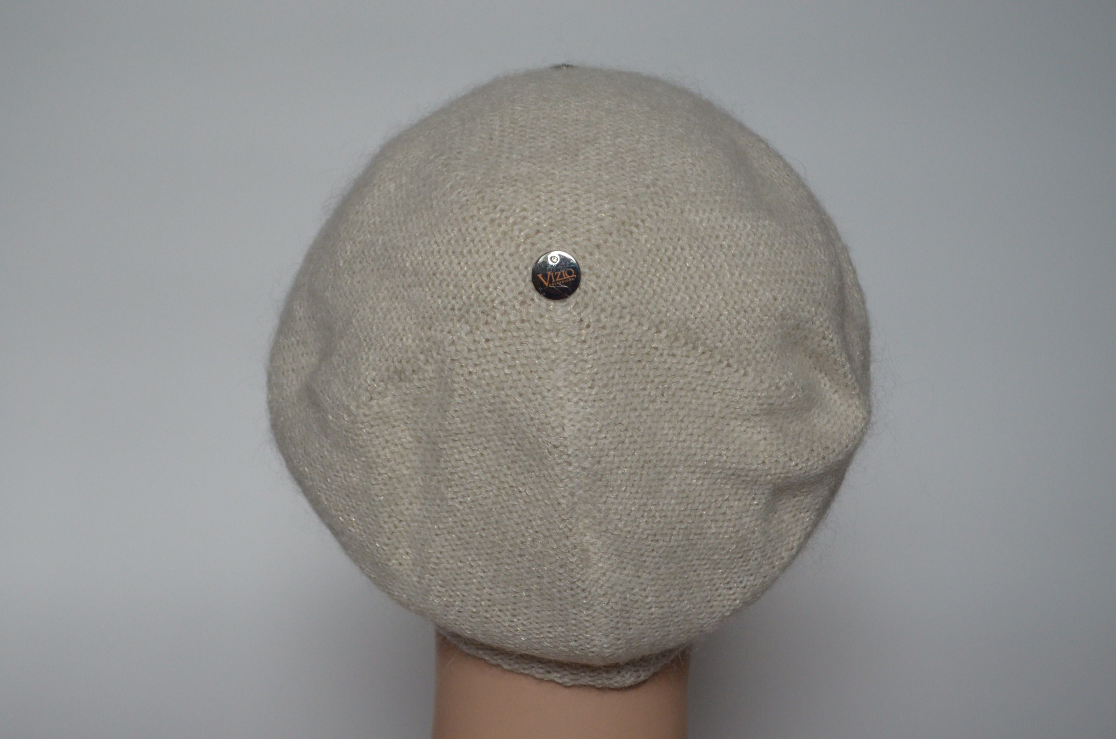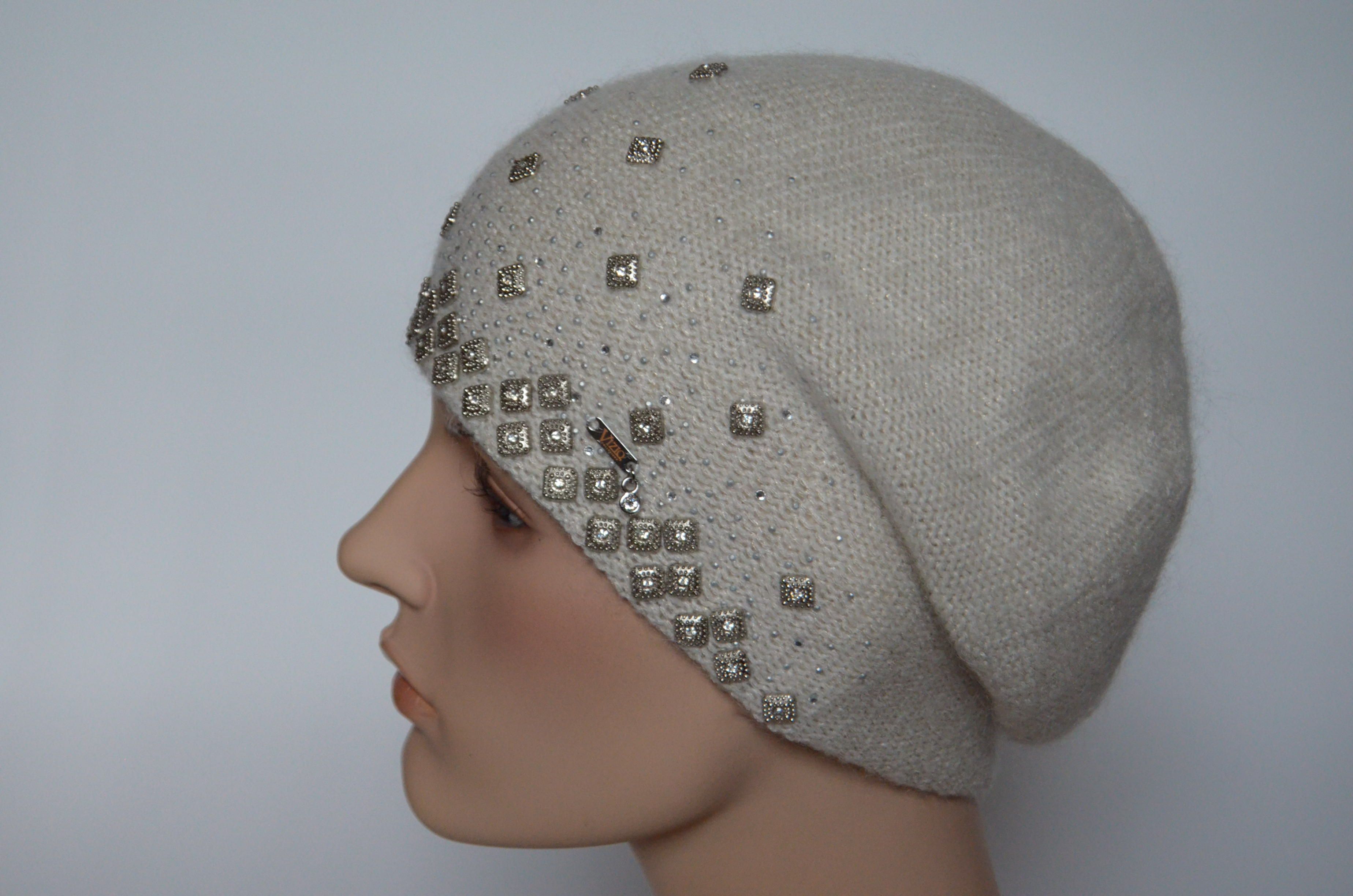 Белый вязаный берет Италия c украшениями осень - зима Vizio 6439 ( 6570) купить в Москве и России интернет магазин итальянских головных уборов Вицио для женщин