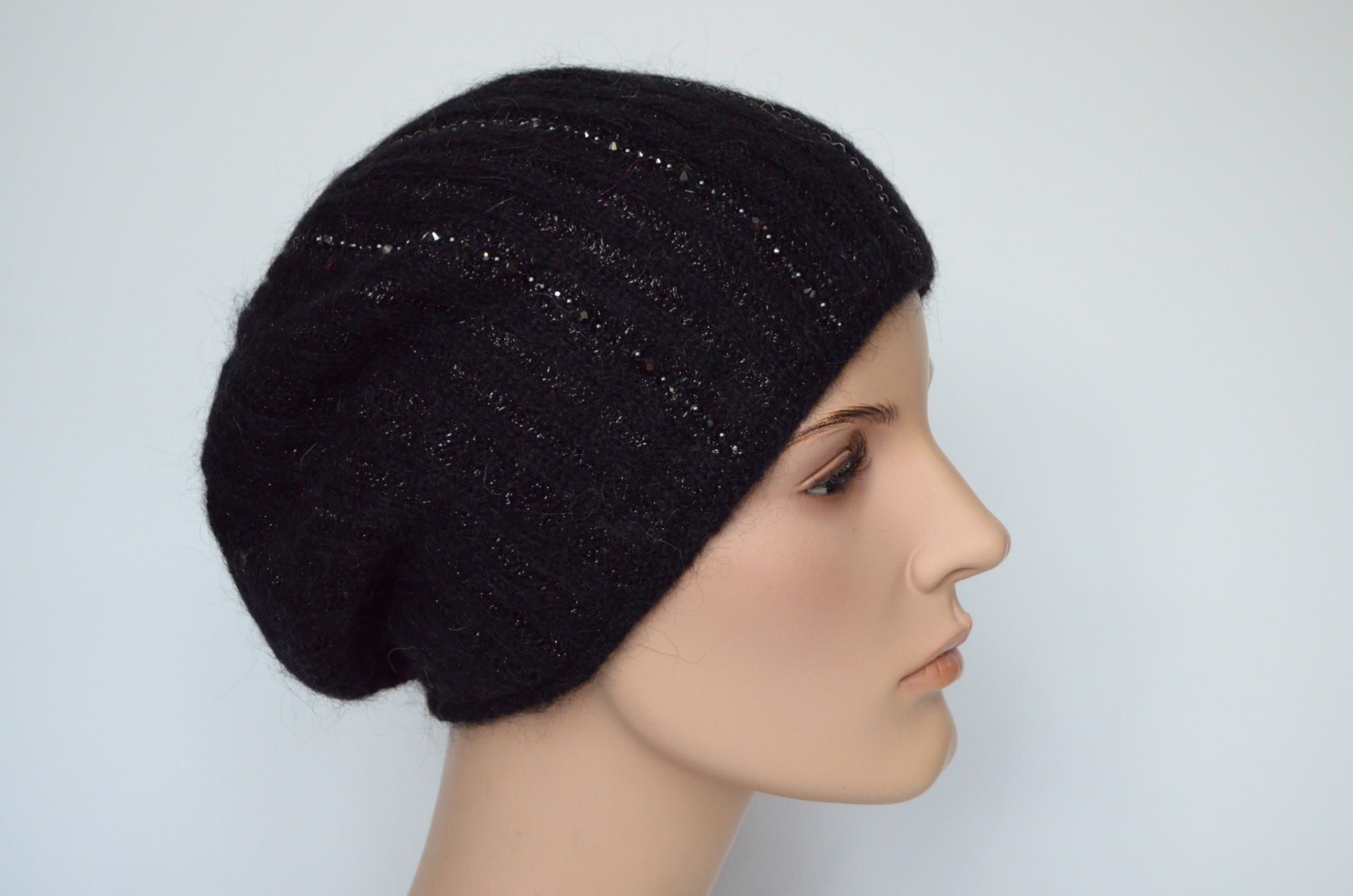 Вязаный женский берет черного цвета зимний