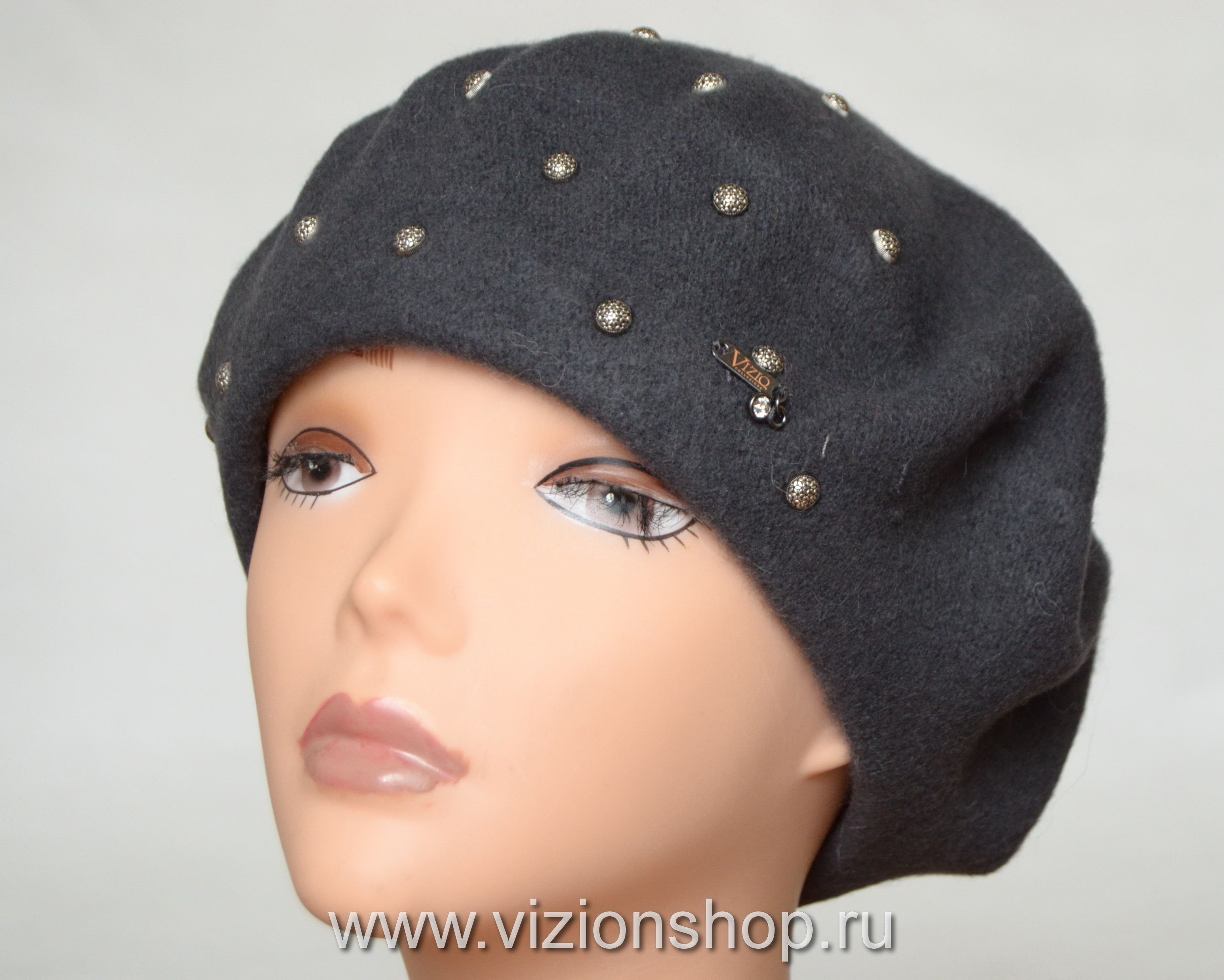 Серый фетровый берет 2018 Vizio Италия 6108 BL головной убор из фетра осень - зима 2018 - 2019 от итальянского производителя Визио Италия