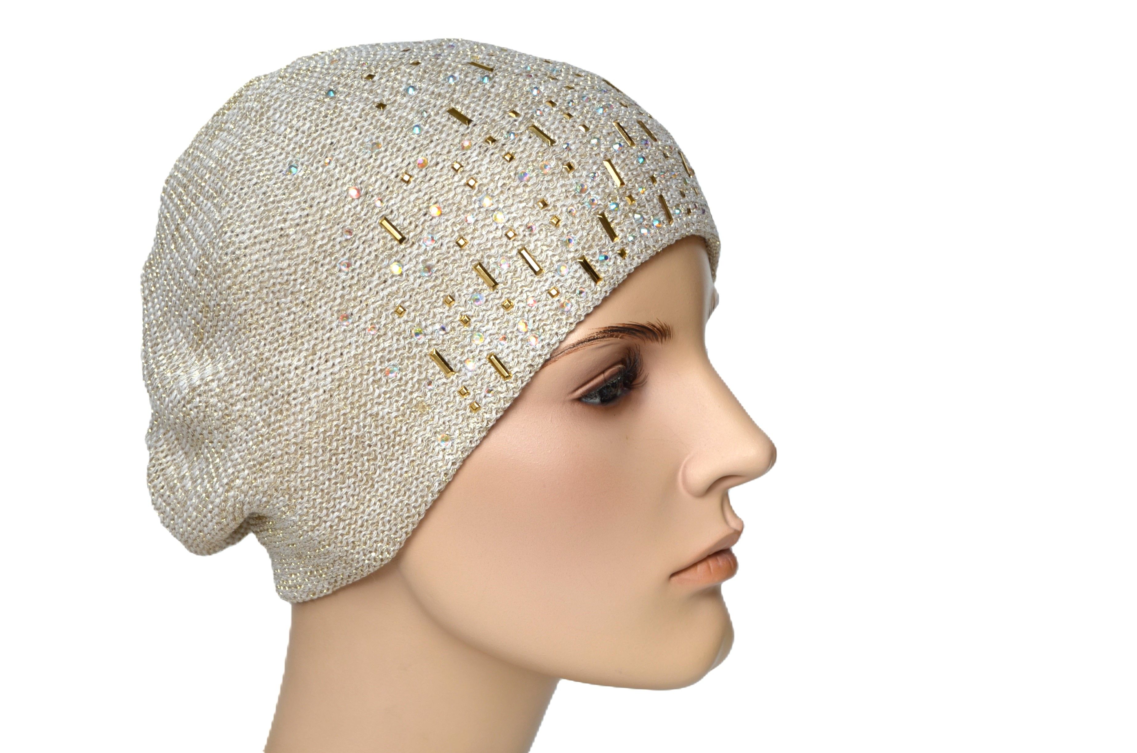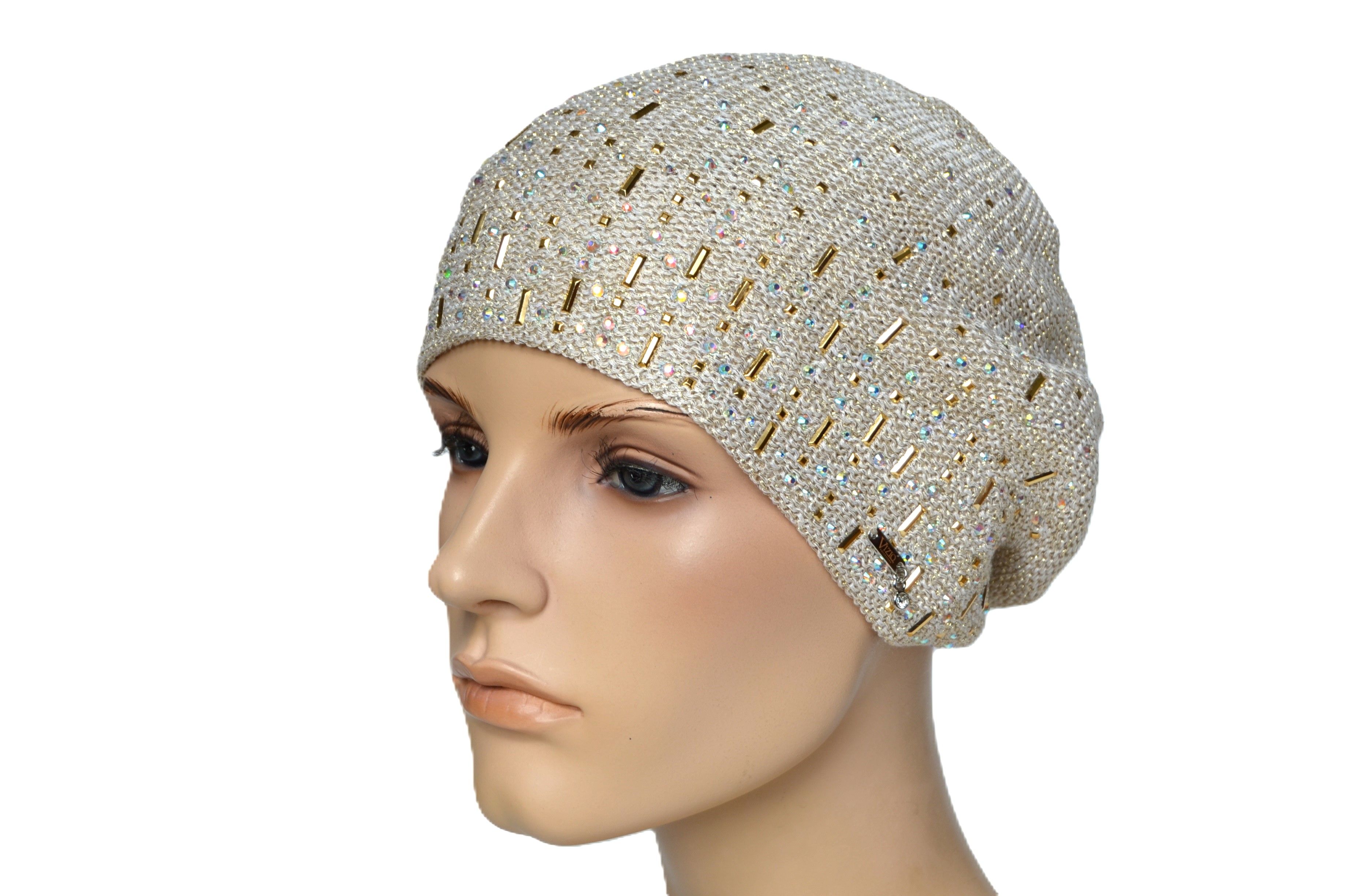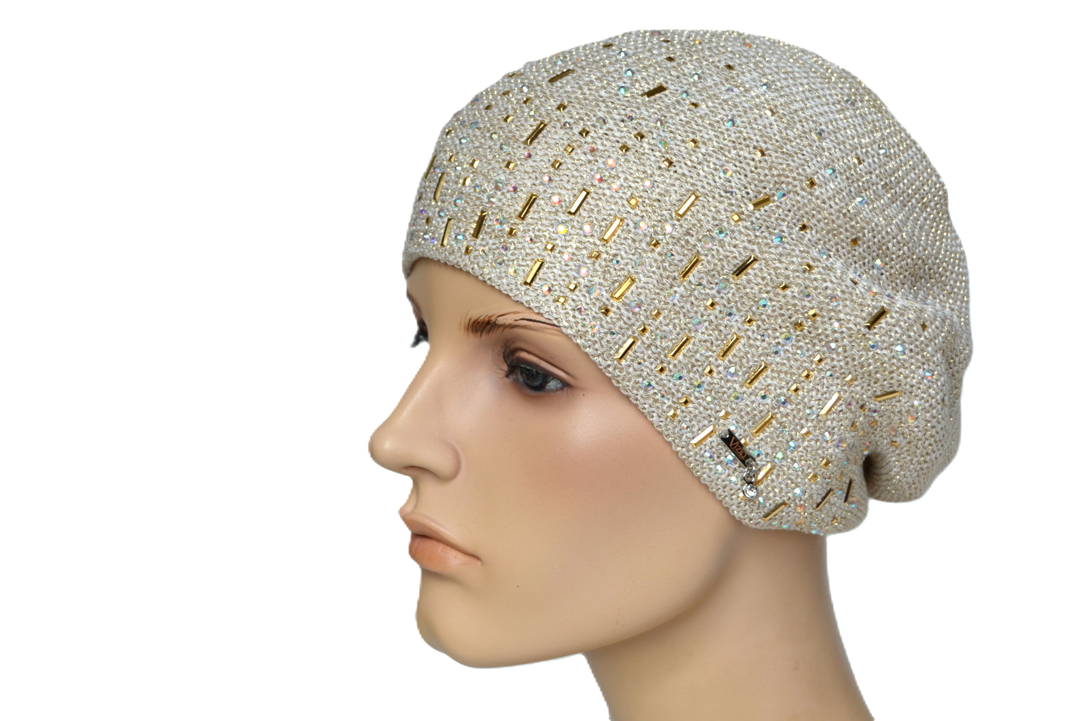 Итальянский демисезонный берет со стразами на весну осень бренда головных уборов Италии Vizio 1202 бежевого цвета