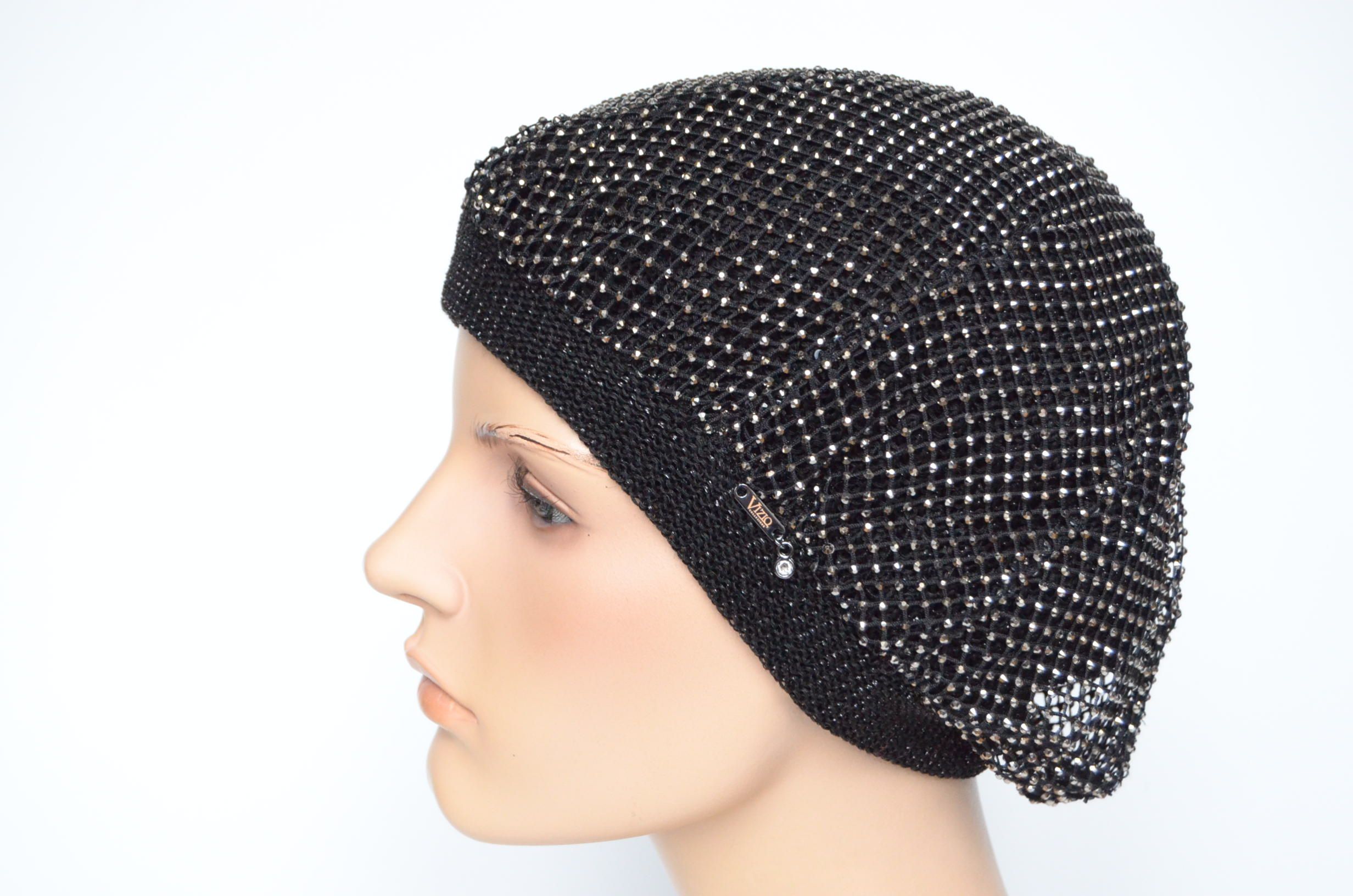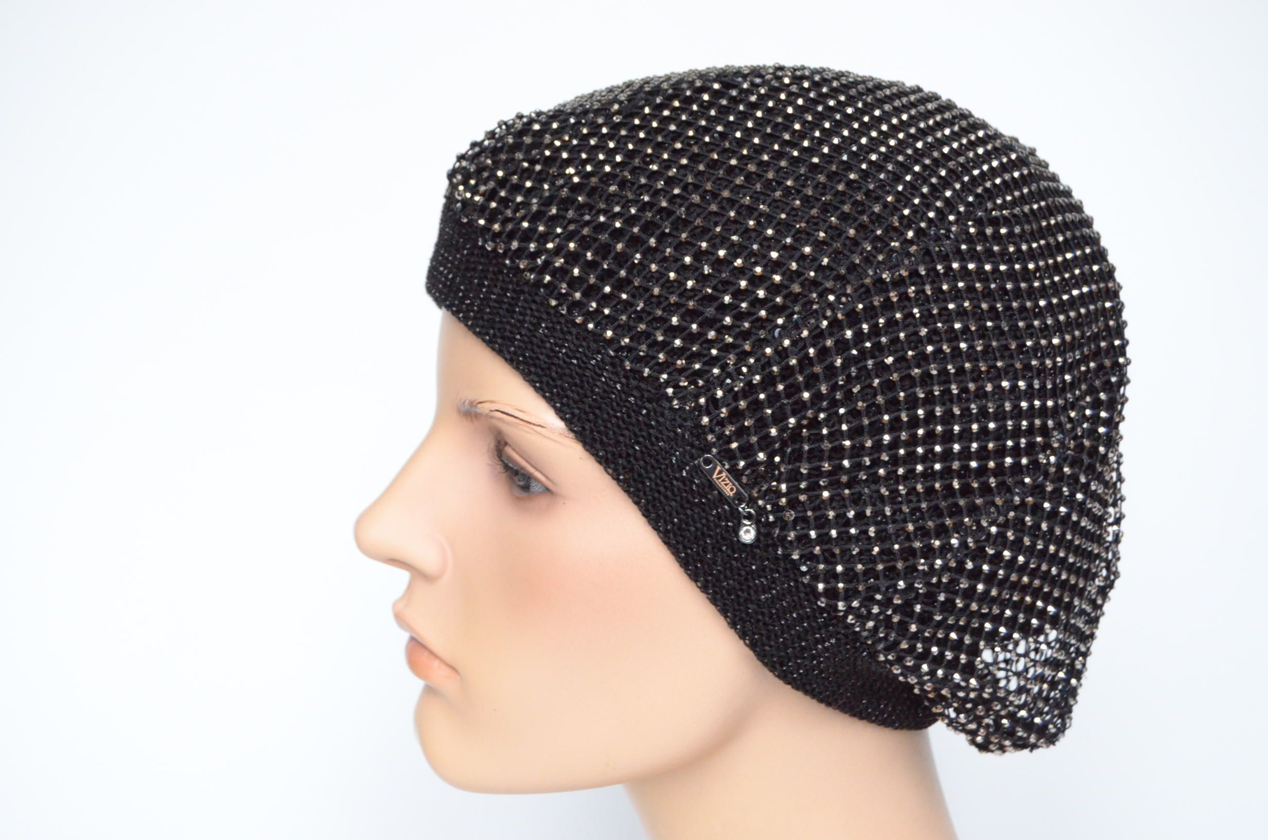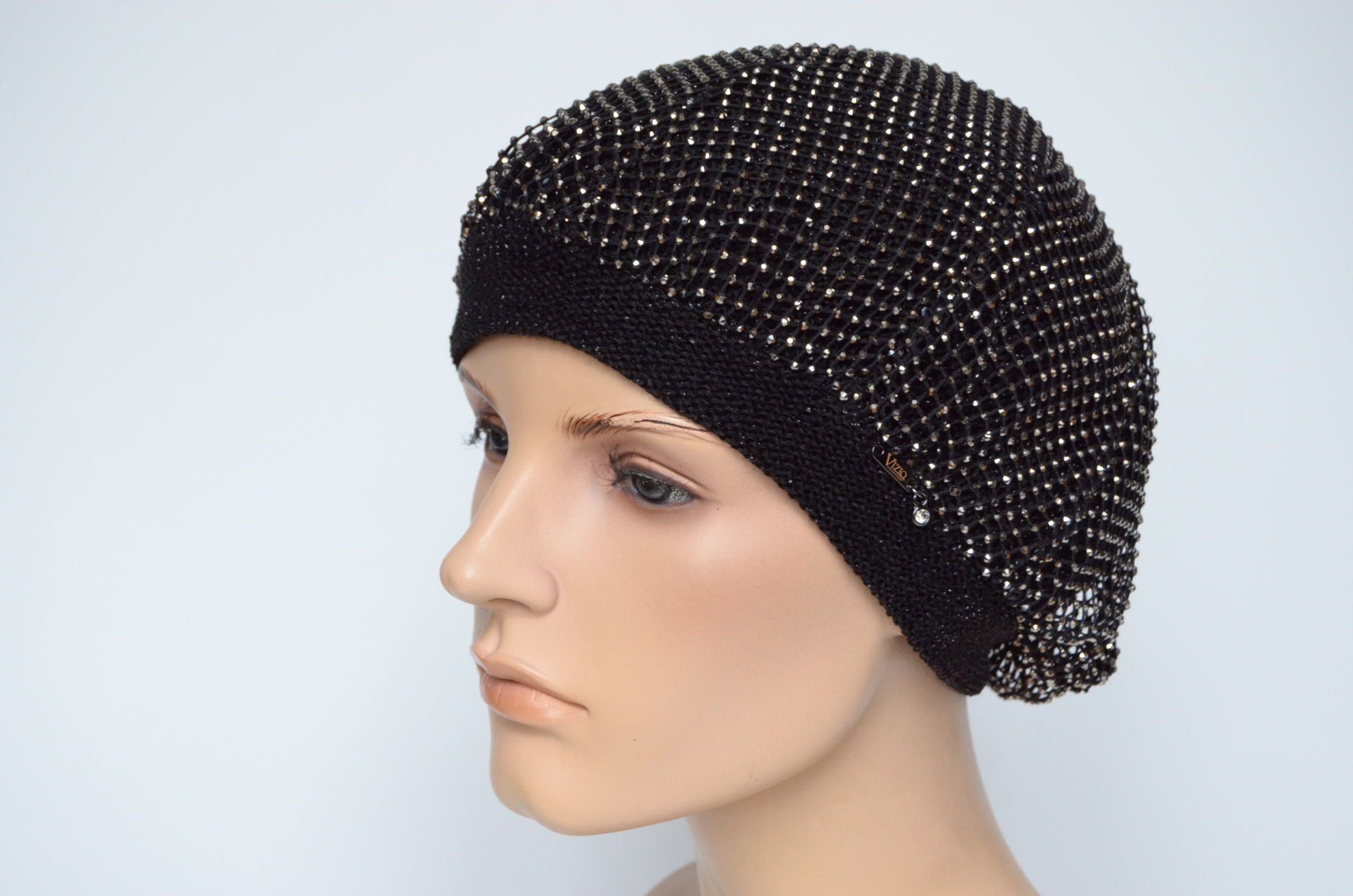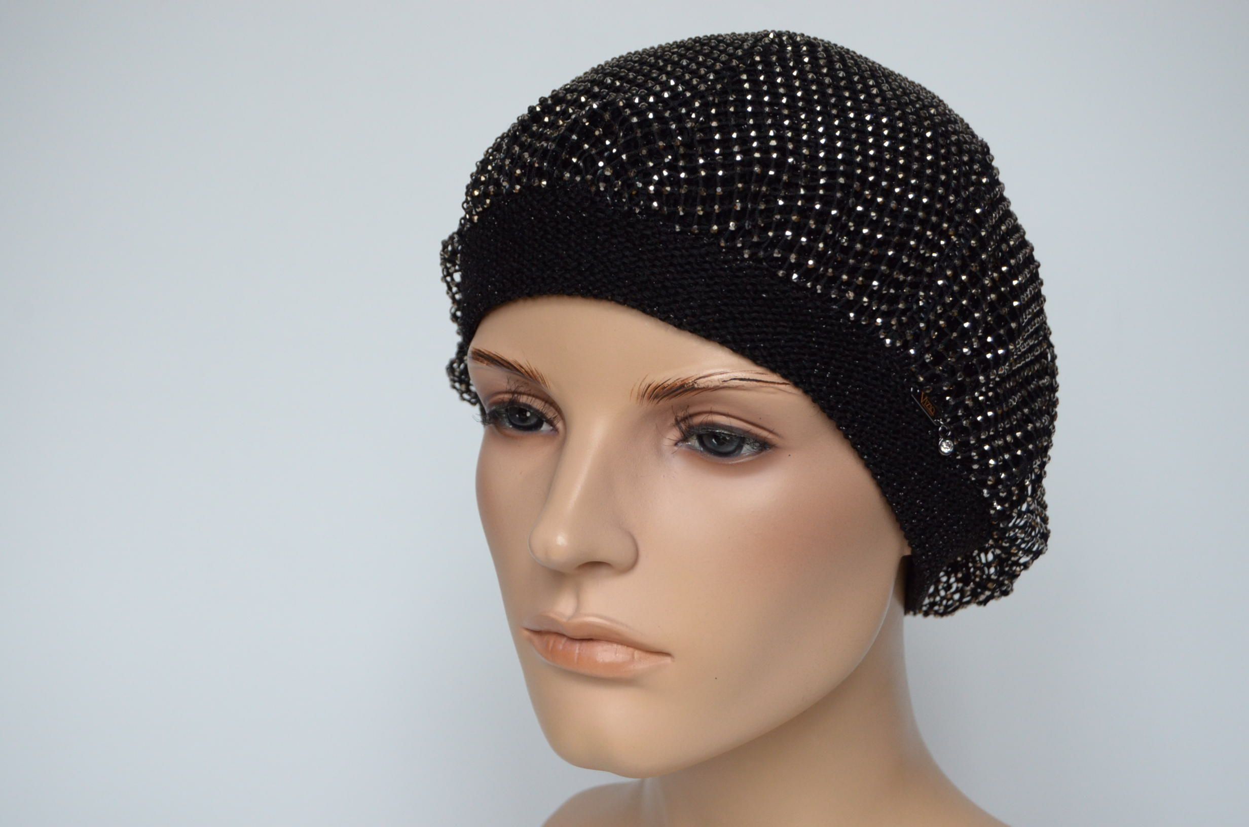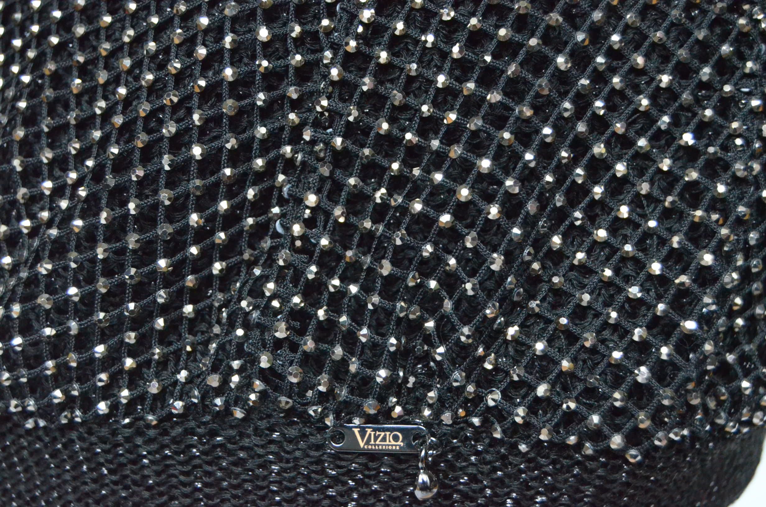 Вязаный берет с сеткой страз Vizio Италия 1228 новая коллекция беретов весна - лето - осень 2024 купить в интернет магазине итальянских головных уборов