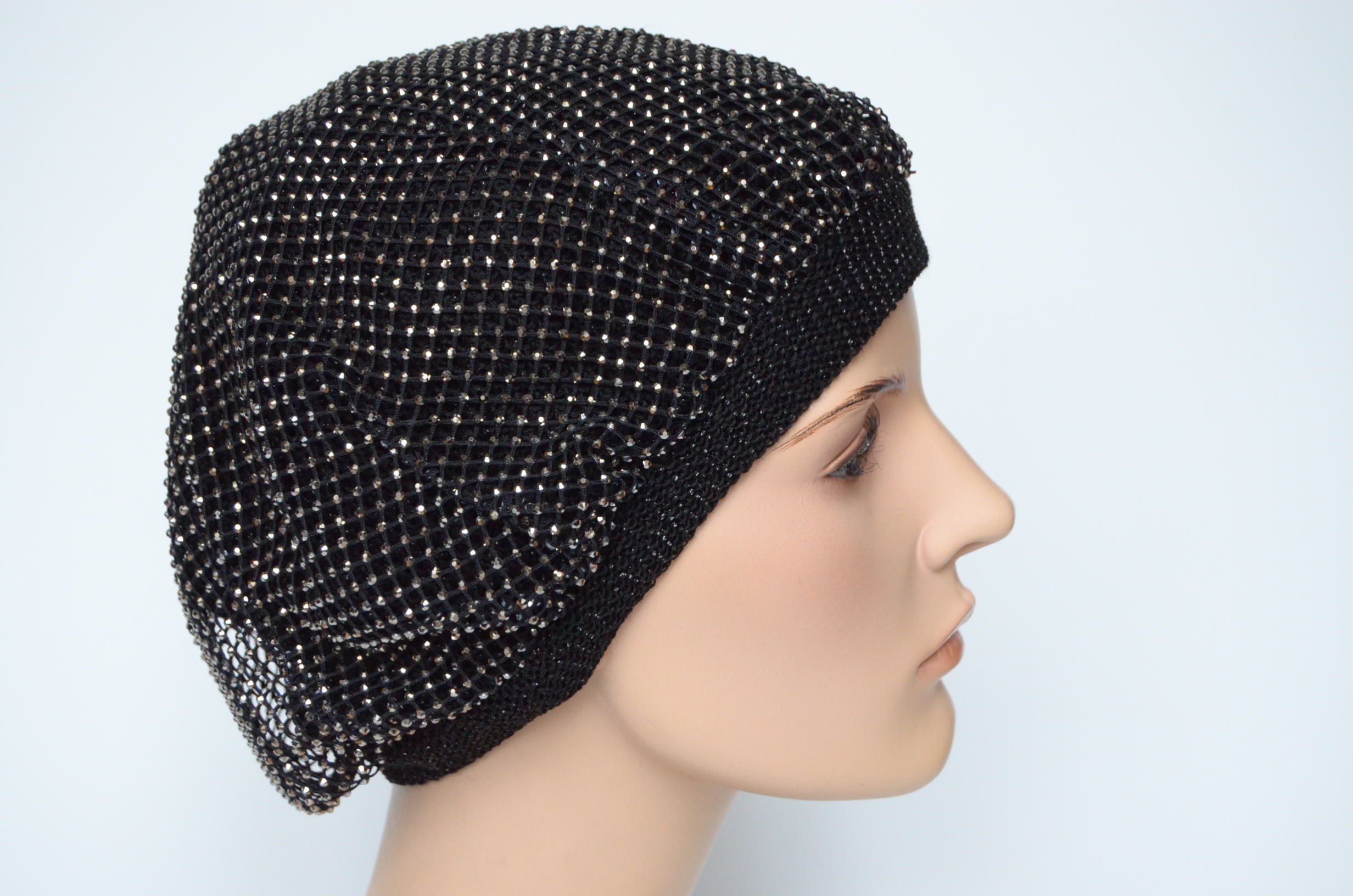 Берет вязаный весенний с сеткой страз для женщин