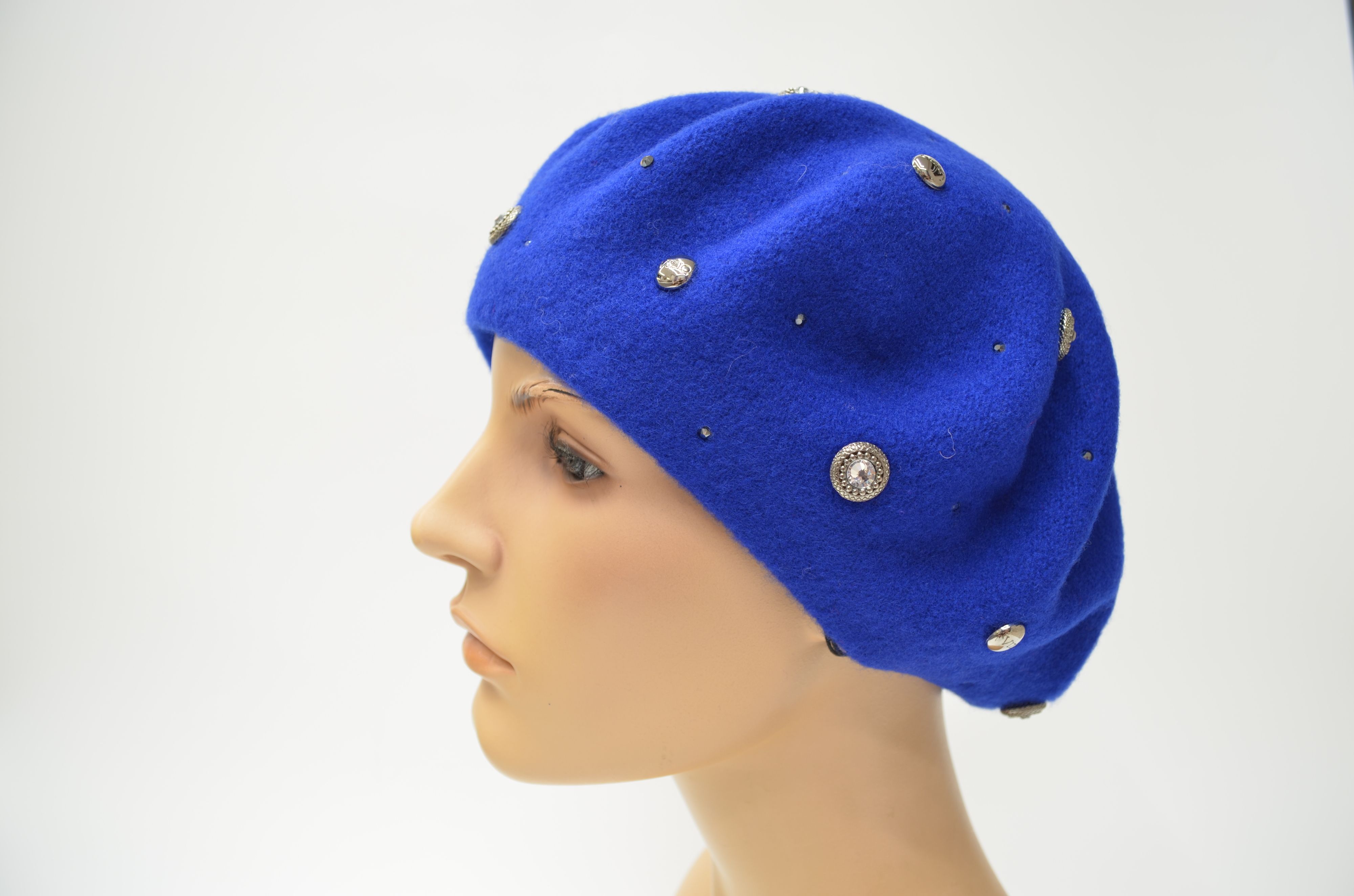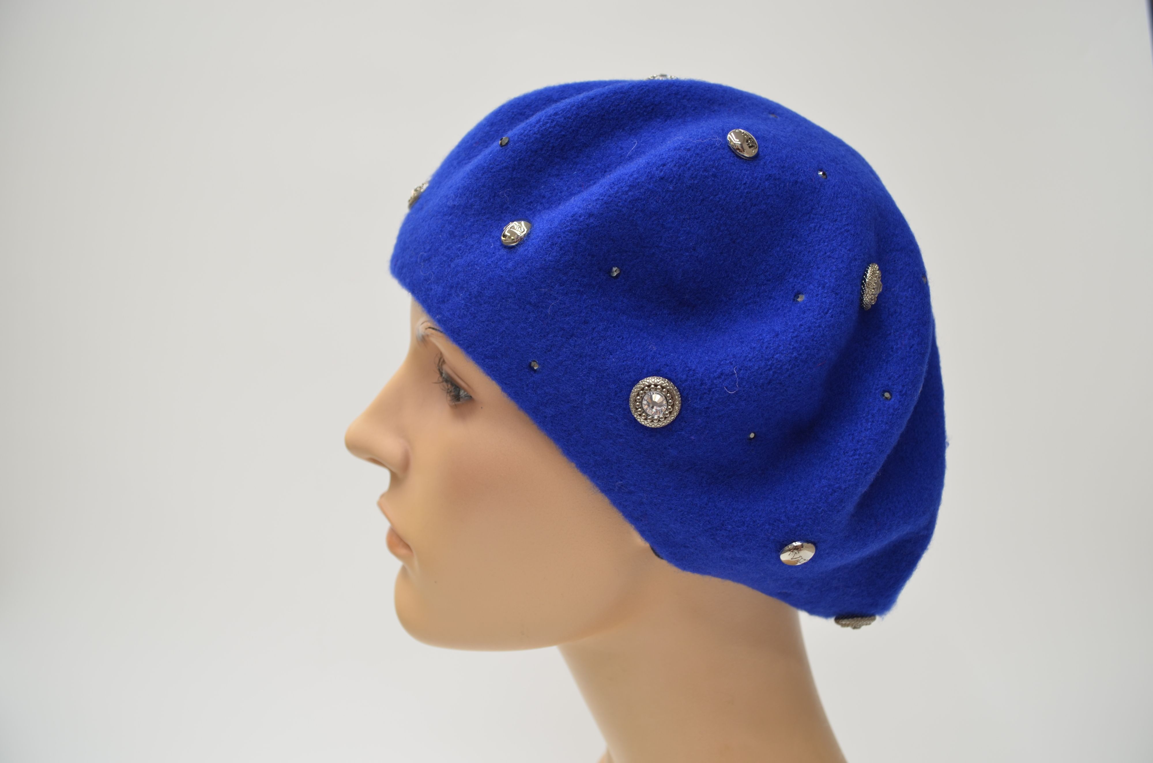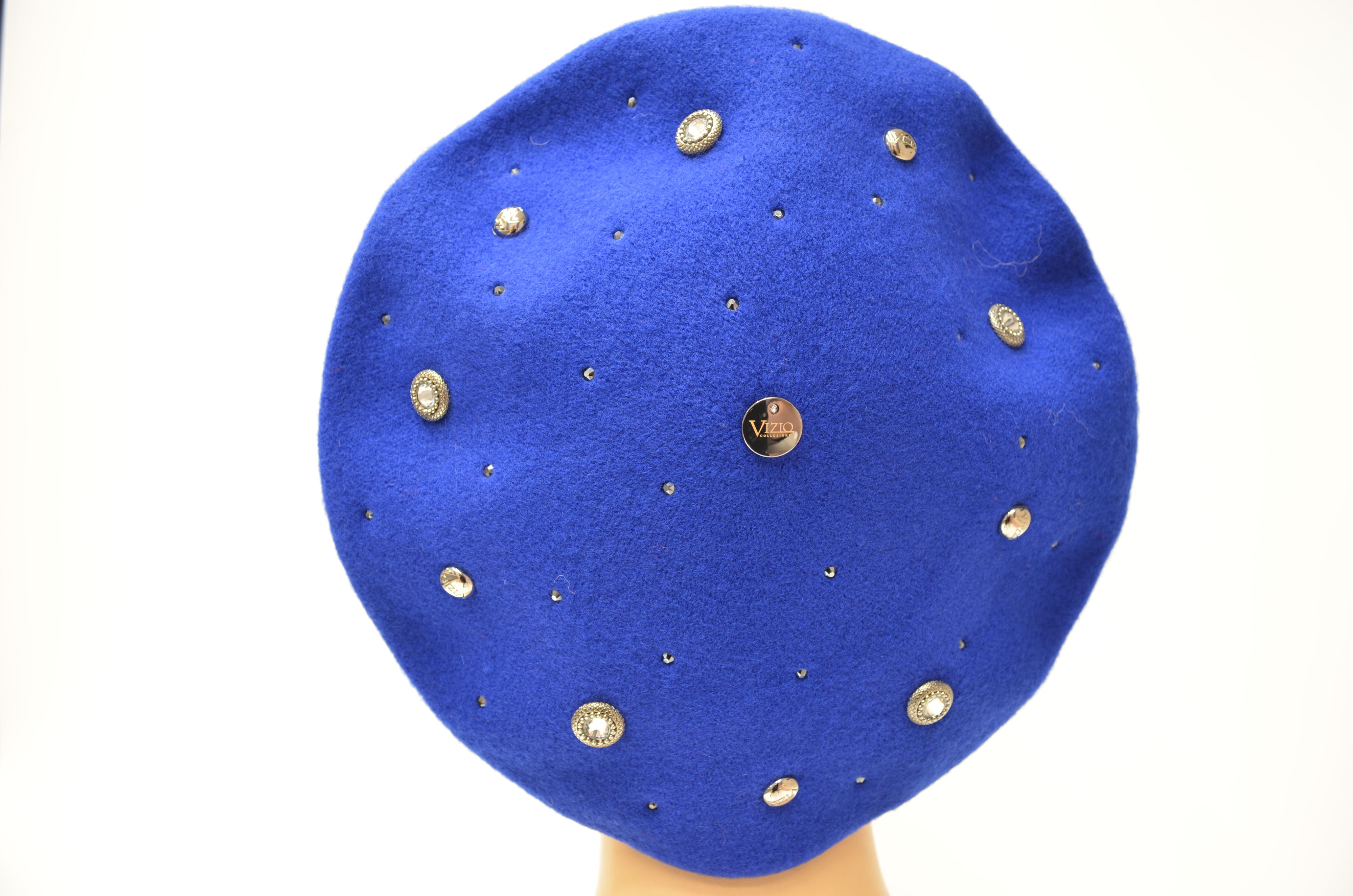 Женский берет цвета электрик Италия Vizio 3633 со стразами swarovski из новой коллекции итальянских головных уборов Визио осень - зима - весна