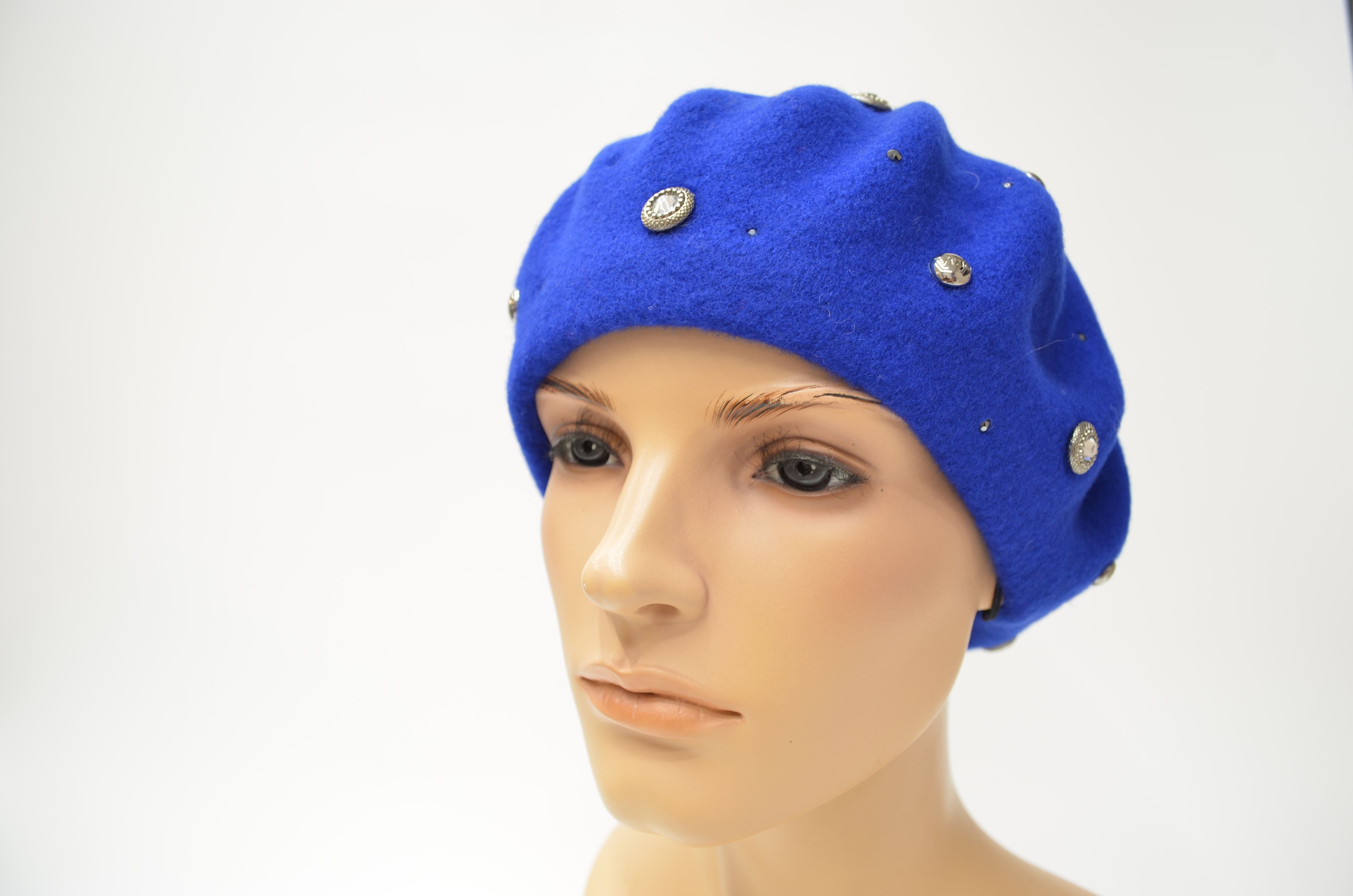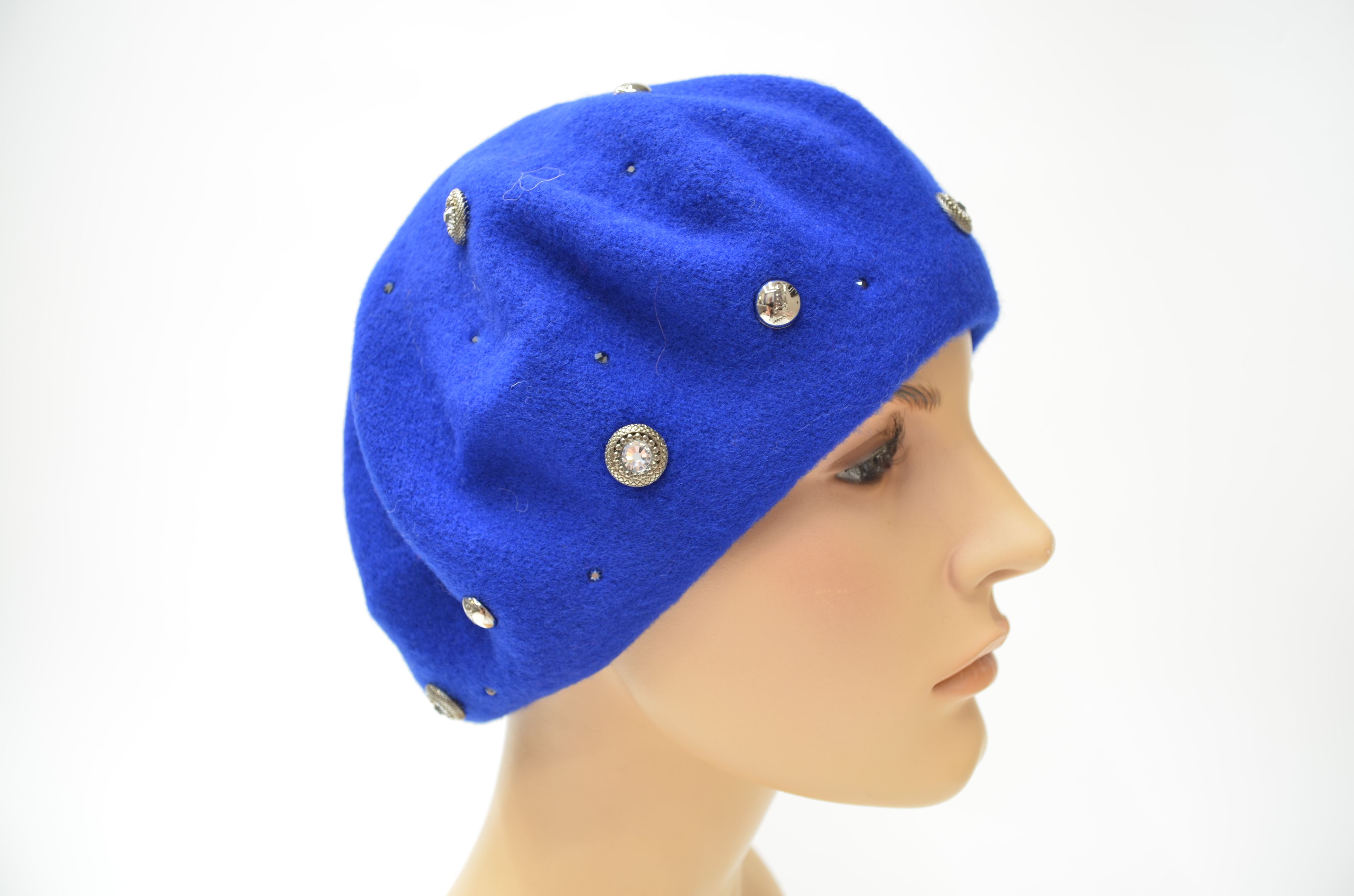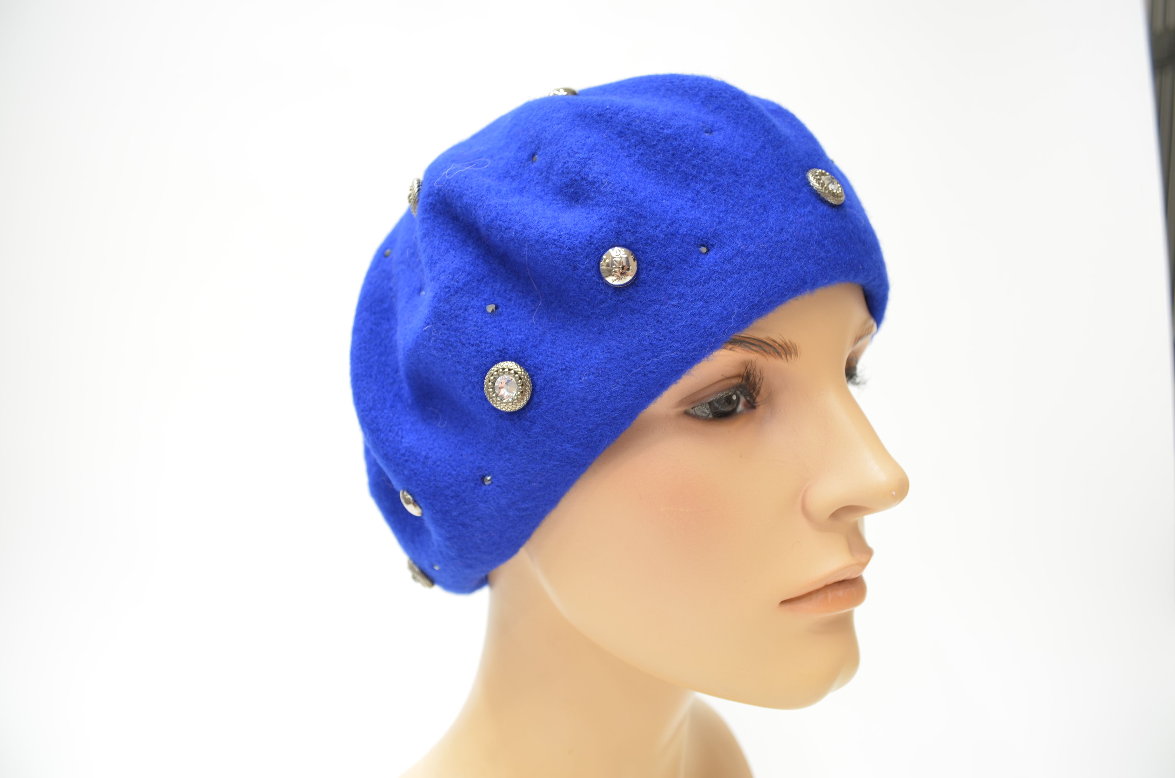 Женский берет цвета электрик Италия Vizio 3633 со стразами swarovski из новой коллекции итальянских головных уборов Визио осень - зима - весна