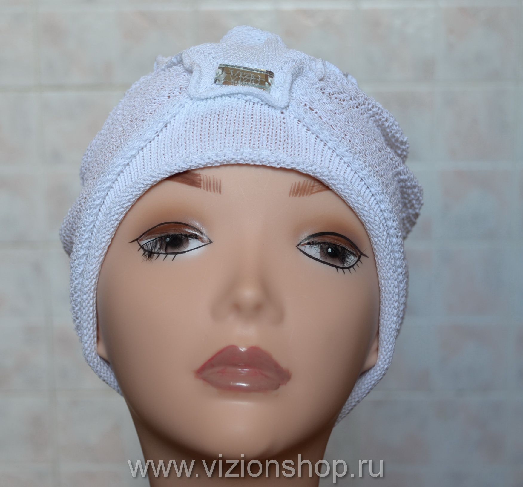 Белый вязанный берет из хлопка женский Vizio 4810 коллекция беретов лето от производителя вязаных беретов и шапок для женщин Vizio Италия купить в интернет магазине женских беретов