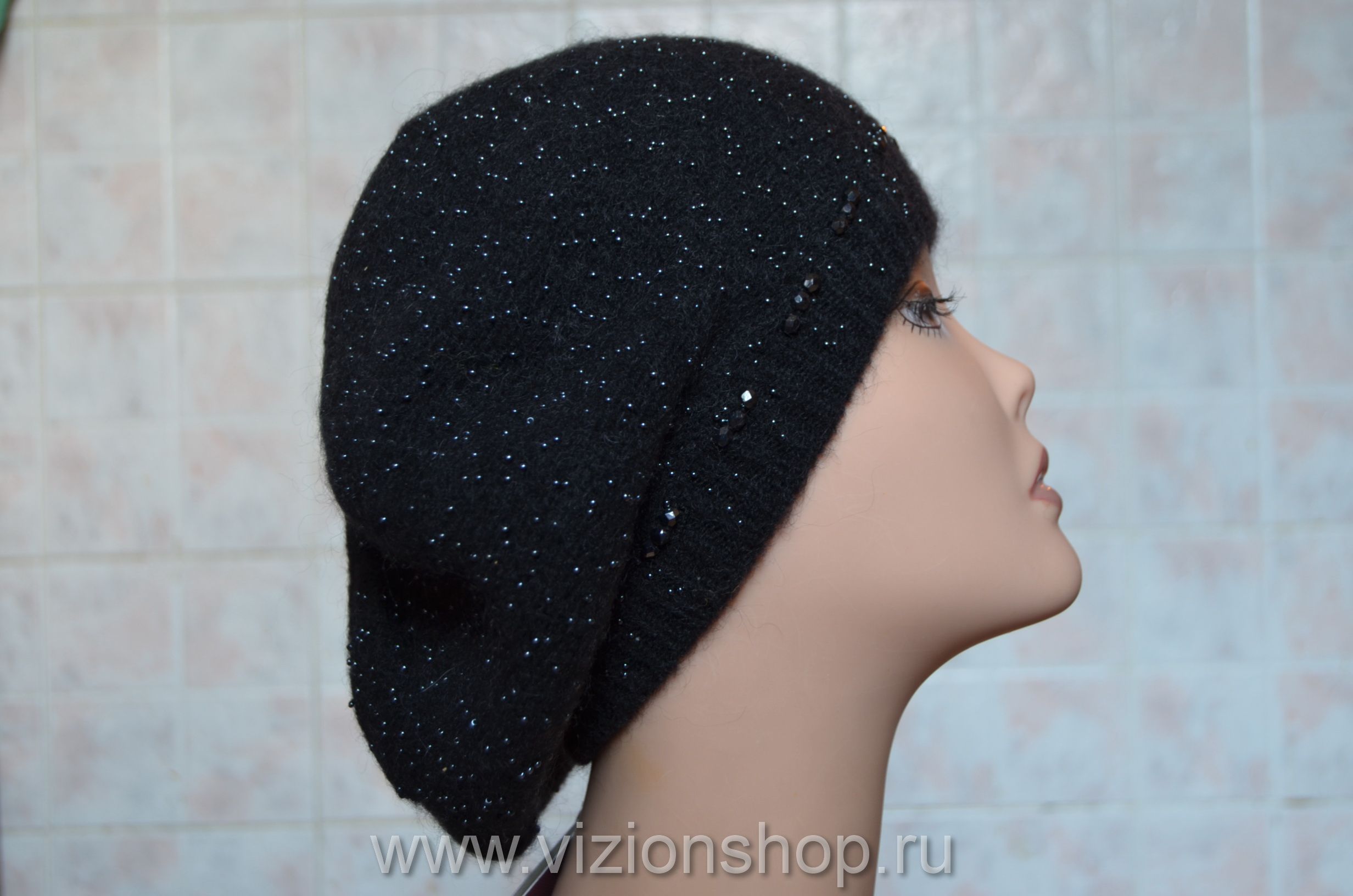 Берет на осень весну женский вязаный с бисером и камнями от производителя вязаных беретов для женщин Vizio Collezione осень - зима - весна 2018 в интернет магазине модных головных уборов в Москве