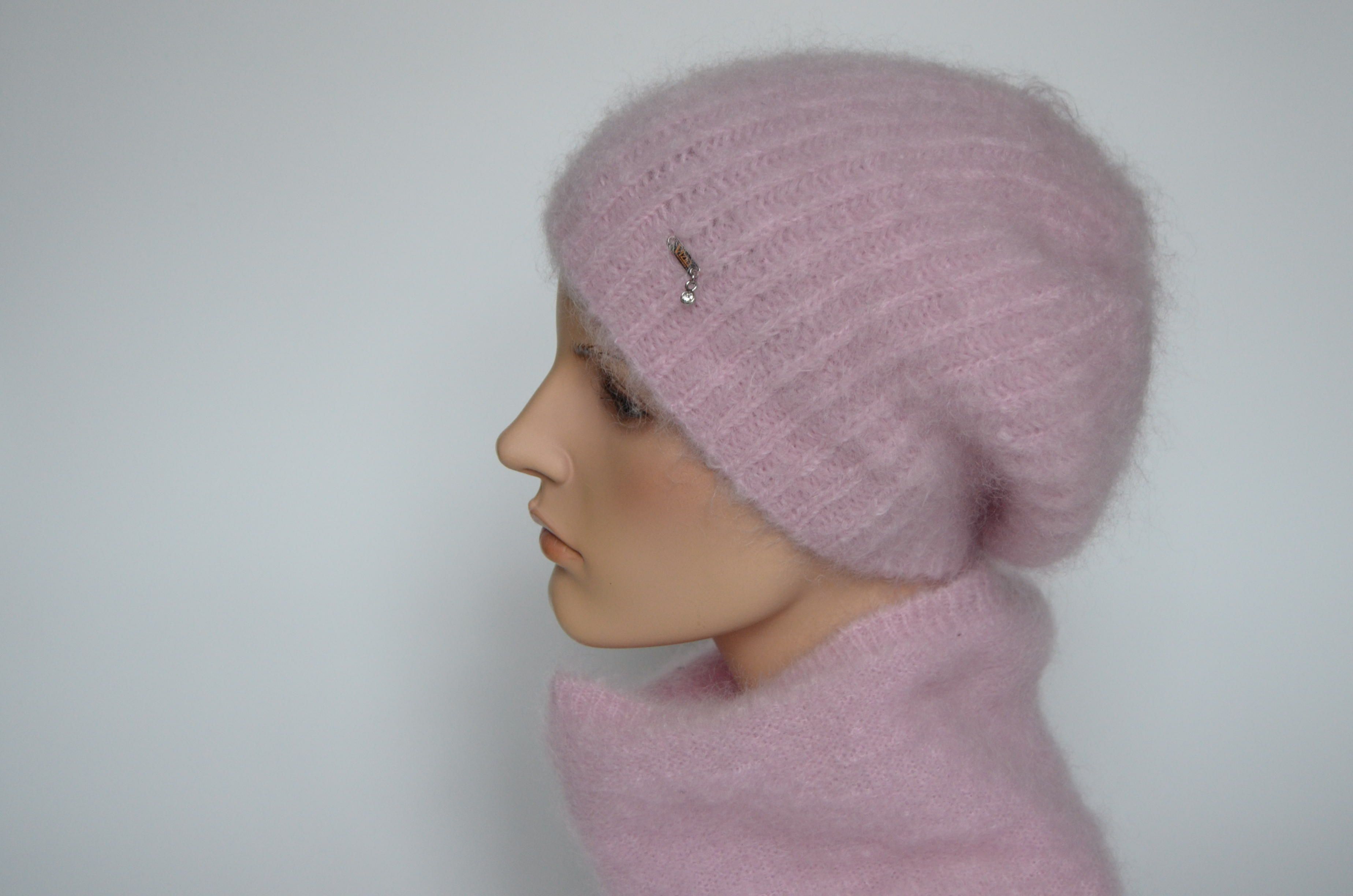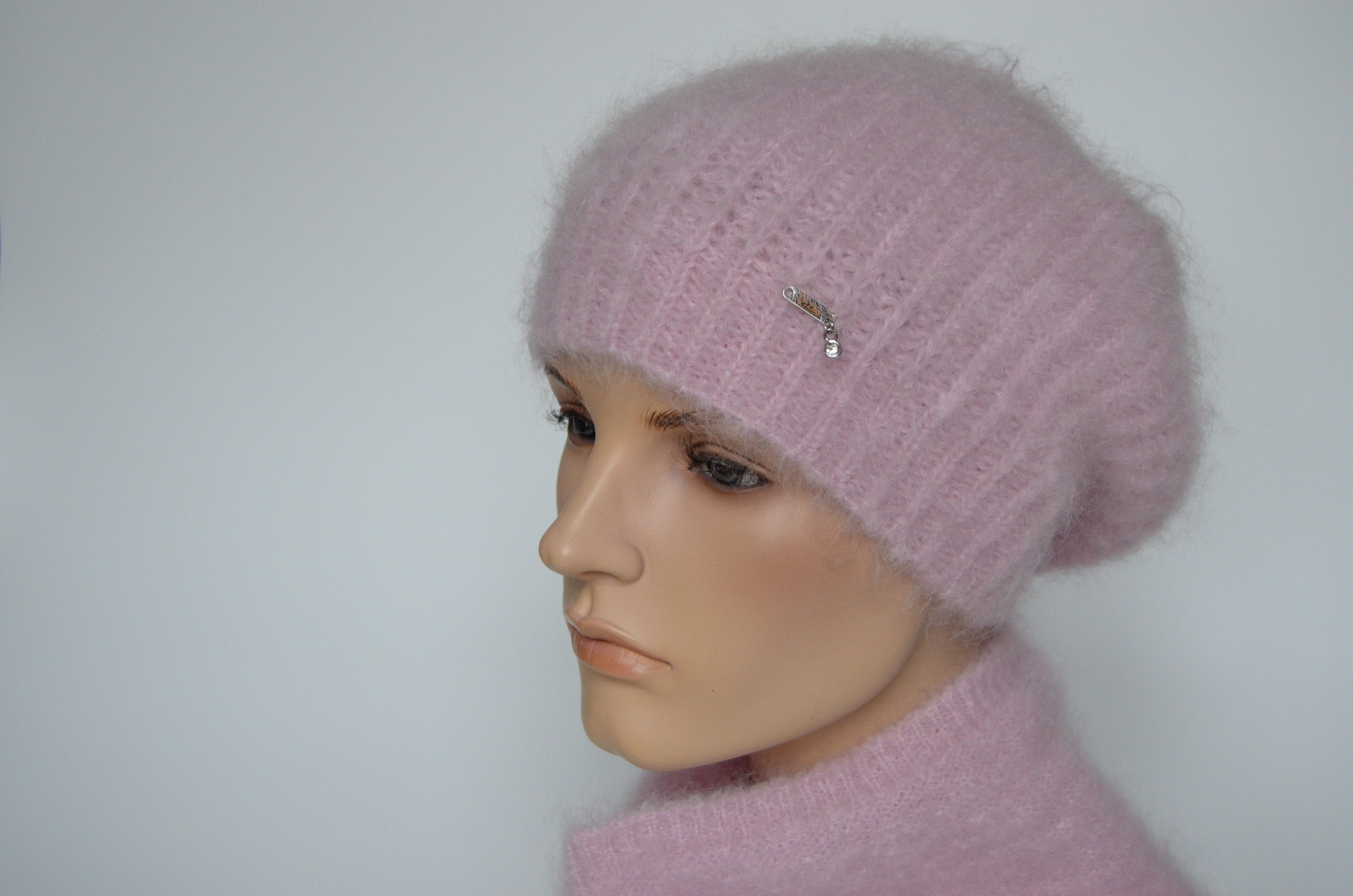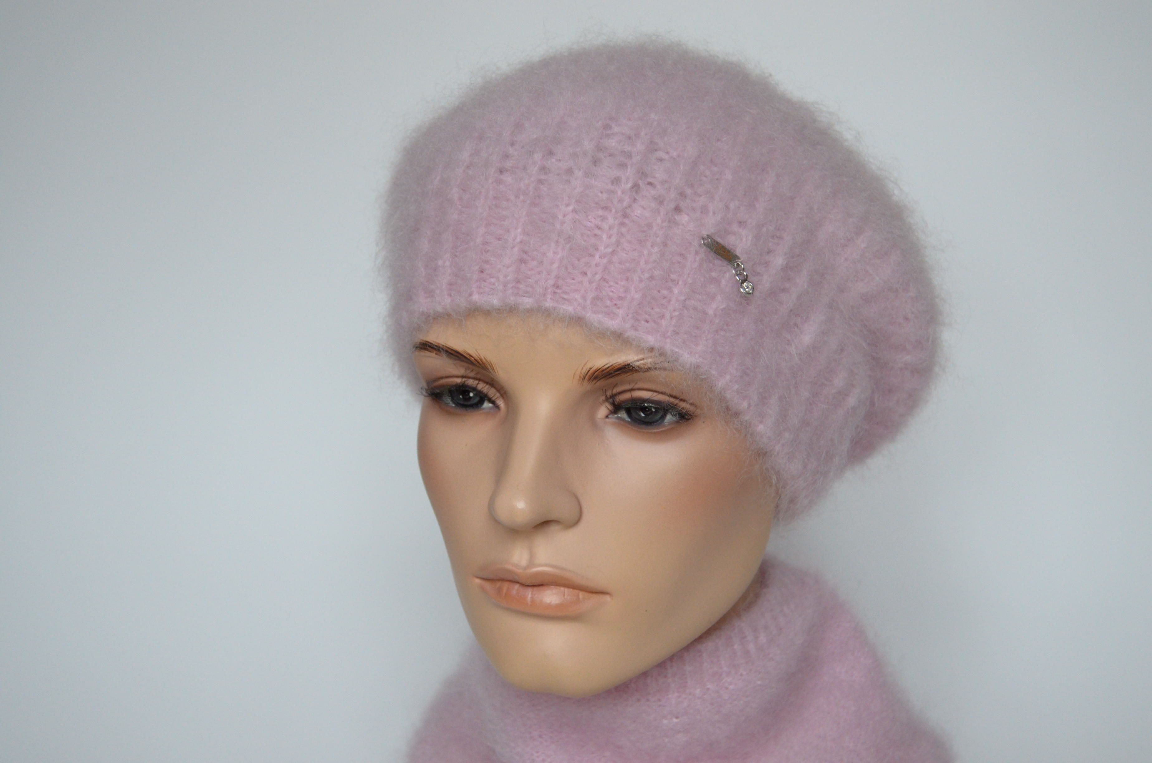 Приобрести мохеровый берет вязаный розового цвета для женщин Визио Италия зима 2022 - 2023 в интернет магазине теплых шапок из мохера для женщин