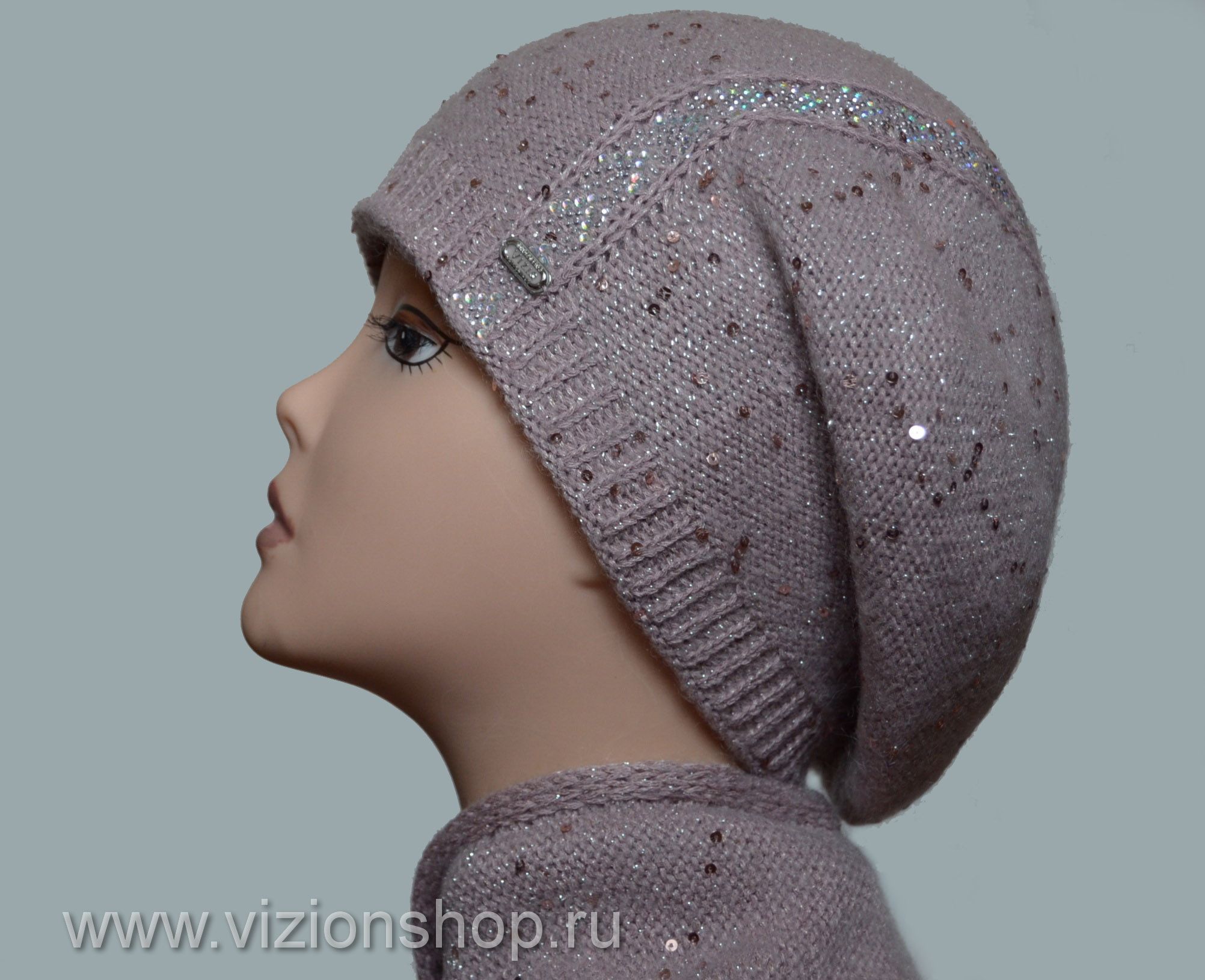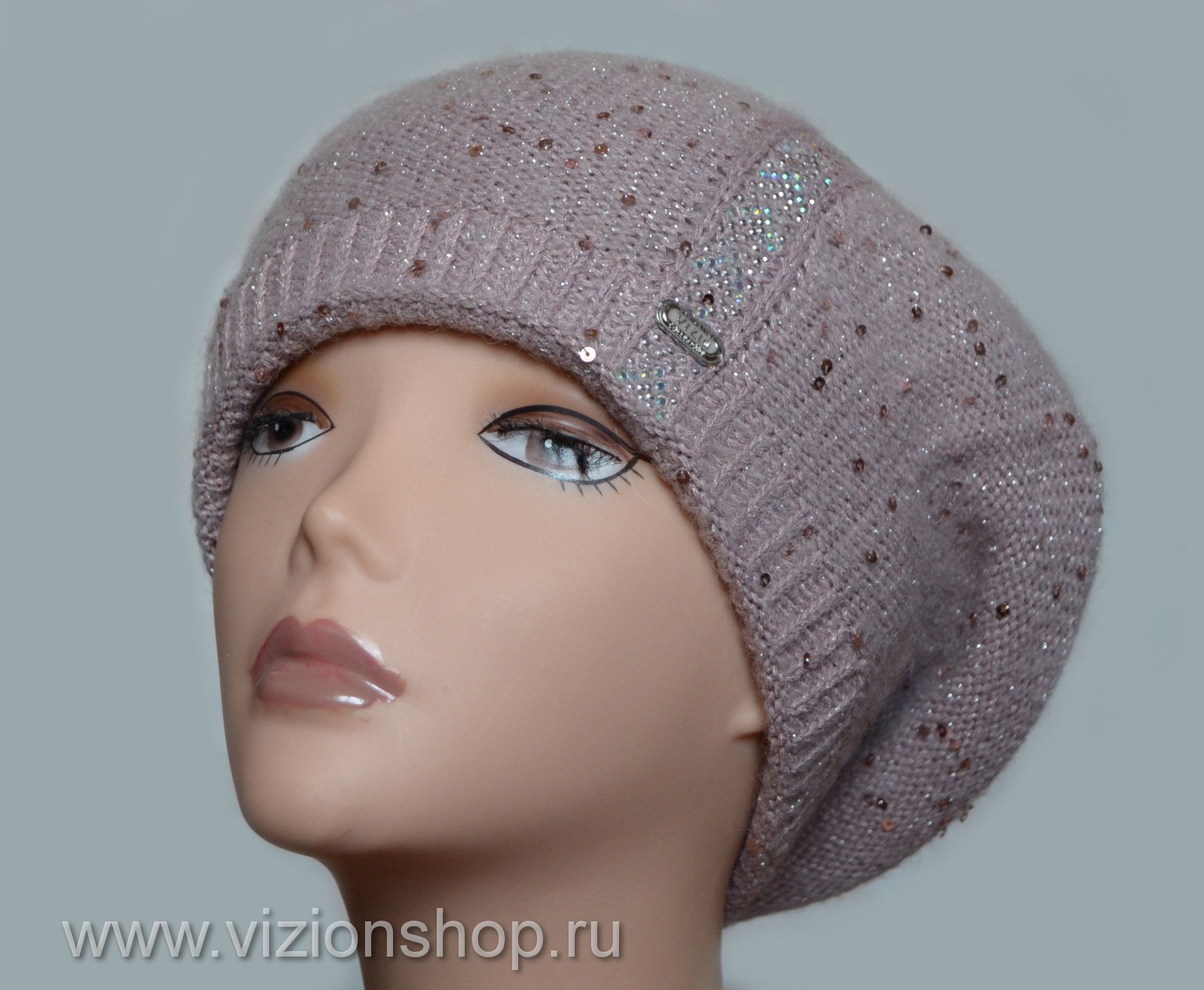 Берет розового цвета зимний вязаный для женщин Италия Визио Vizio 6160 новая женская коллекция вязаных беретов осень - зима 2018 - 2019 купить в интернет магазине женских головных уборов из Италии