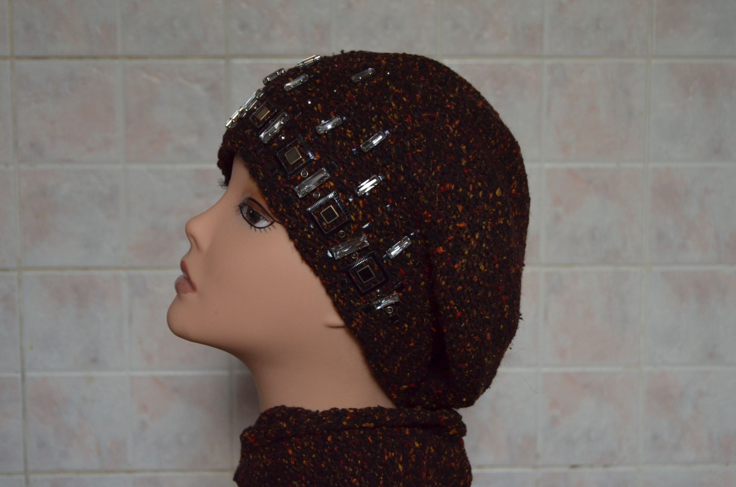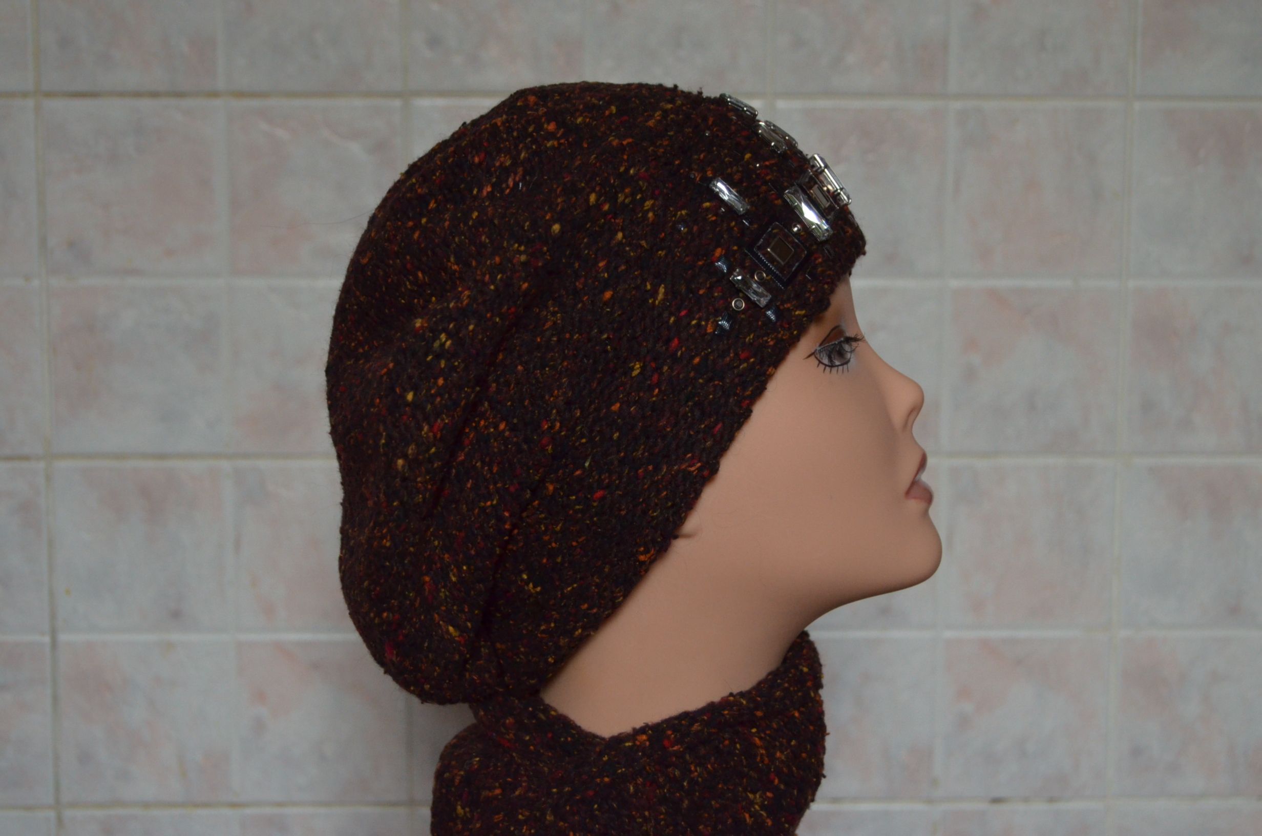 Вязаный разноцветный берет с камнями и шарф Vizio Италия 4870 купить в магазине женских беретов
