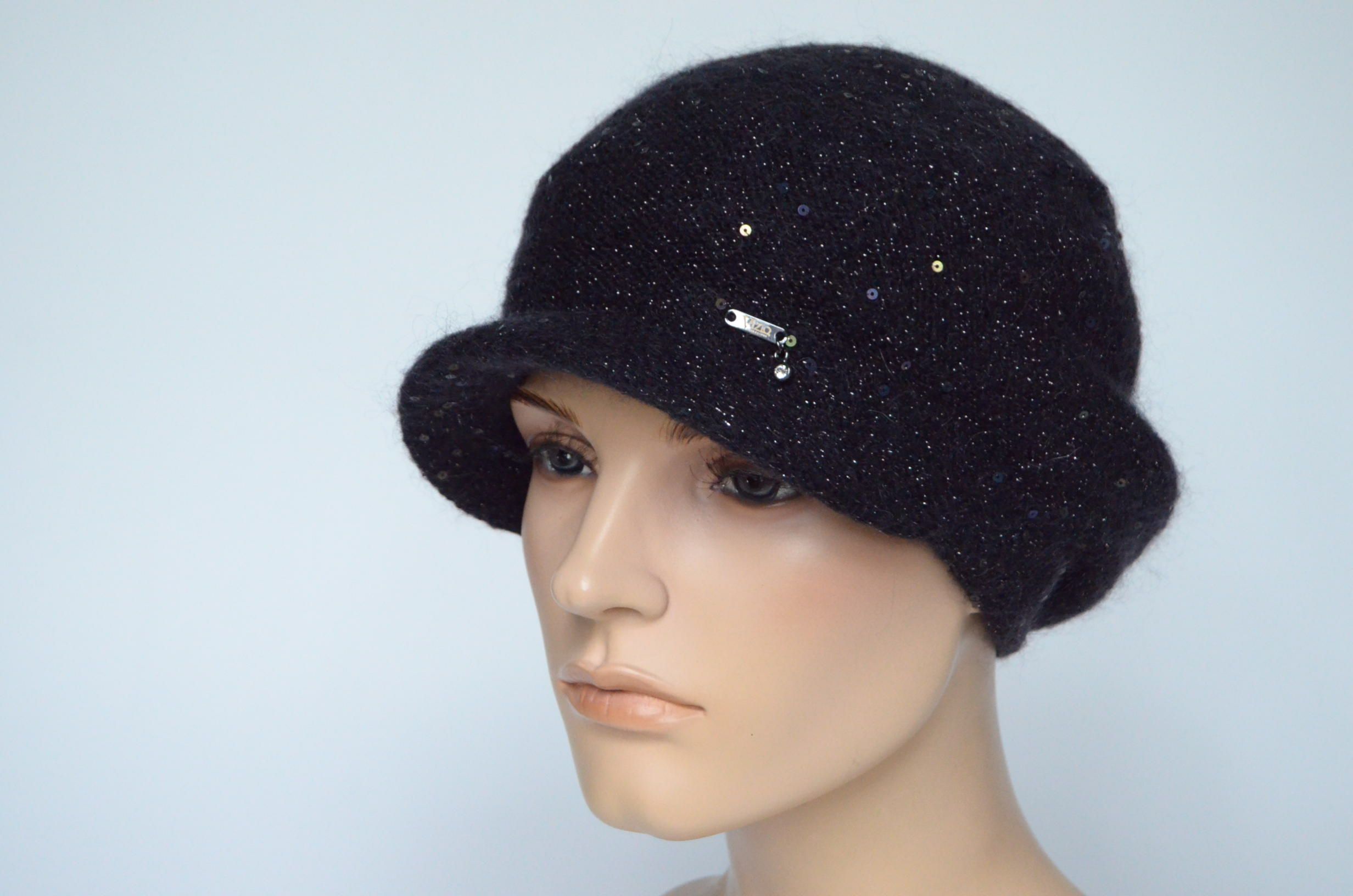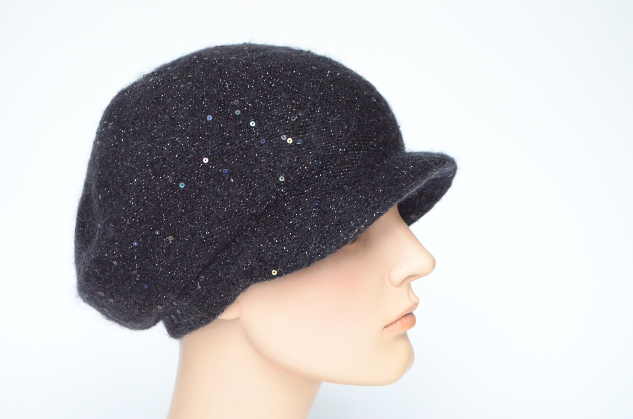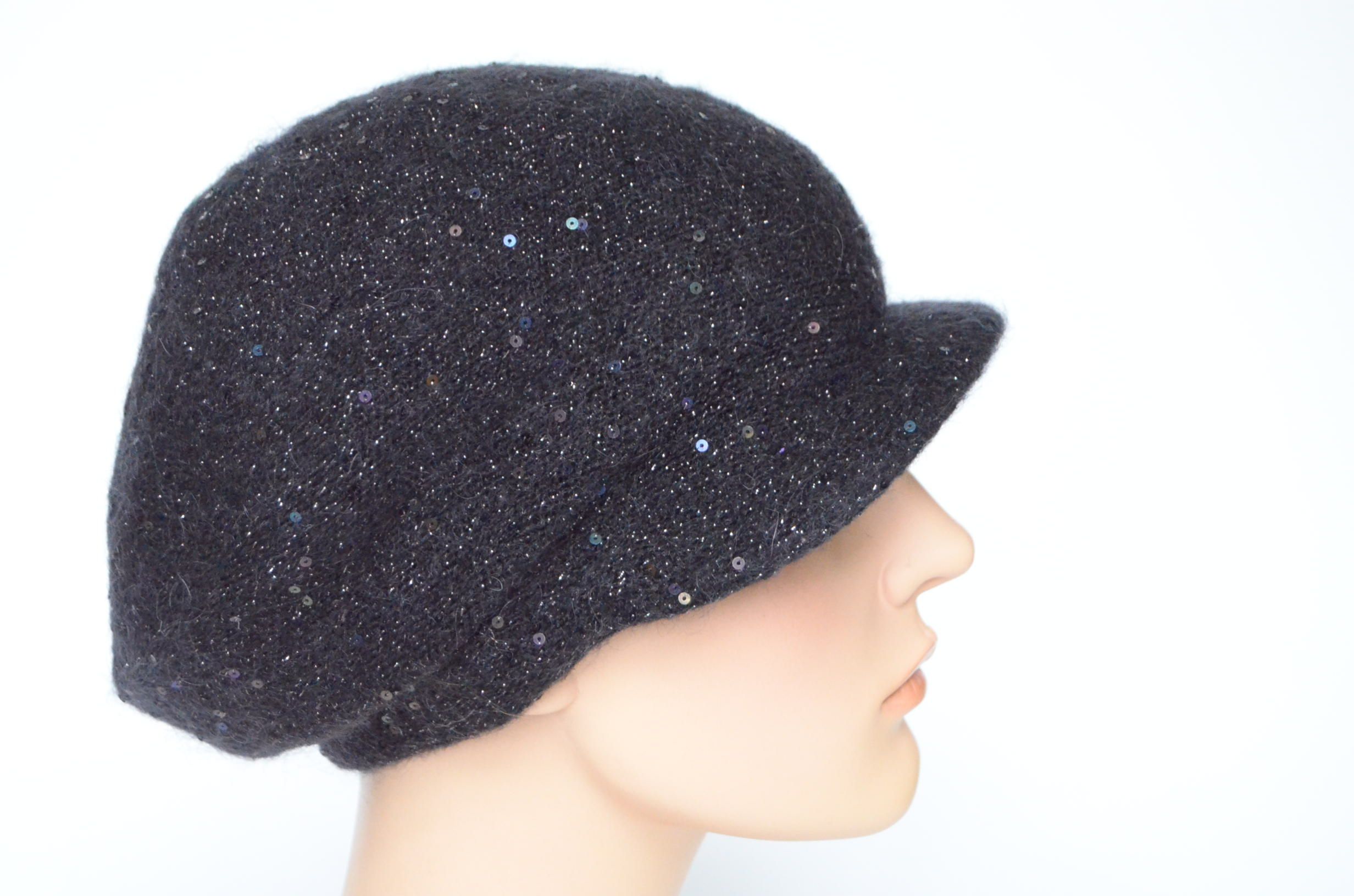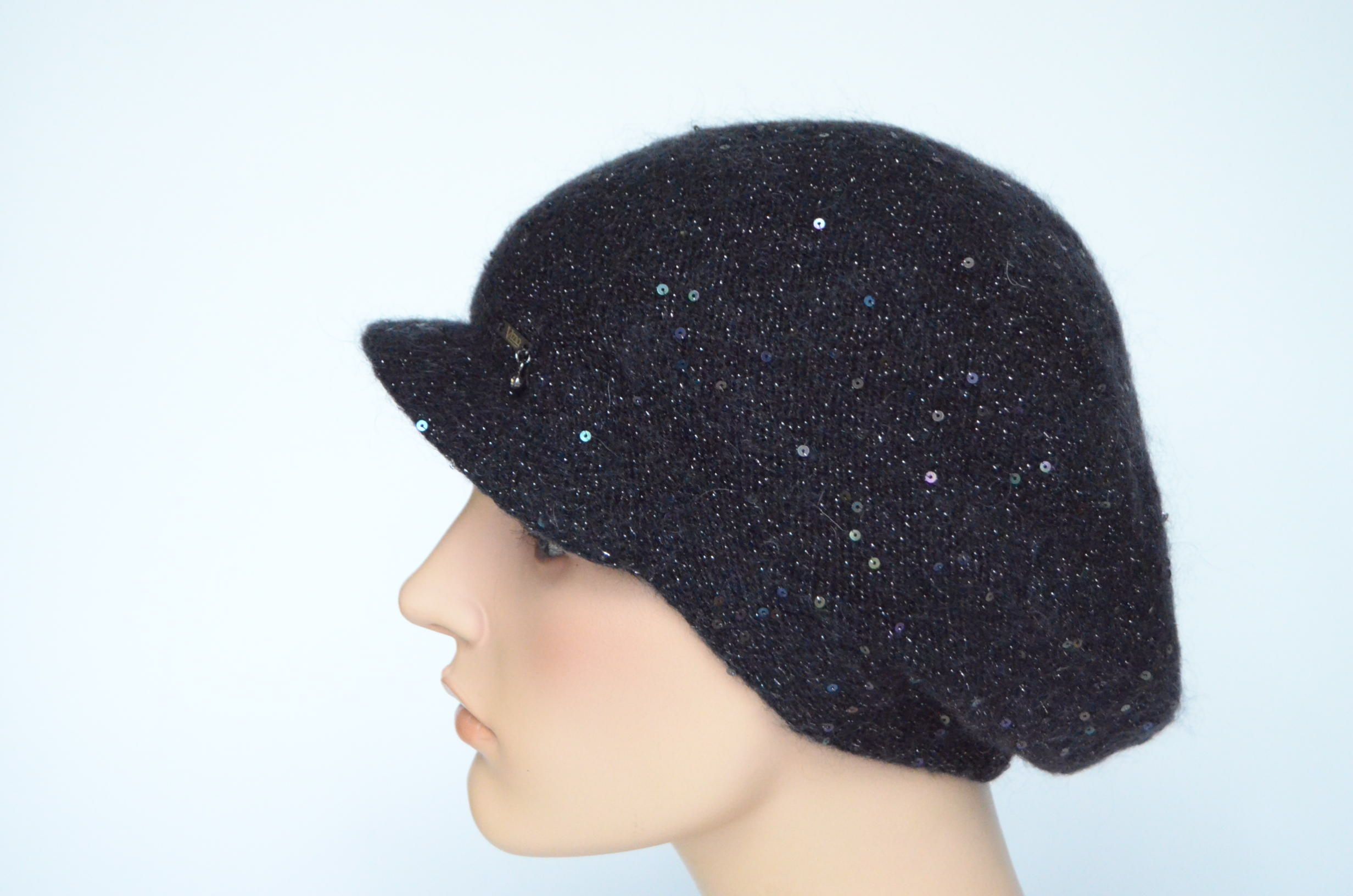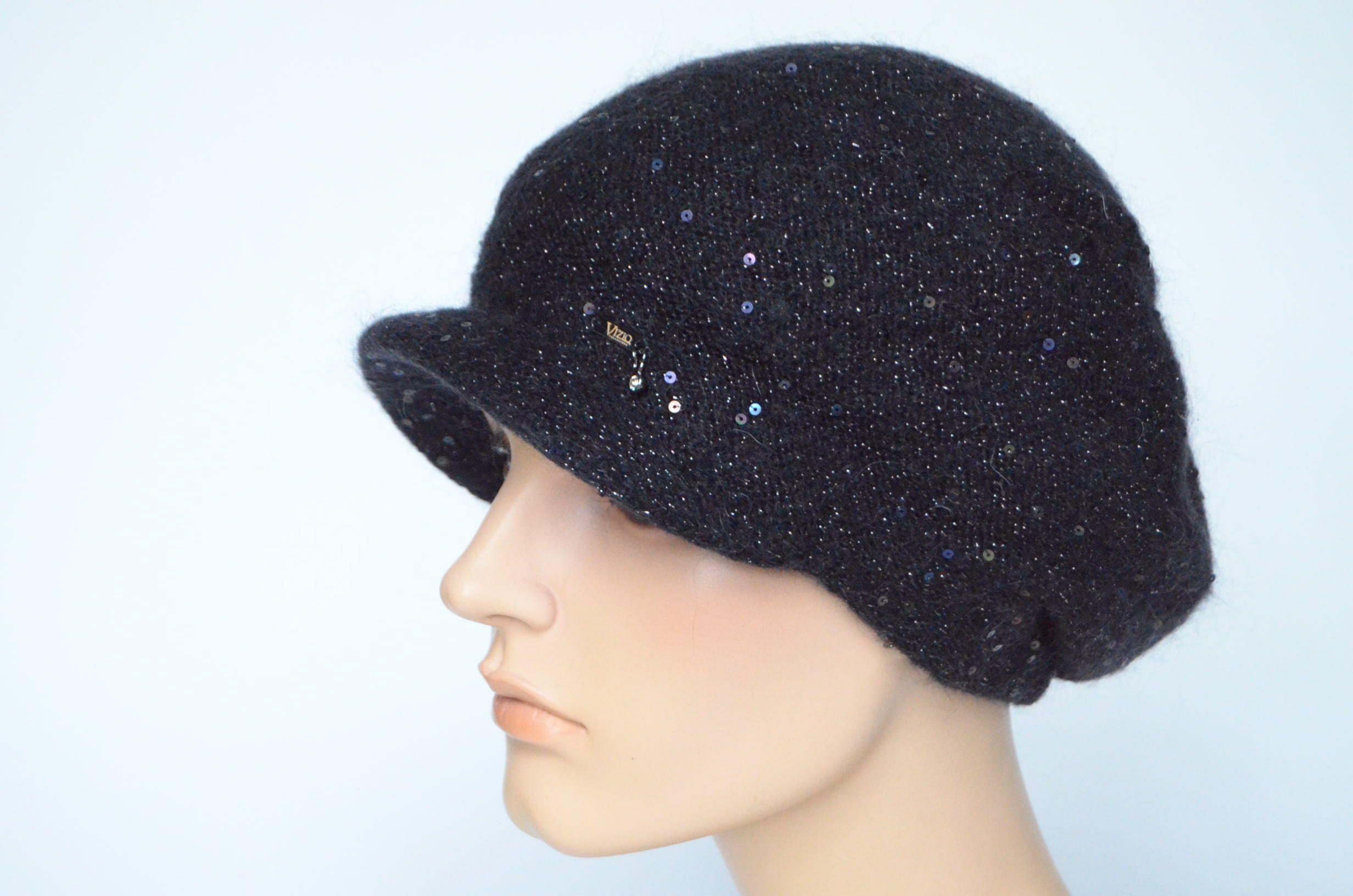Приобрести зимний вязаный берет с козырьком и пайетками из Италии Визио Вы можете в интернет магазине итальянских кепок, шапок и беретов Vizio Collezione