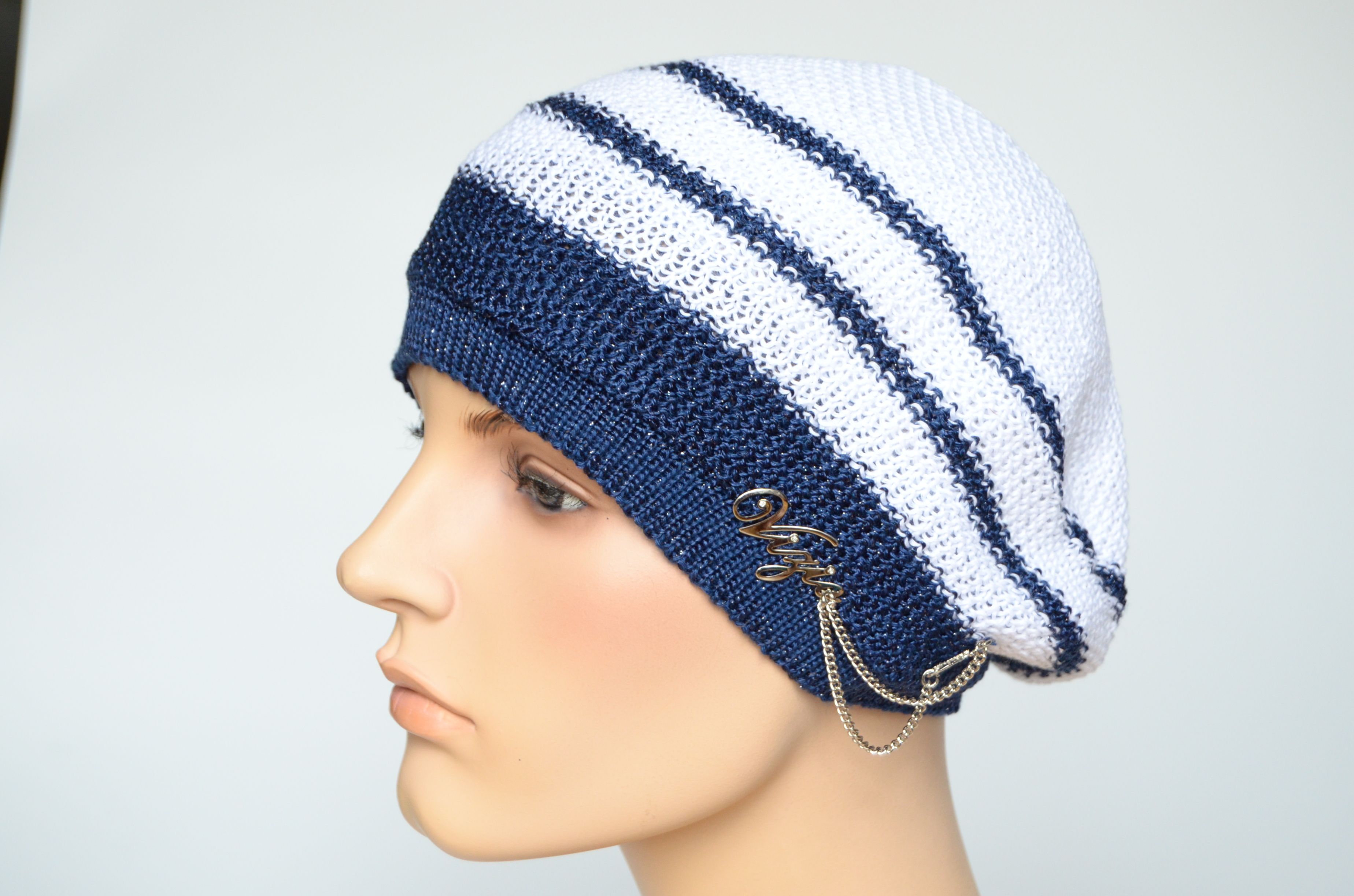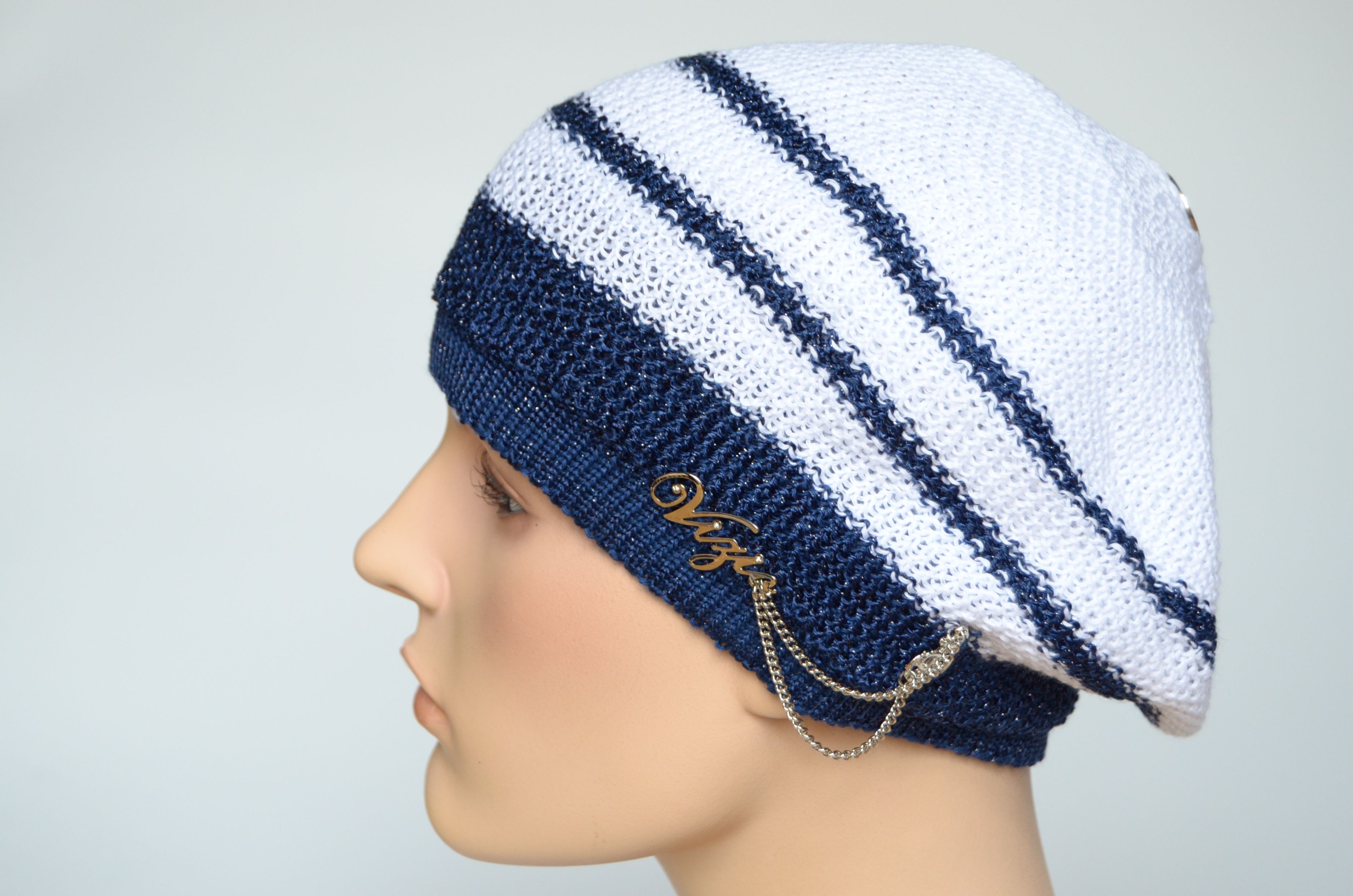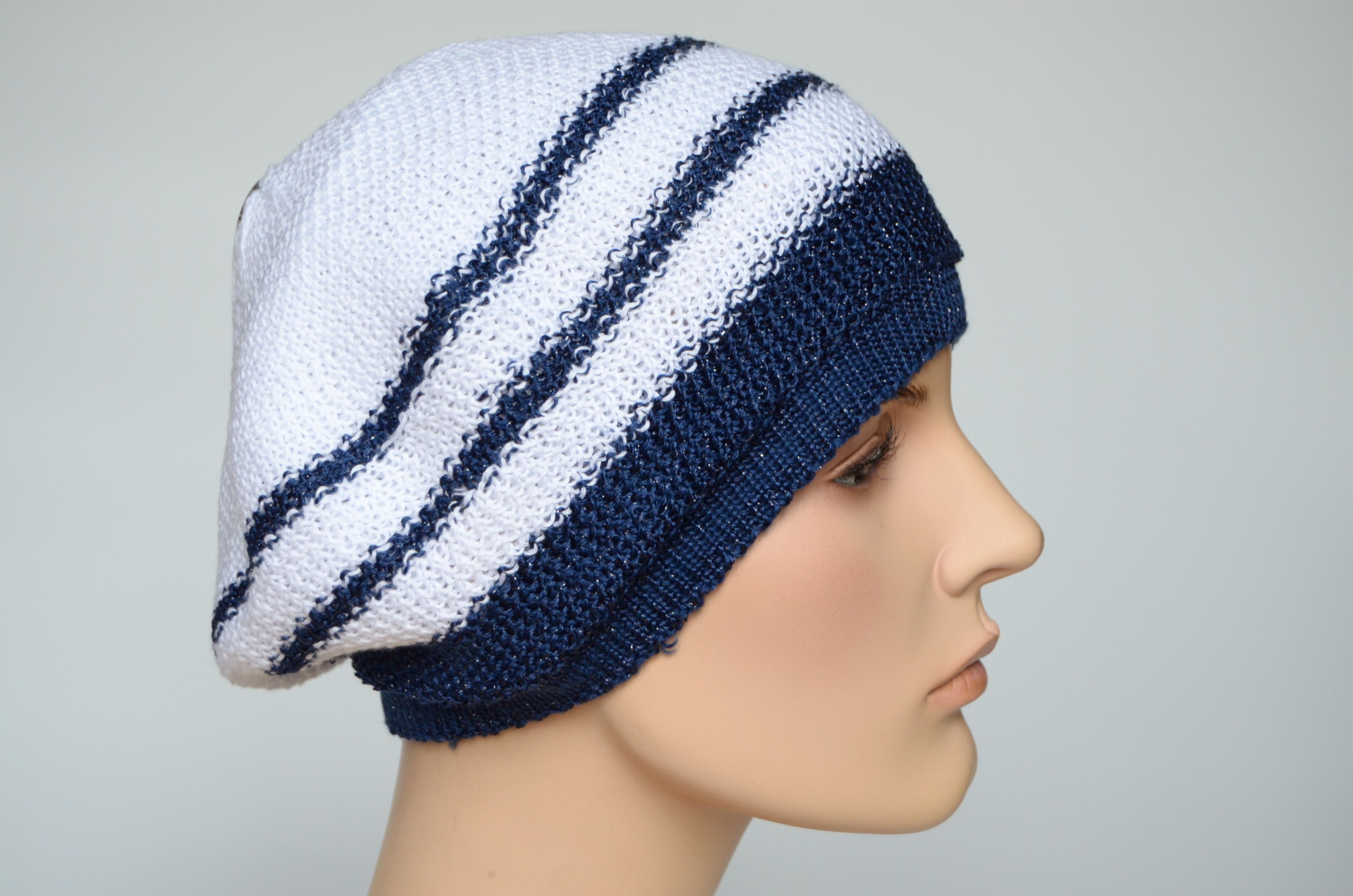 Vizio Визио 5038 белый с синим берет в полоску вязаный из хлопка коллекция летних итальянских головных уборов Vizio Collezione