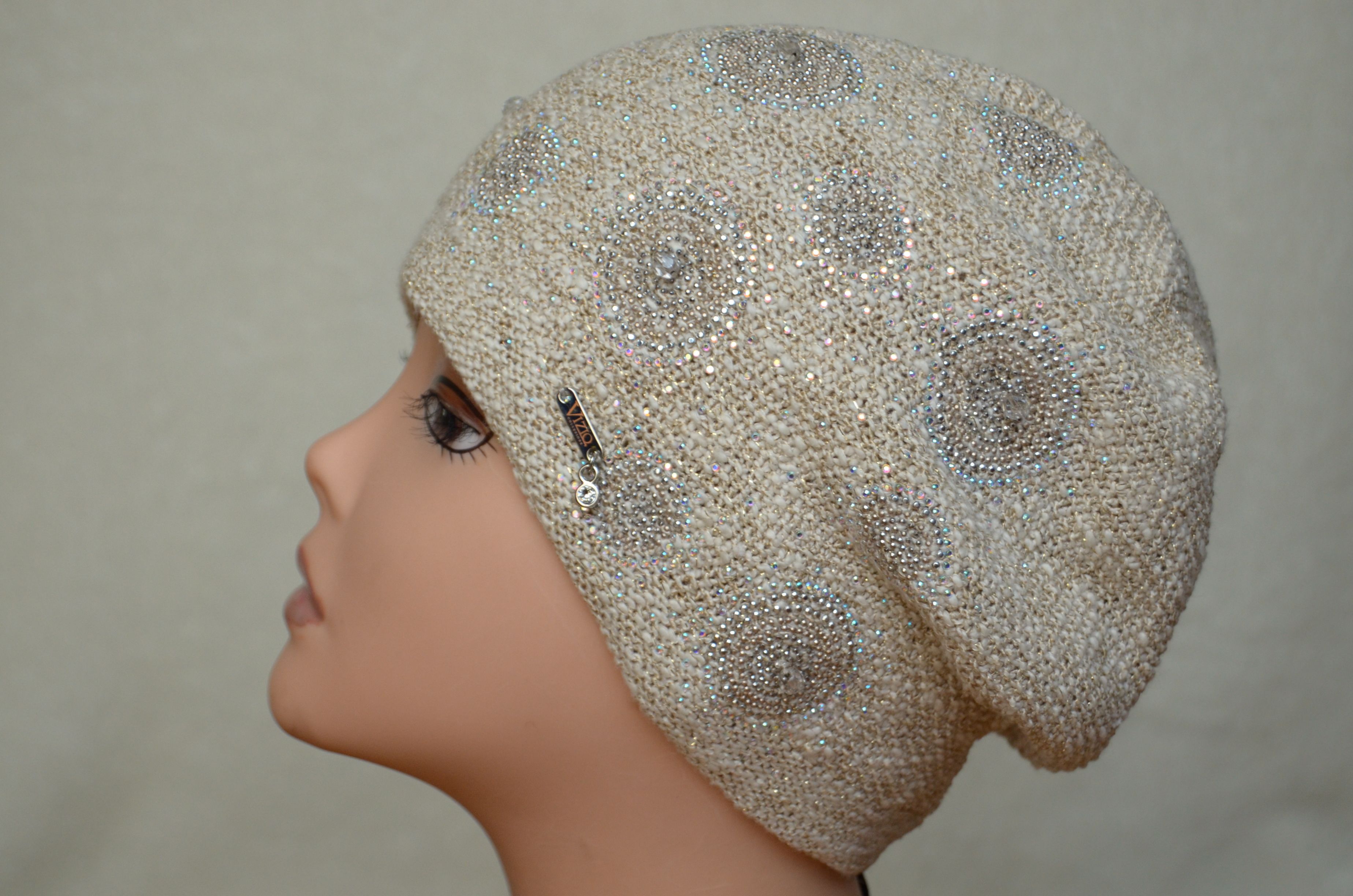 Берет весна - лето 2019 с камнями Сваровски Vizio Италия 6356 бежевый берет из коллекции итальянских беретов купить в интернет магазине с доставкой по Москве и России