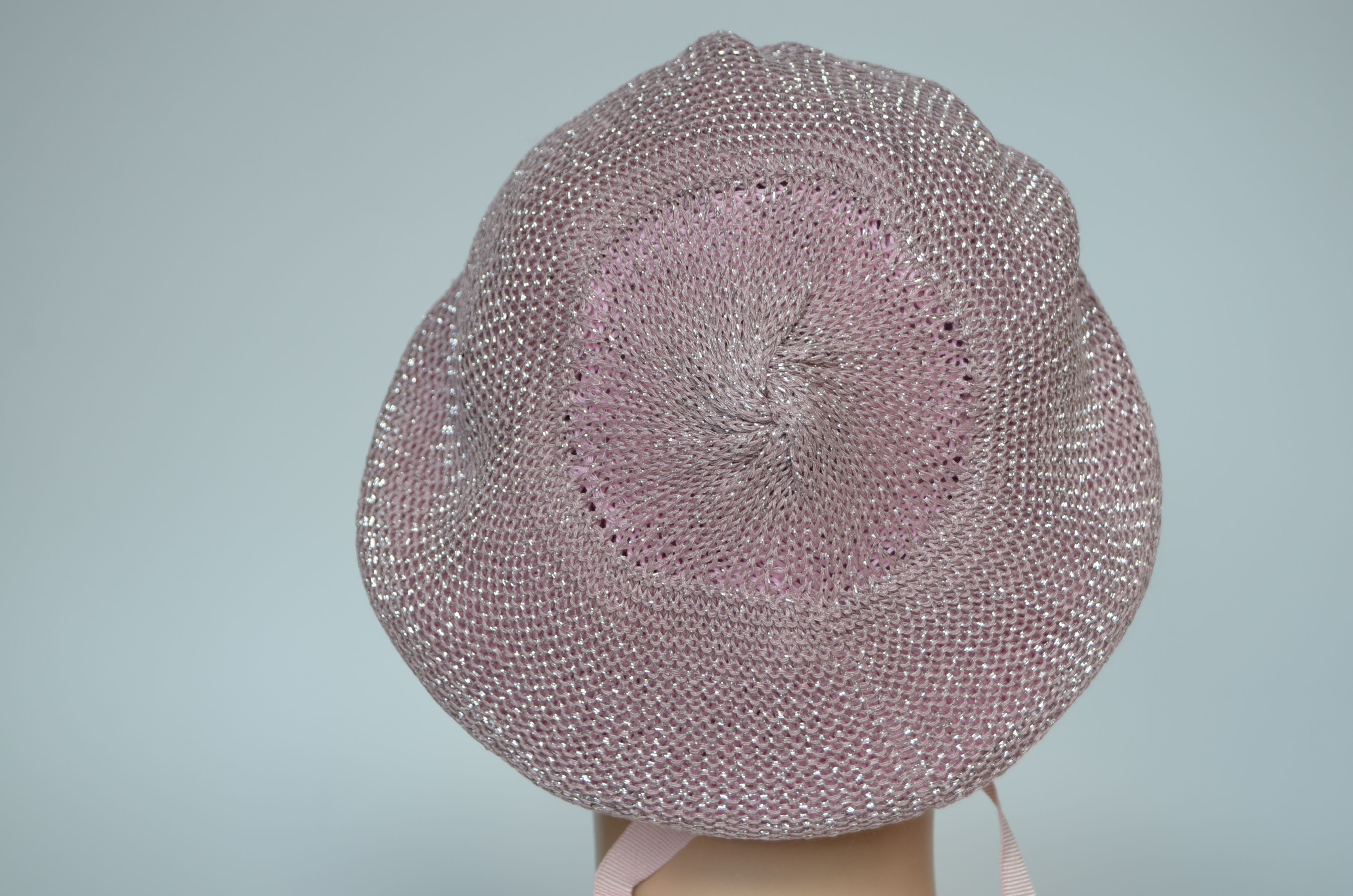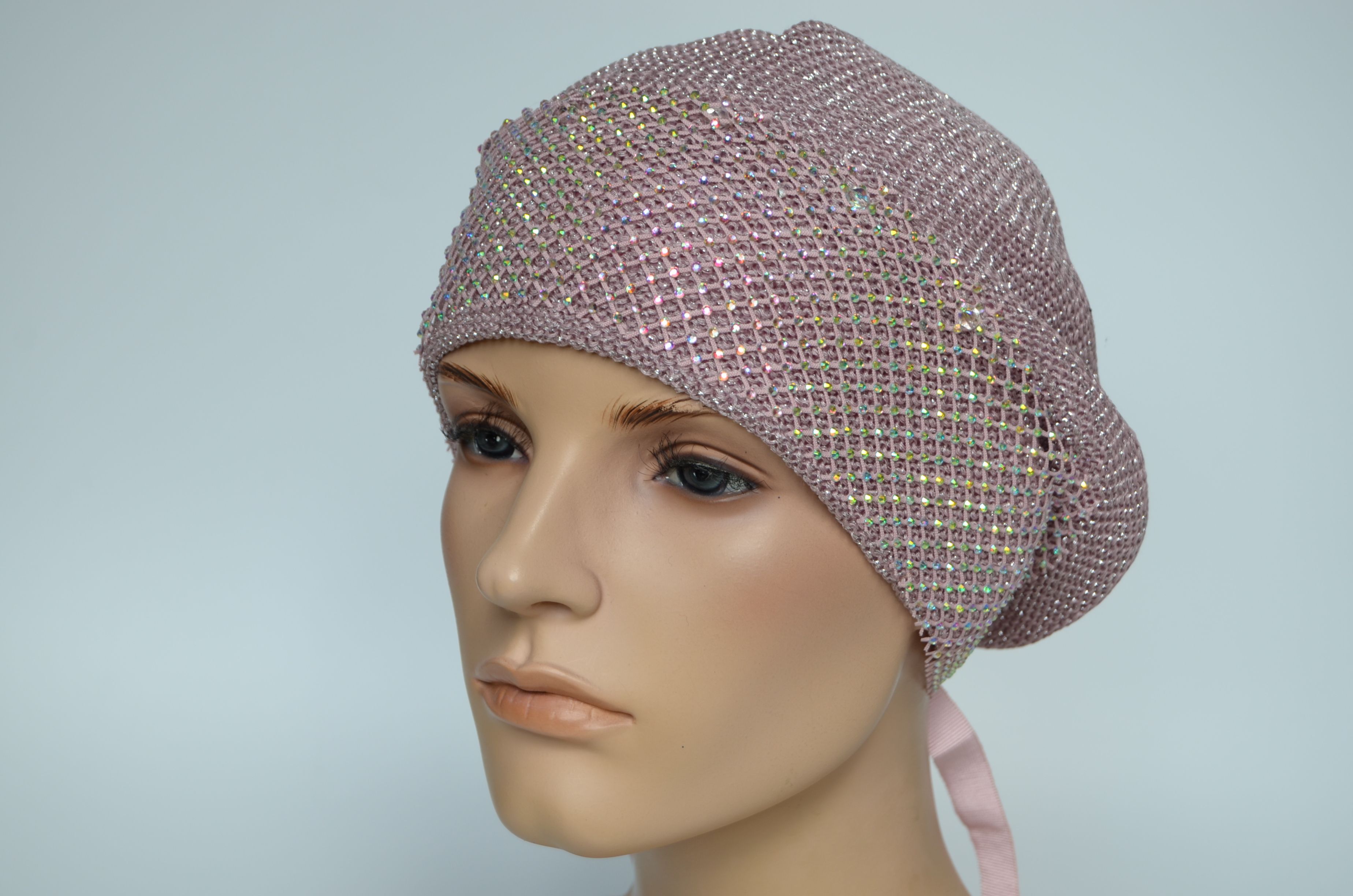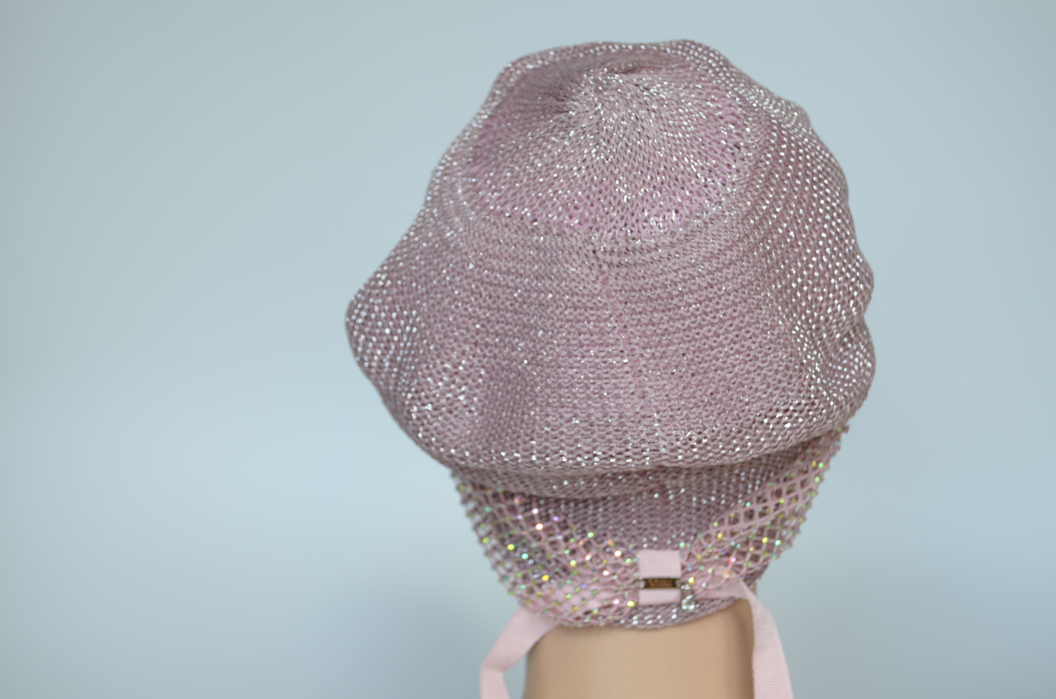 Вязаный розовый итальянский берет с сеткой страз Vizio Италия 1229 новая коллекция беретов весна - лето - осень 2024 купить в интернет магазине итальянских головных уборов