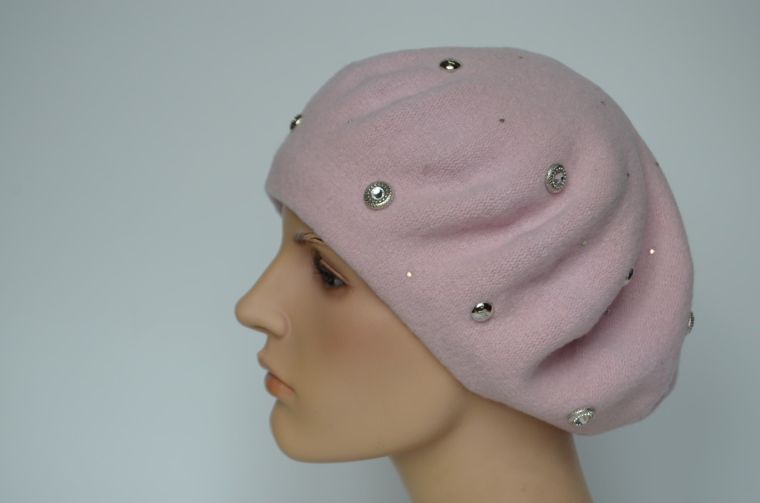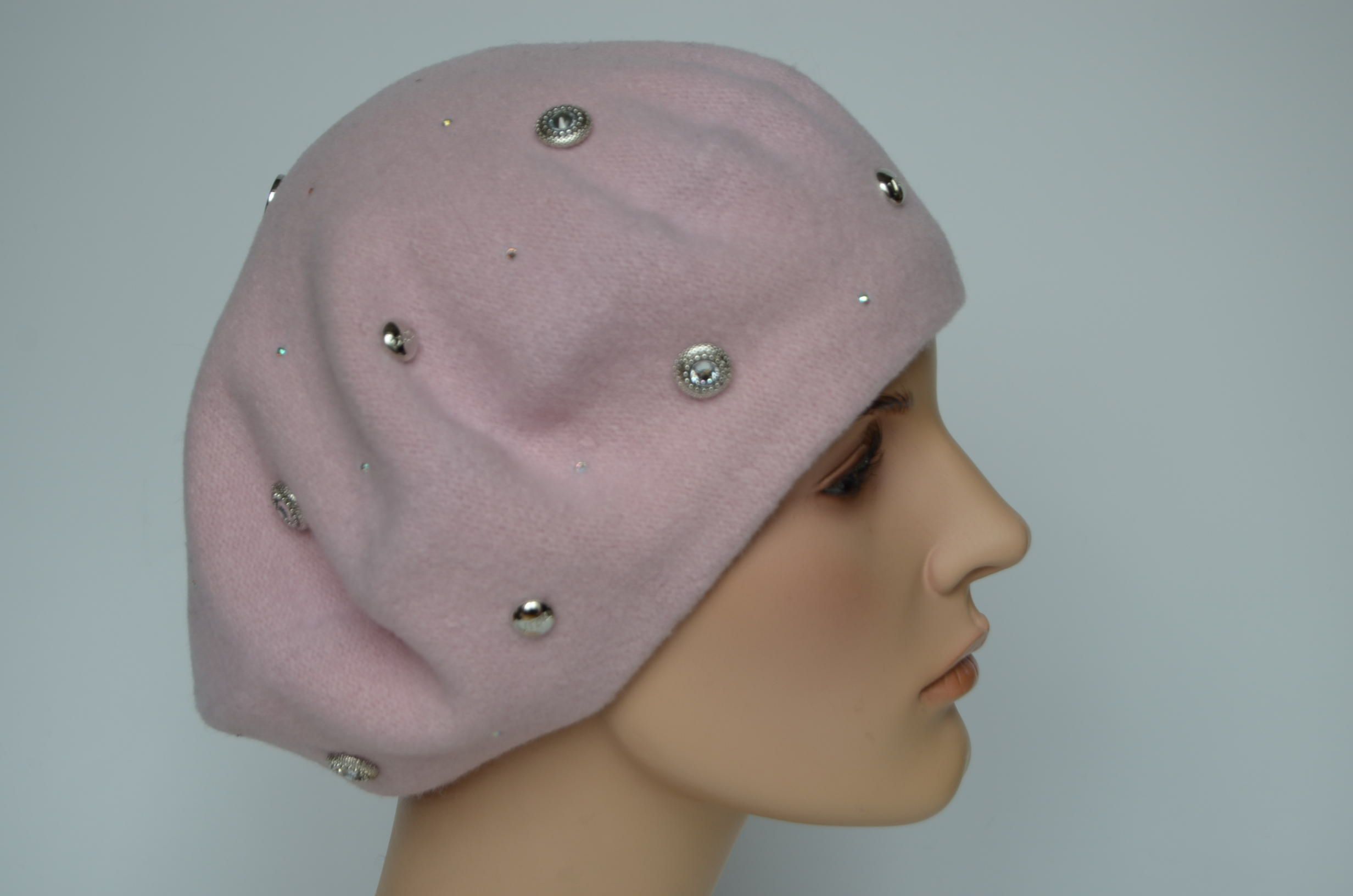 Фетровый берет пудрового цвета со стразами сваровски для женщин