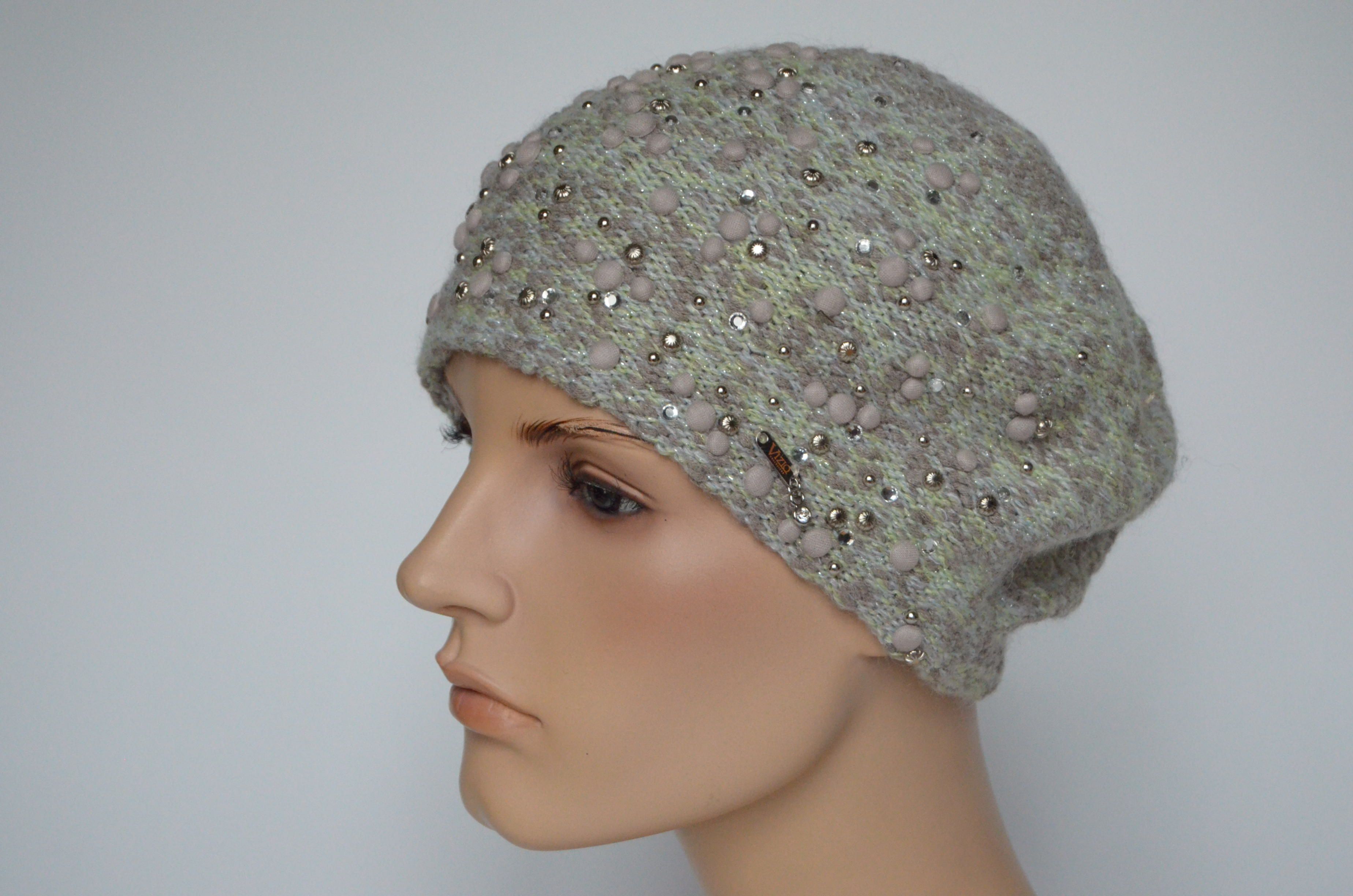 Итальянский демисезонный берет тонкий с украшениями Vizio 7084 ВО бежевомятного цвета коллекция беретов весна - осень - зима Италия Визио