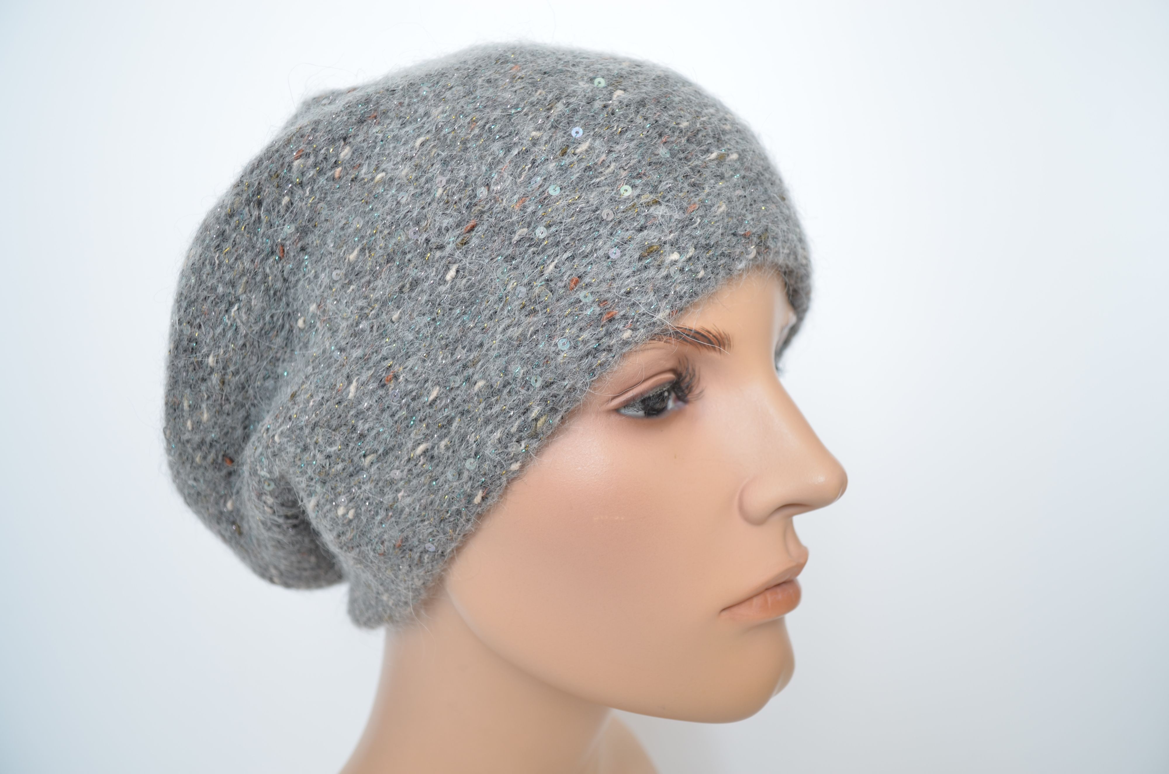 Зимний вязаный берет темно серого цвета для женщин