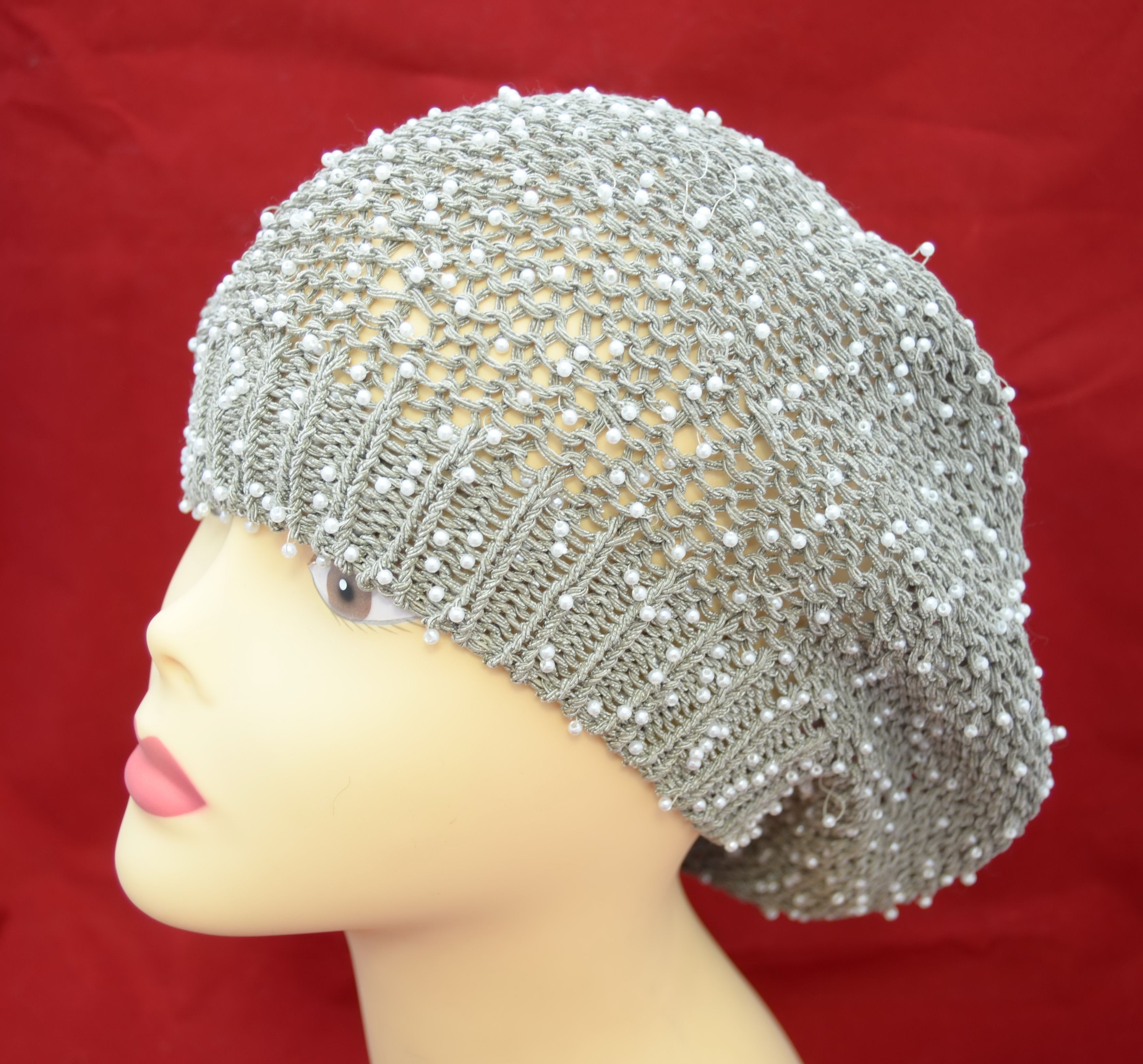 Берет вязаный из бисера Vizio Италия женский берет серого цвета из бисера из коллекции летних вязаных беретов купить в интернет магазине вязаных головных уборов