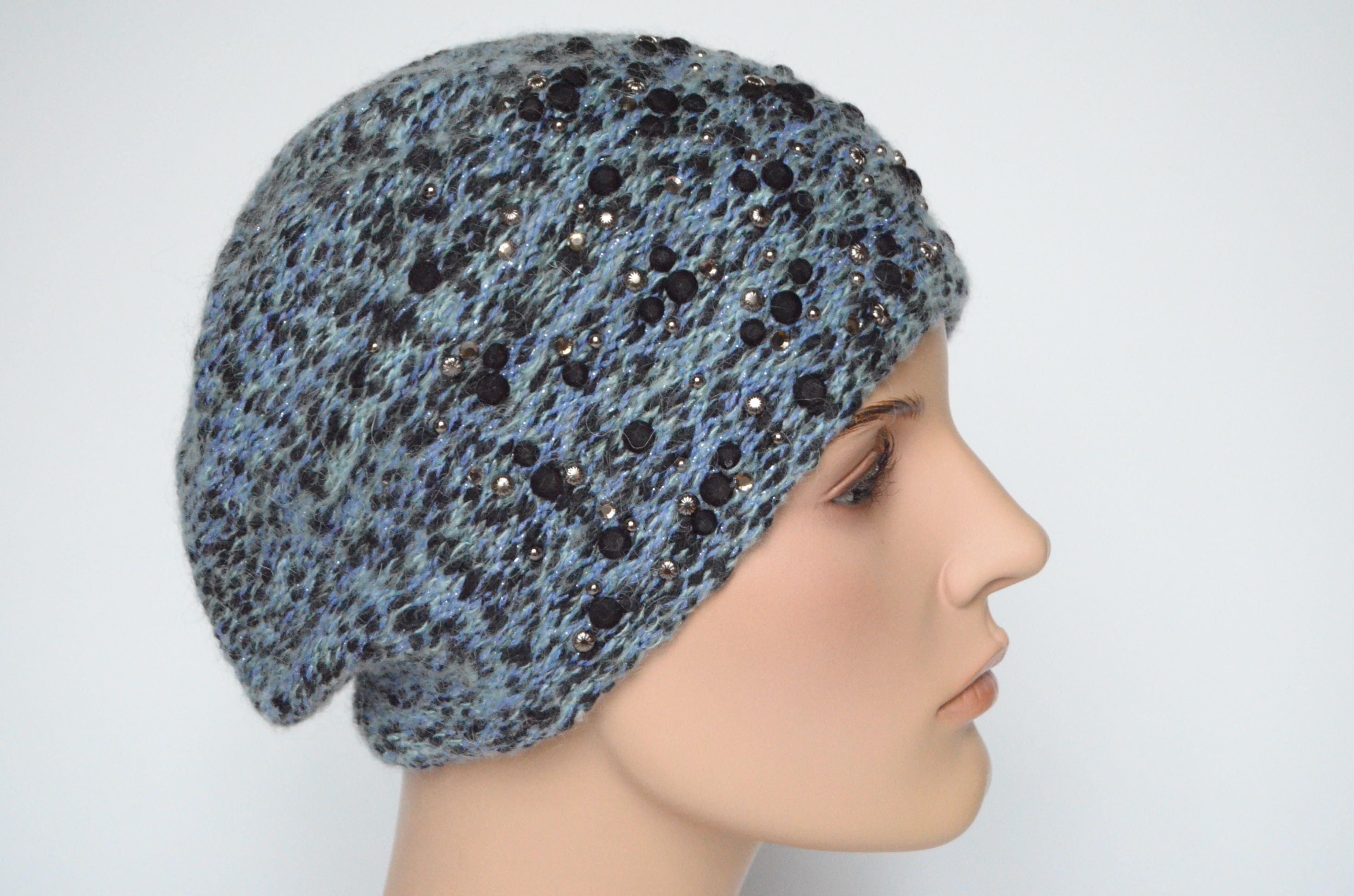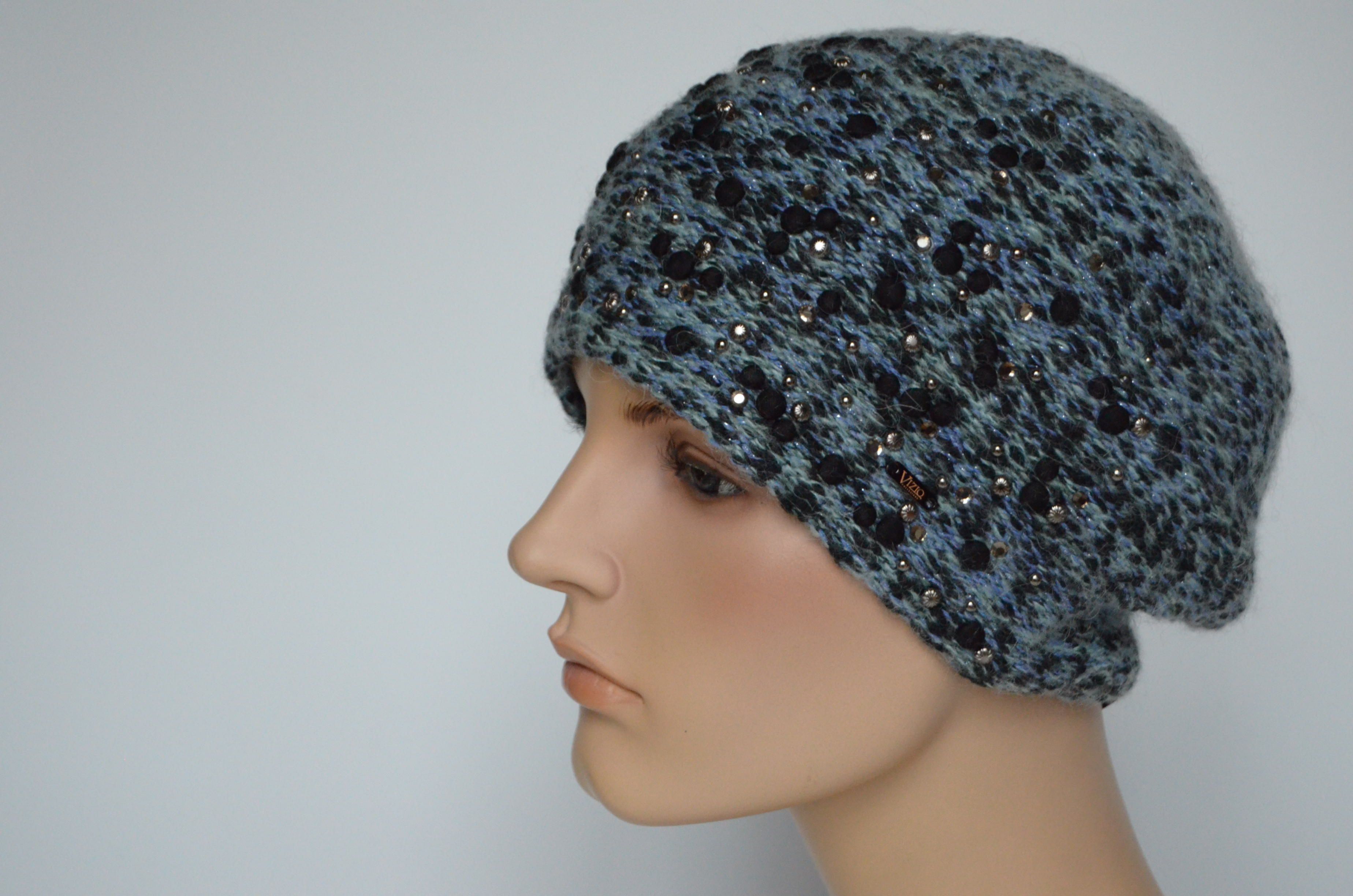 Итальянский демисезонный головной убор берет тонкий с украшениями Vizio 7084 ВО голубого цвета коллекция беретов для женщин весна - осень - зима Италия Визио