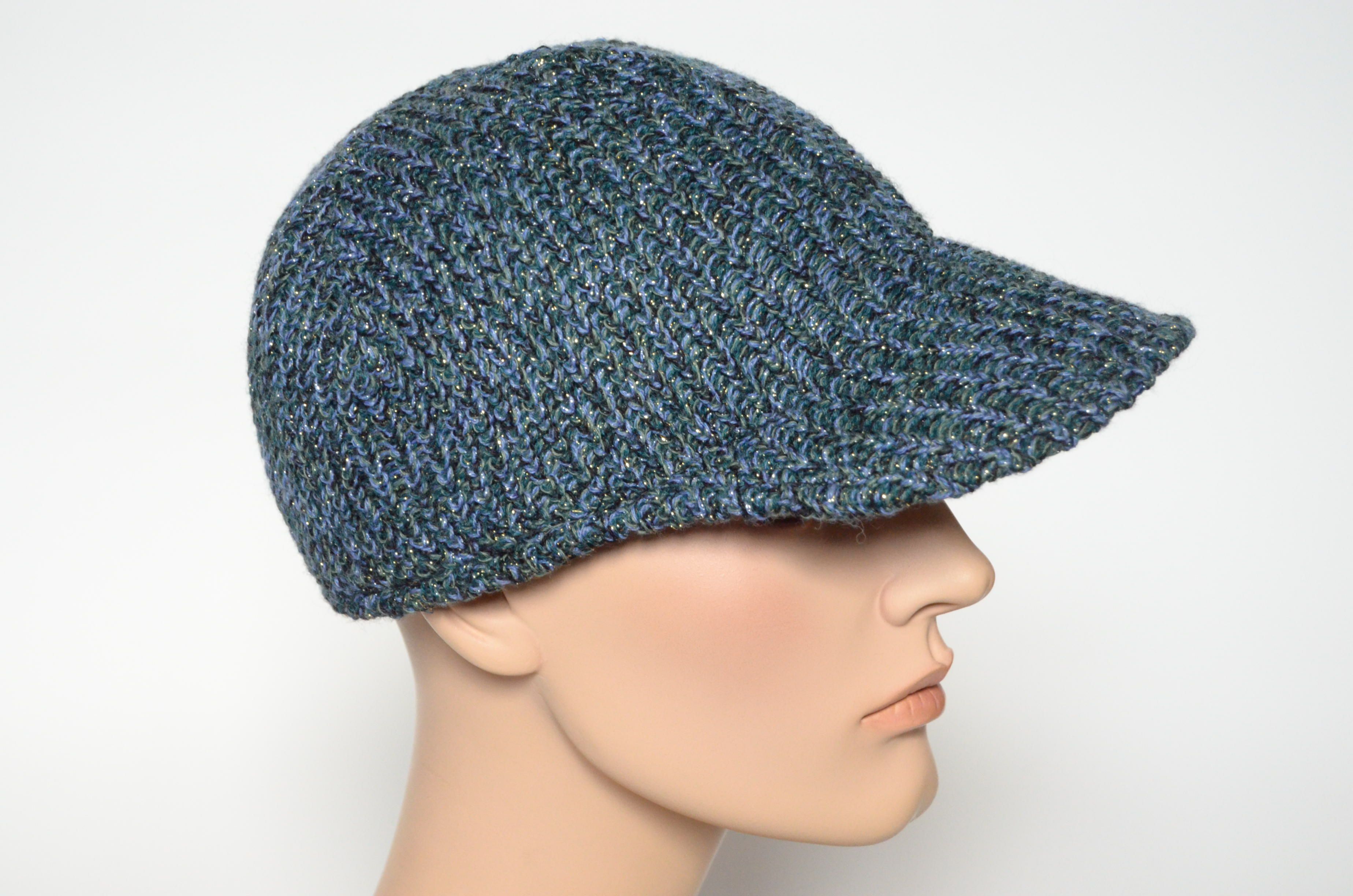 Вязаная бейсболка зимняя для женщин фетровая синего цвета