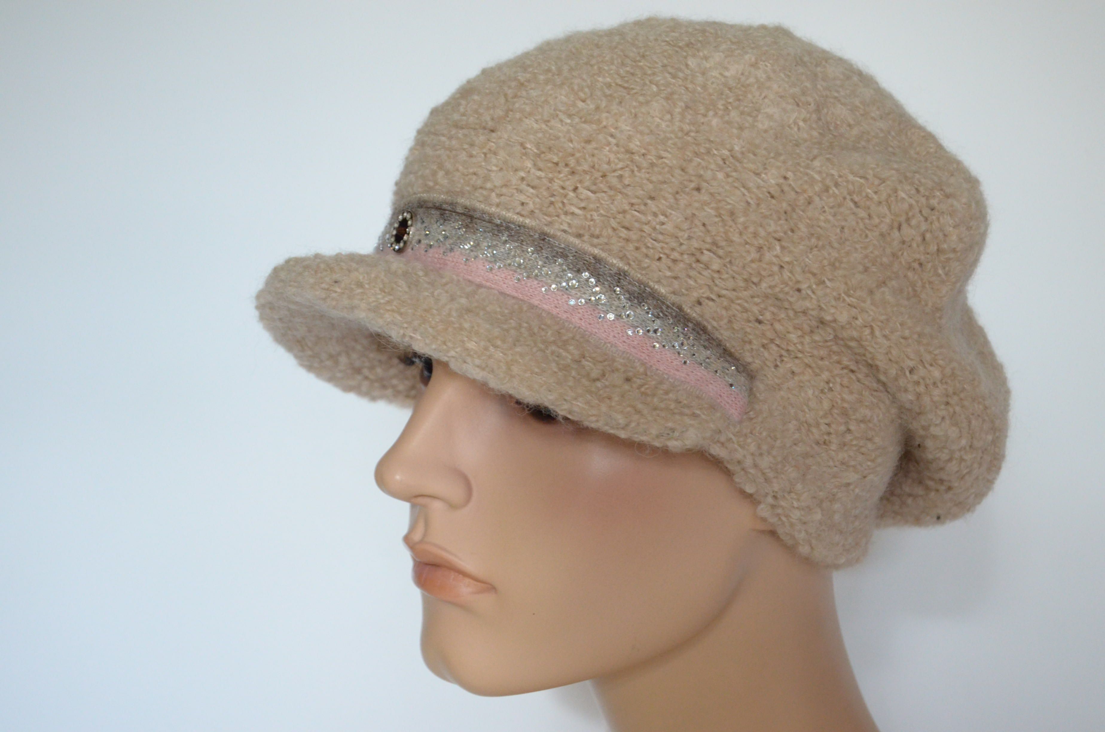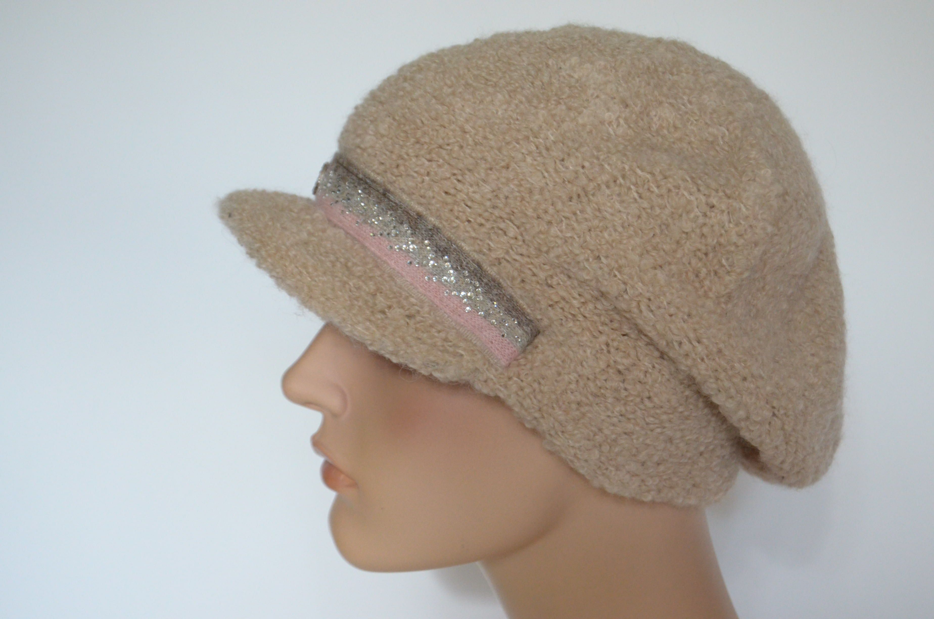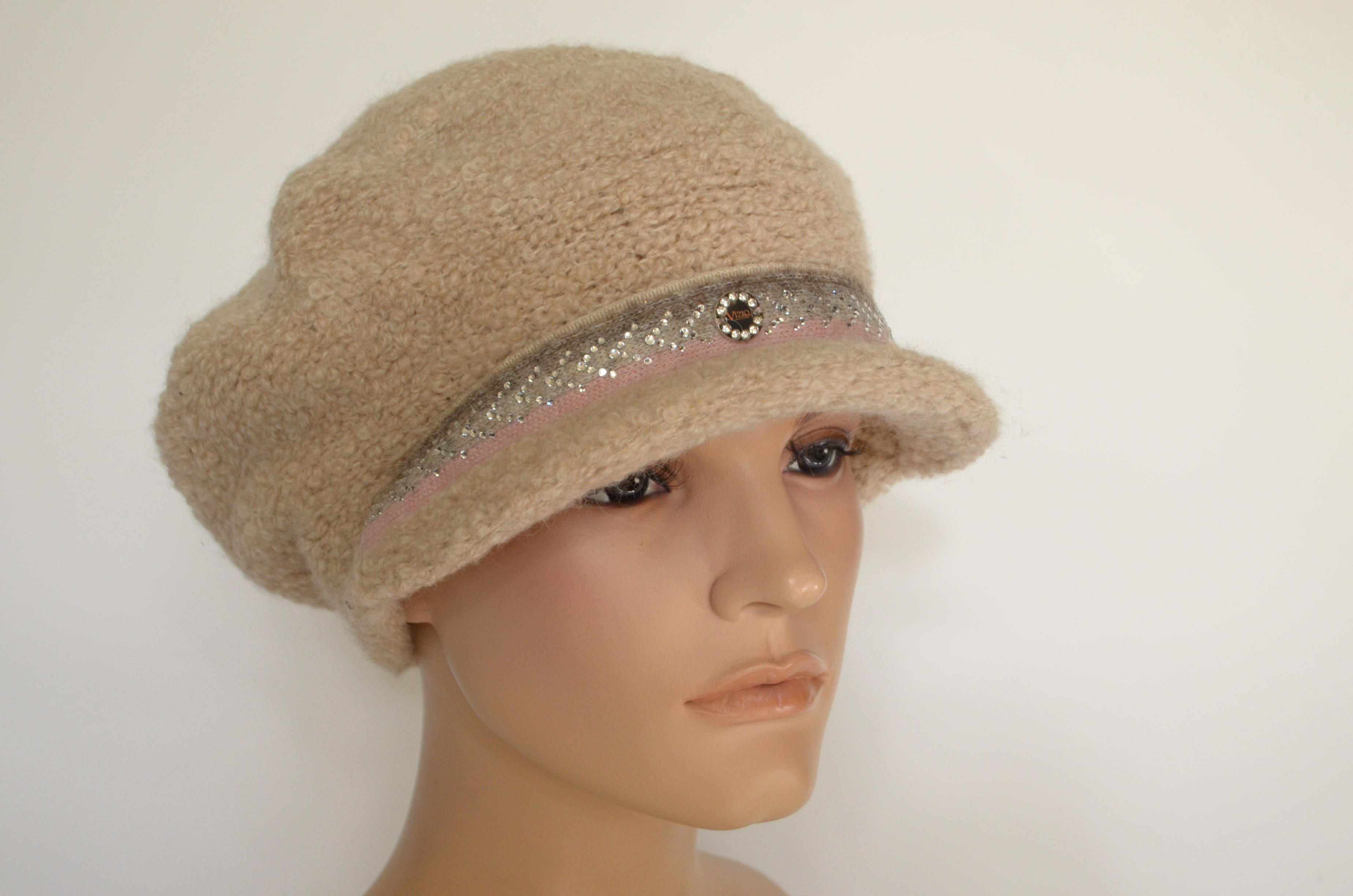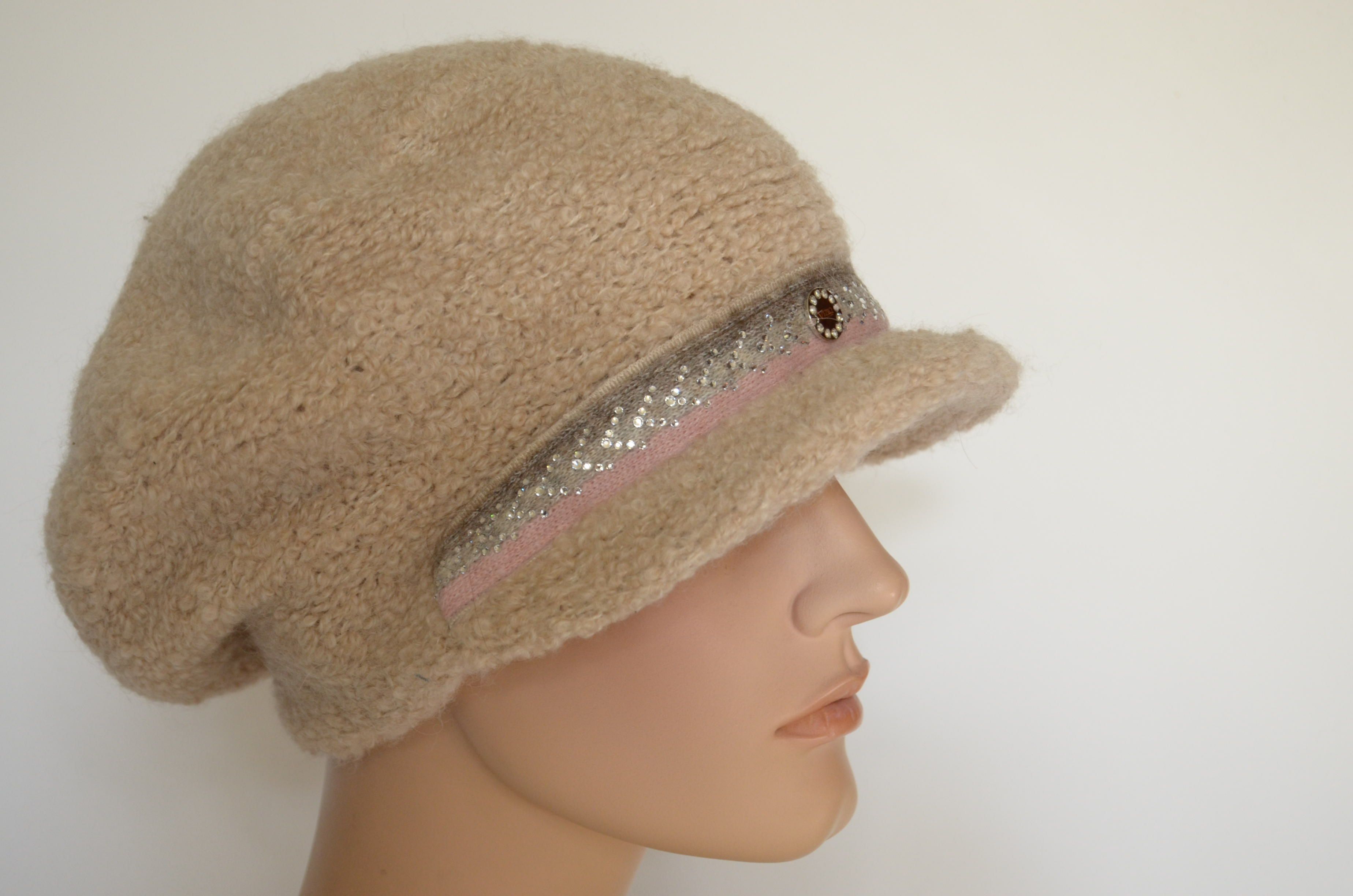 Купить вязаную зимнюю кепку женскую бежевую из альпака зима 2023 Визио Италия в интернет магазине вязаных кепок и шапок для женщин