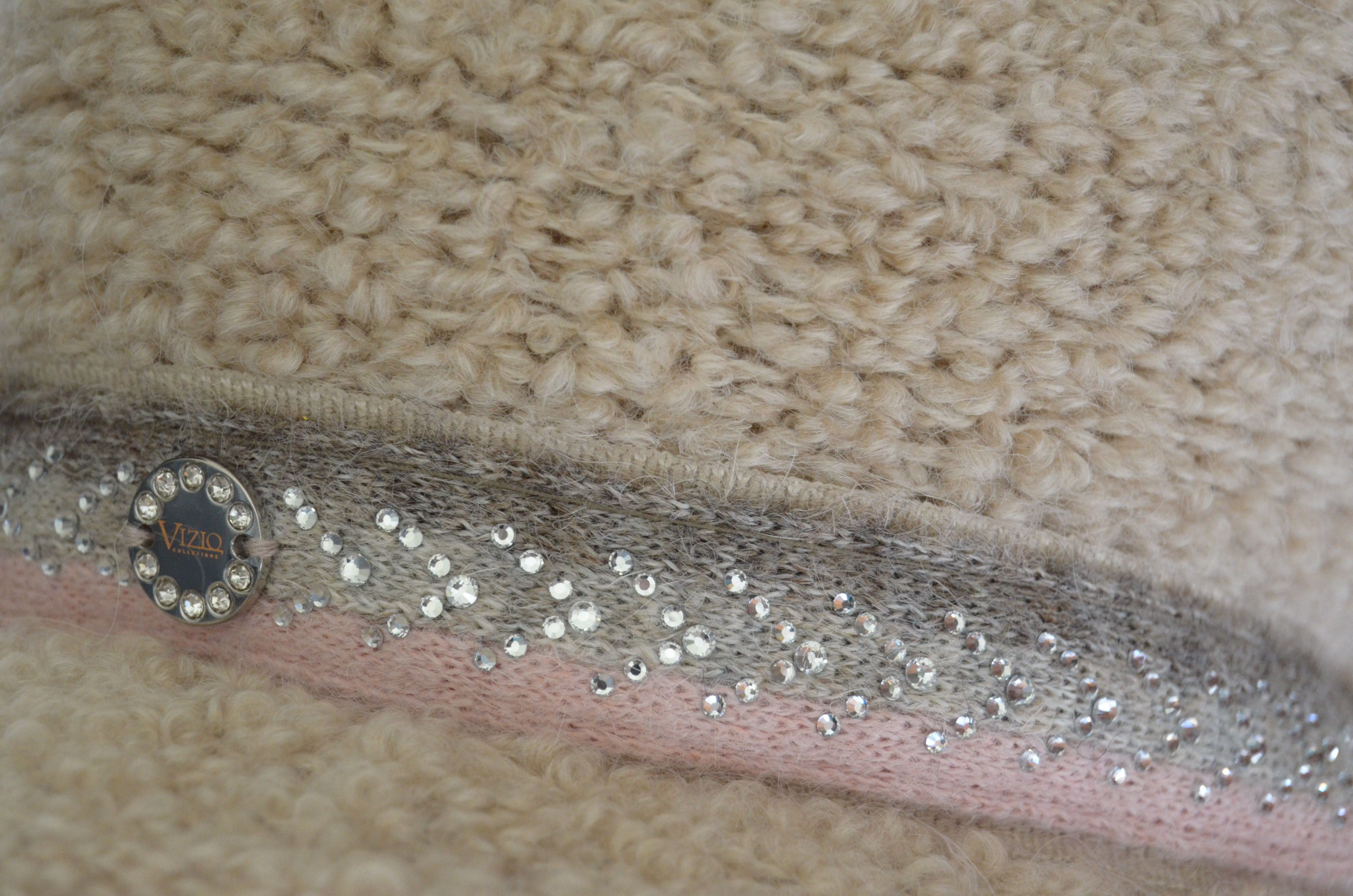 Вязаная кепка зимняя бежевого цвета из альпака Италия Vizio 9014 WK зима 2022 - 2023 купить в интернет магазине итальянских шапок и кепок Визио