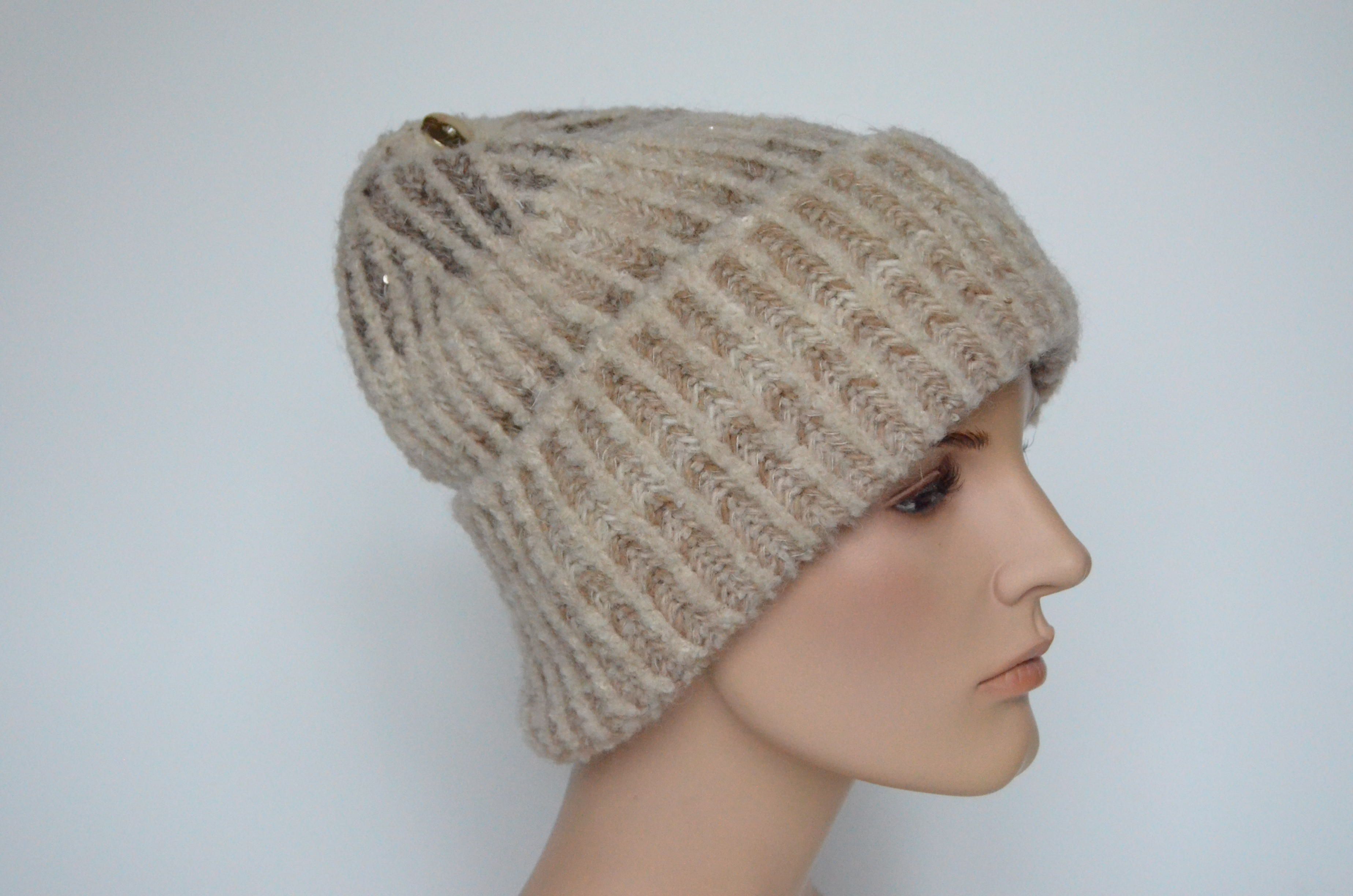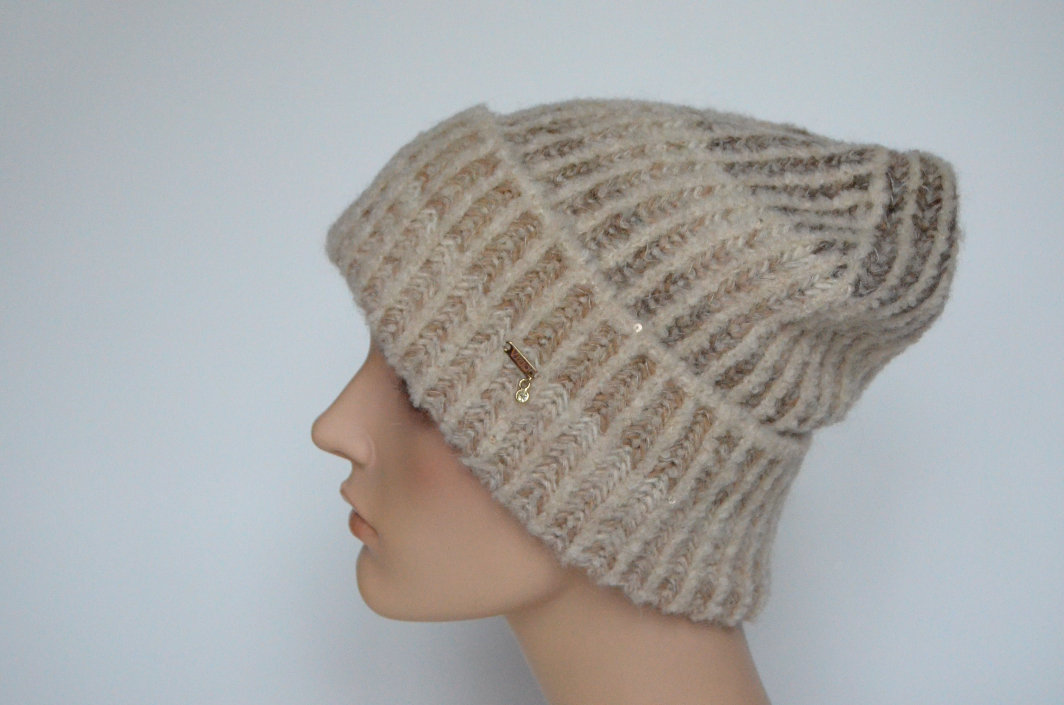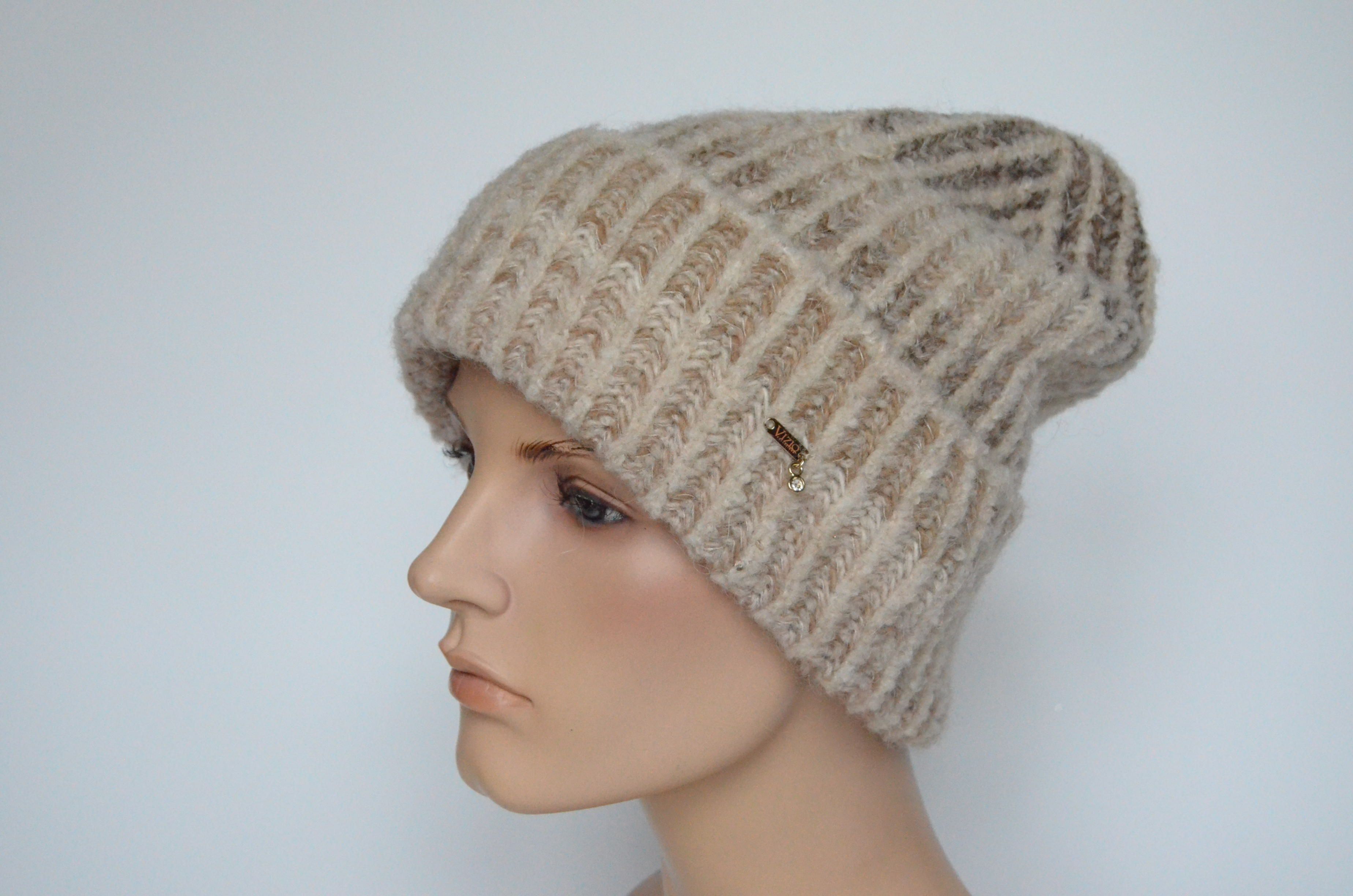 Приобрести женскую бежевую шапку вязаную с отворотом Визио Италия зима 2023 вы можете в интернет магазине итальянских головных уборов для женщин в Москве и доставкой по России