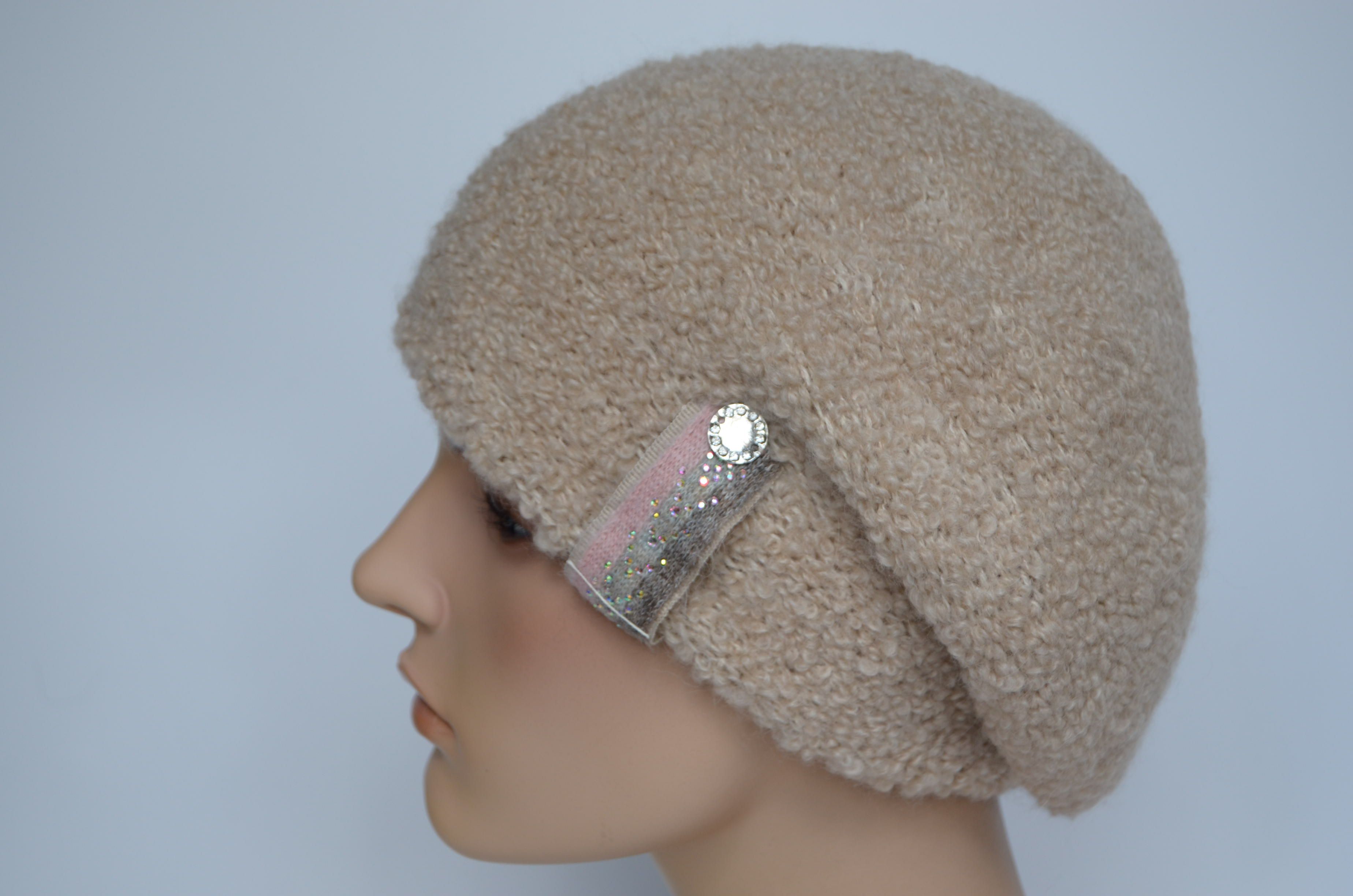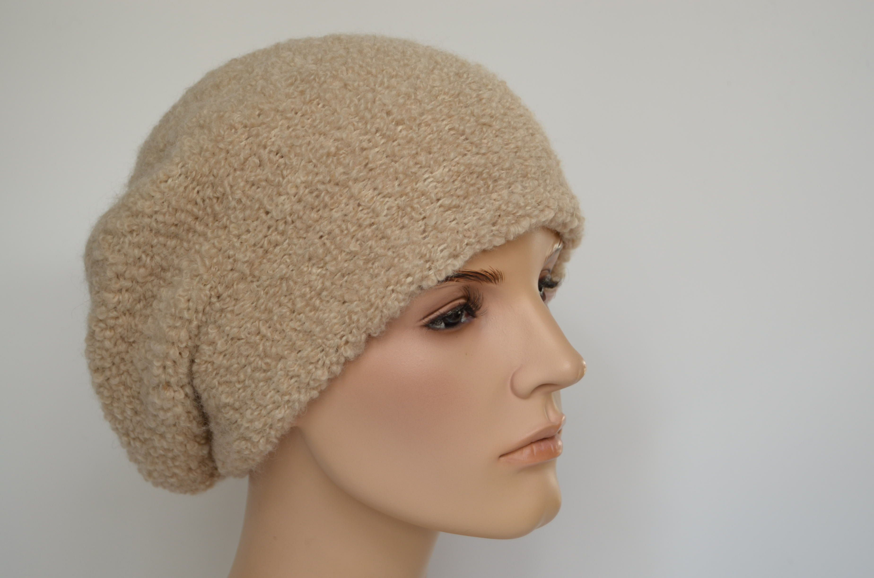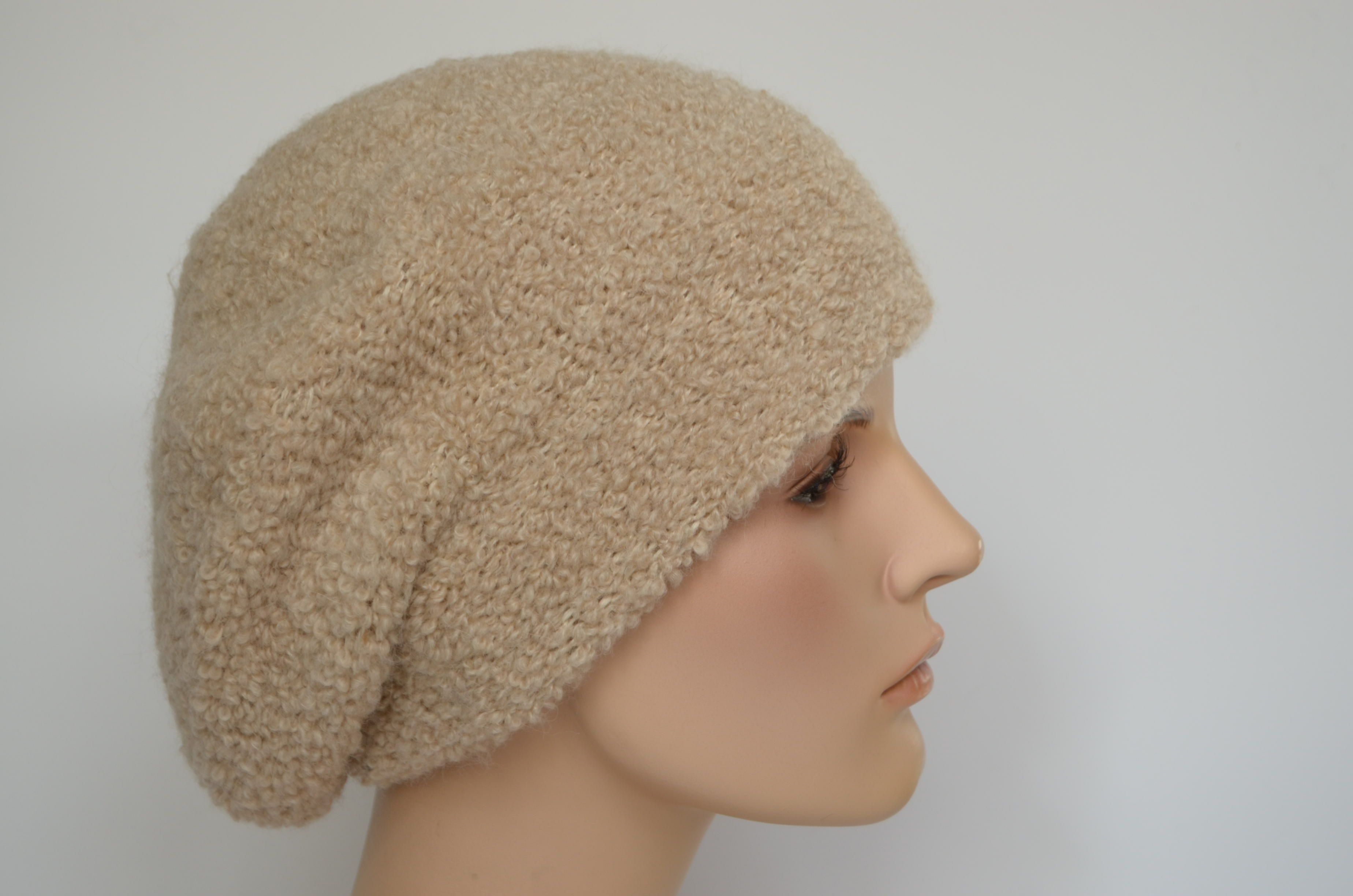 Вязаный берет бежевого цвета из альпака вязаный зимния для женщин