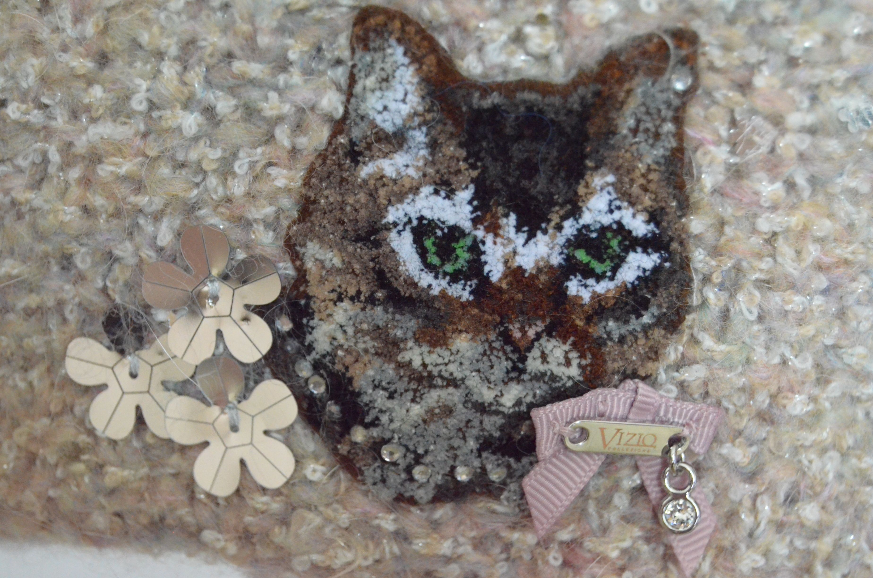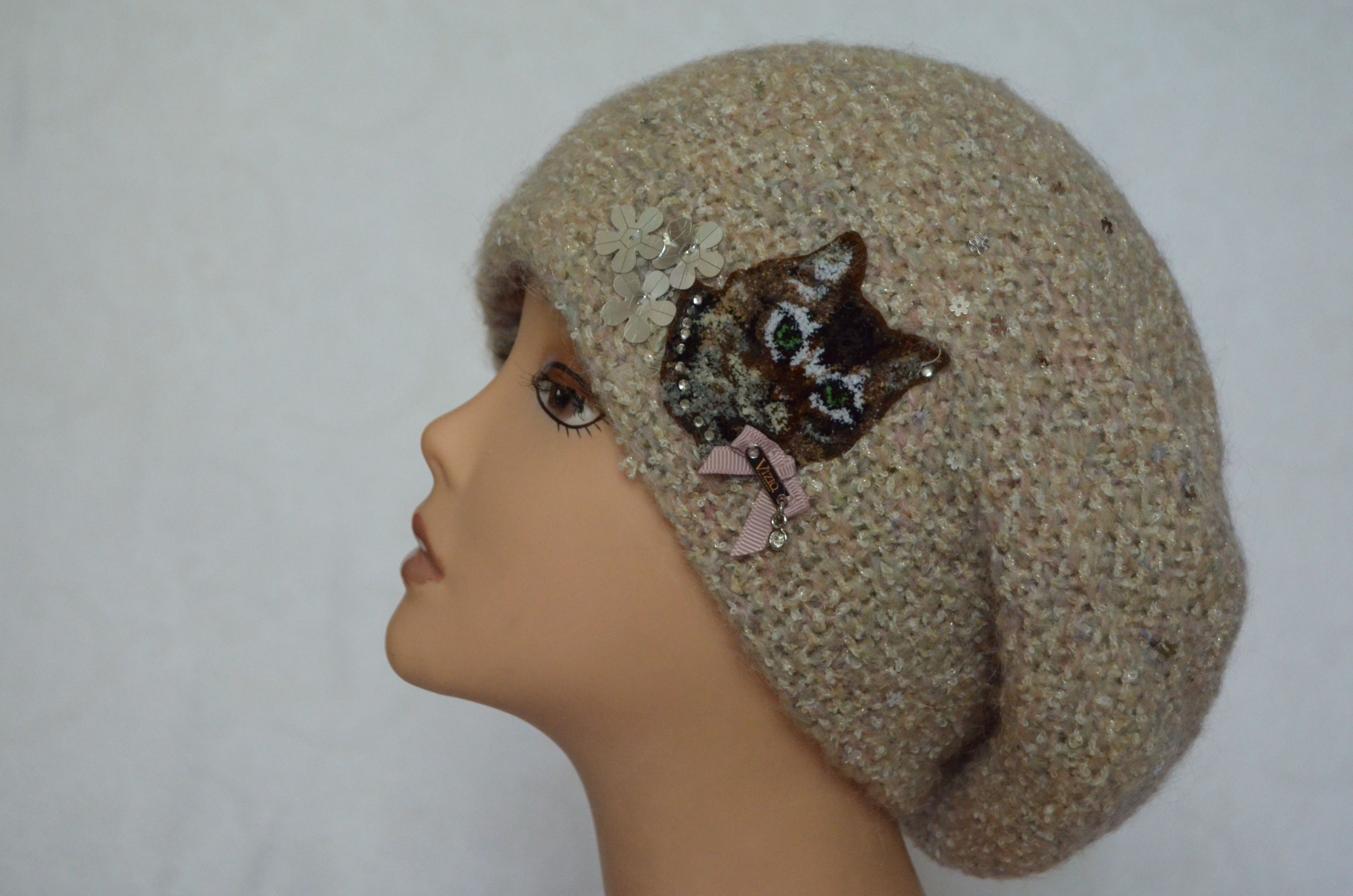 Купить вязаный берет с кошкой и крупными пайетками Визио Италия Вы можете в интернет магазине итальянских шапок и беретов Vizio с доставкой по Москве и России