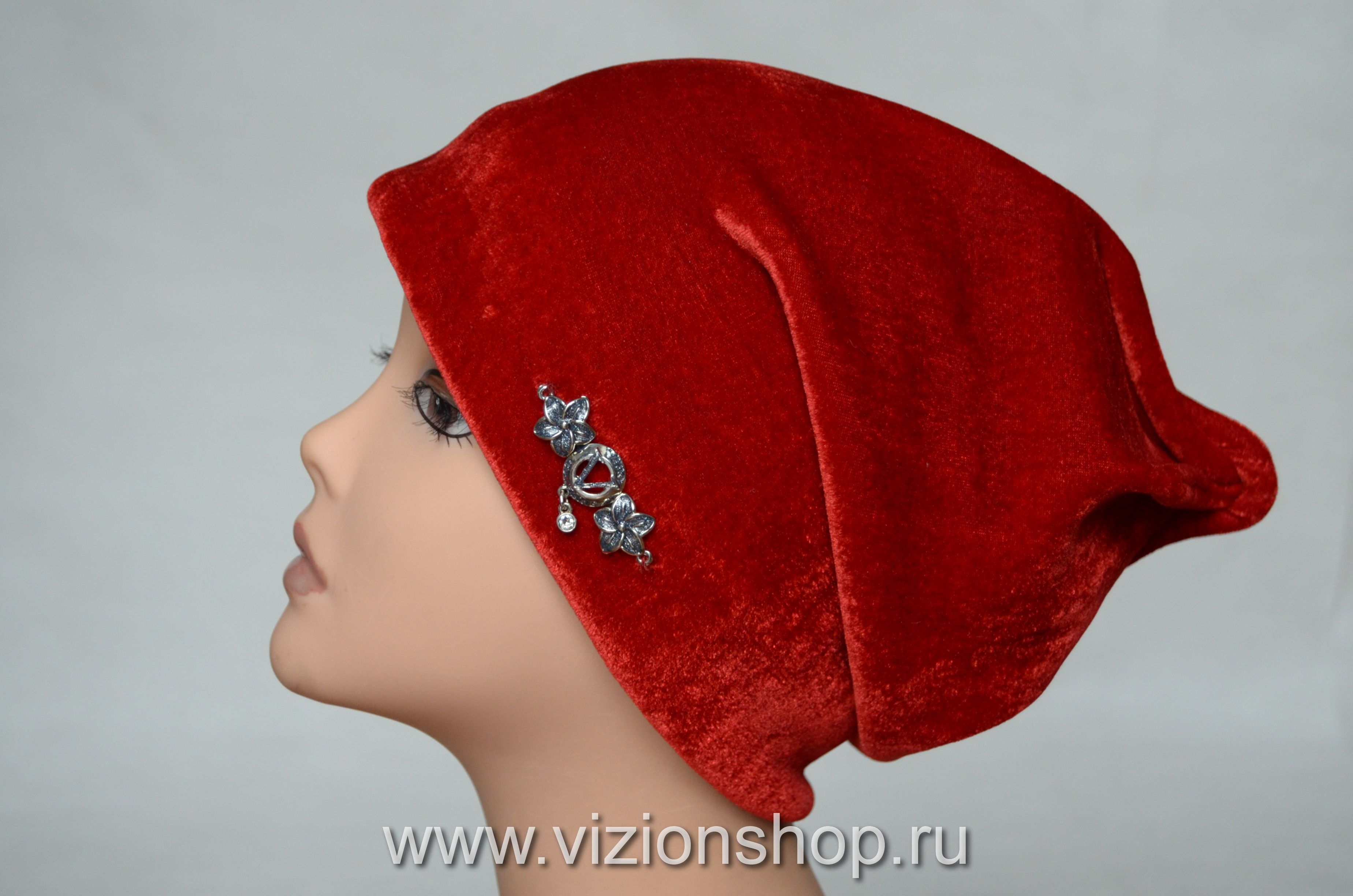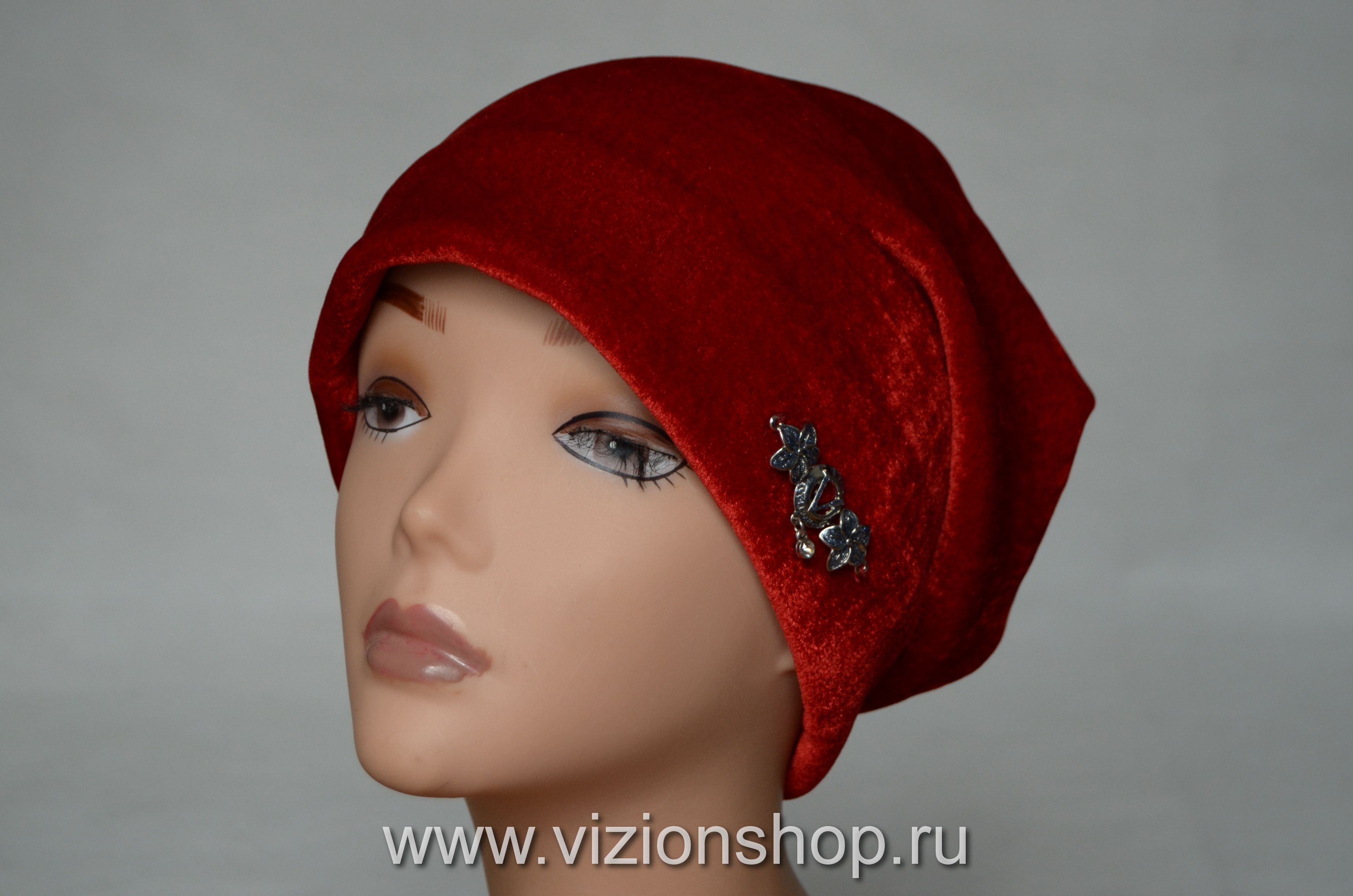 Бархатная женская шапка бордовая Италия Визио Vizio 6222 из коллекции модных итальянских головных уборов бархата осень зима 2018 - 2019 купить в интернет магазине вязаных шапок