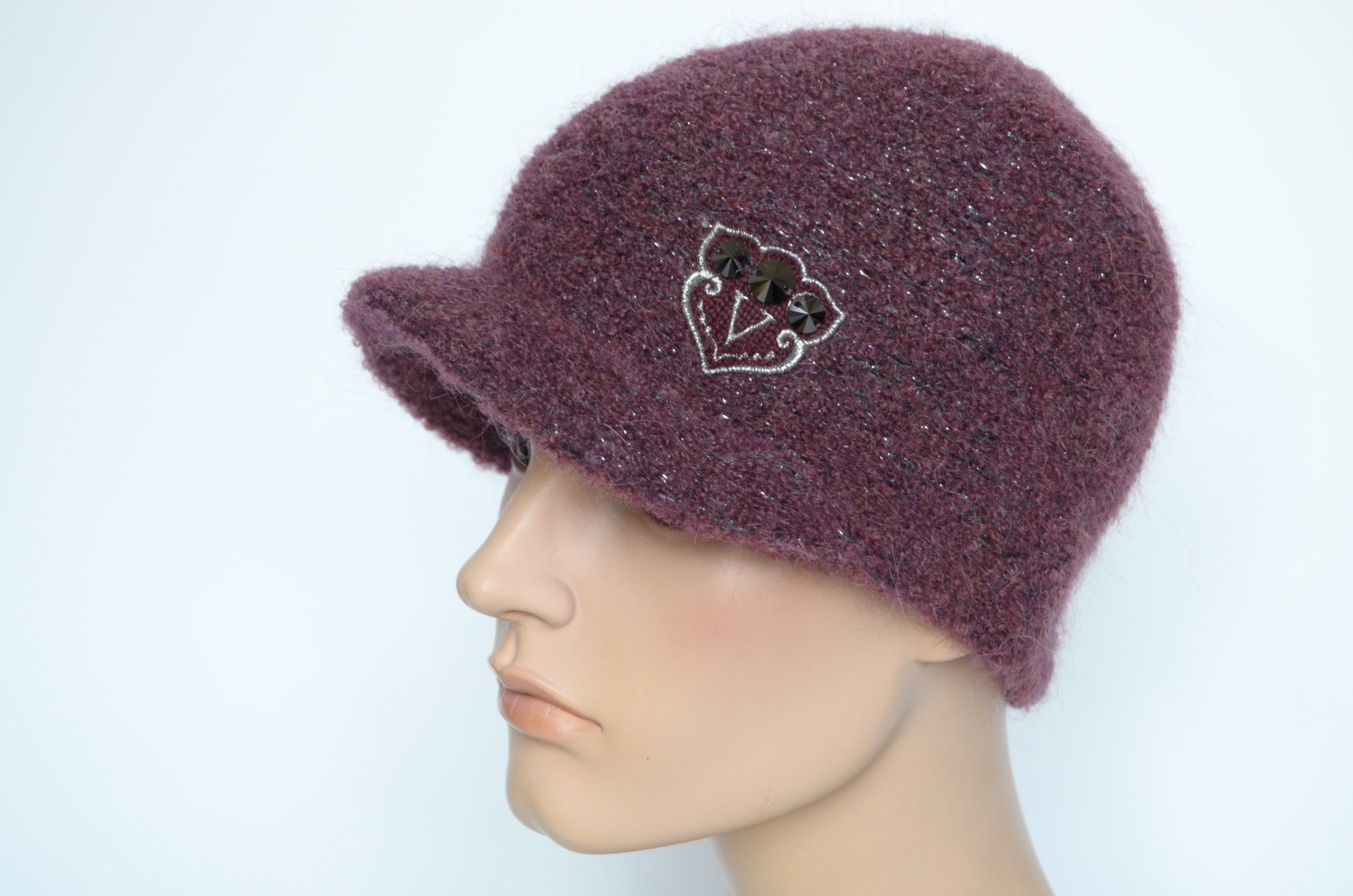 Приобрести зимнюю жокейку с украшением для женщин Визио Италия зима 2023 бордового цвета вы можете в интернет магазине итальянских головных уборов для женщин в Москве и доставкой по России