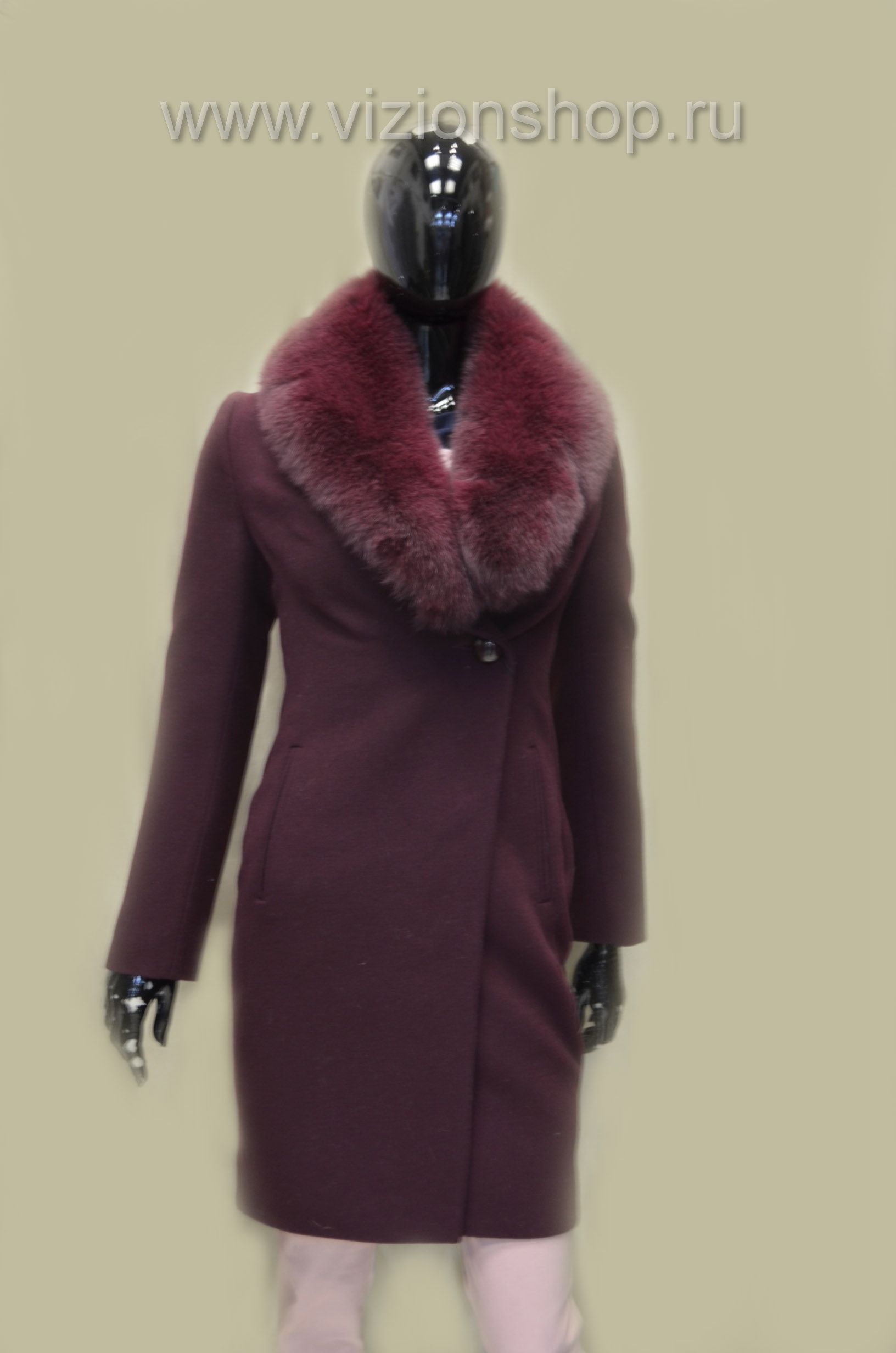 Пальто бордовое для женщин Arti moda 121 с меховым воротником бордового цвета купить в магазине женского пальто в Москве