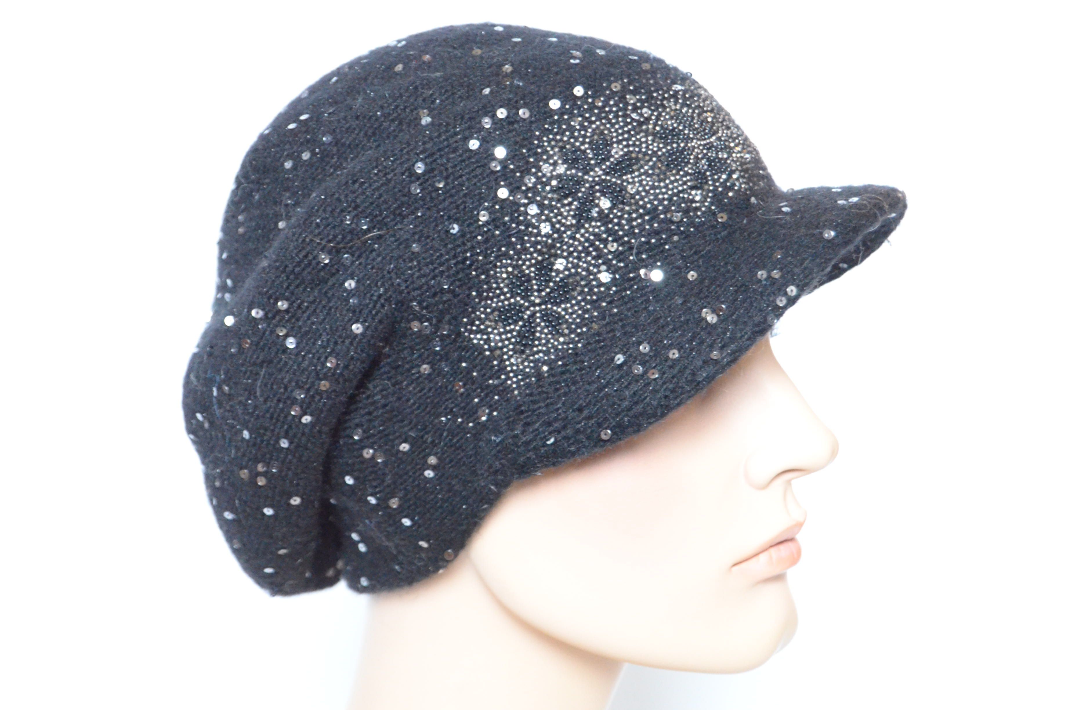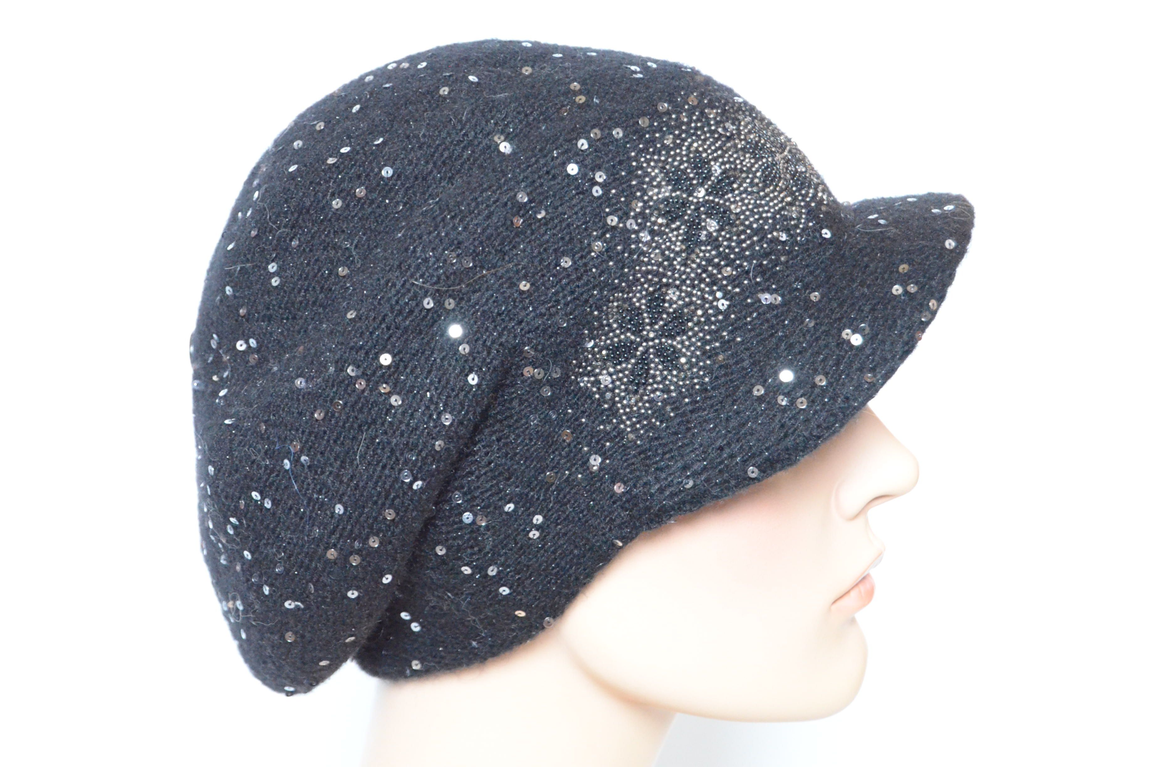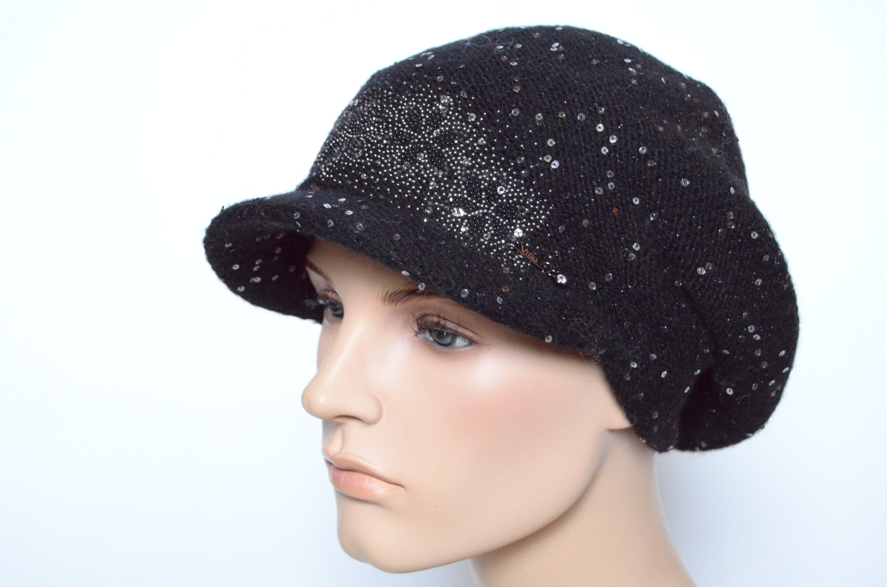 Итальянская вязаная кепка с пайетками и украшениями стразами зима 2022 черного цвета с пайетками Vizio 6978 новая коллекция головных уборов Визио Италия