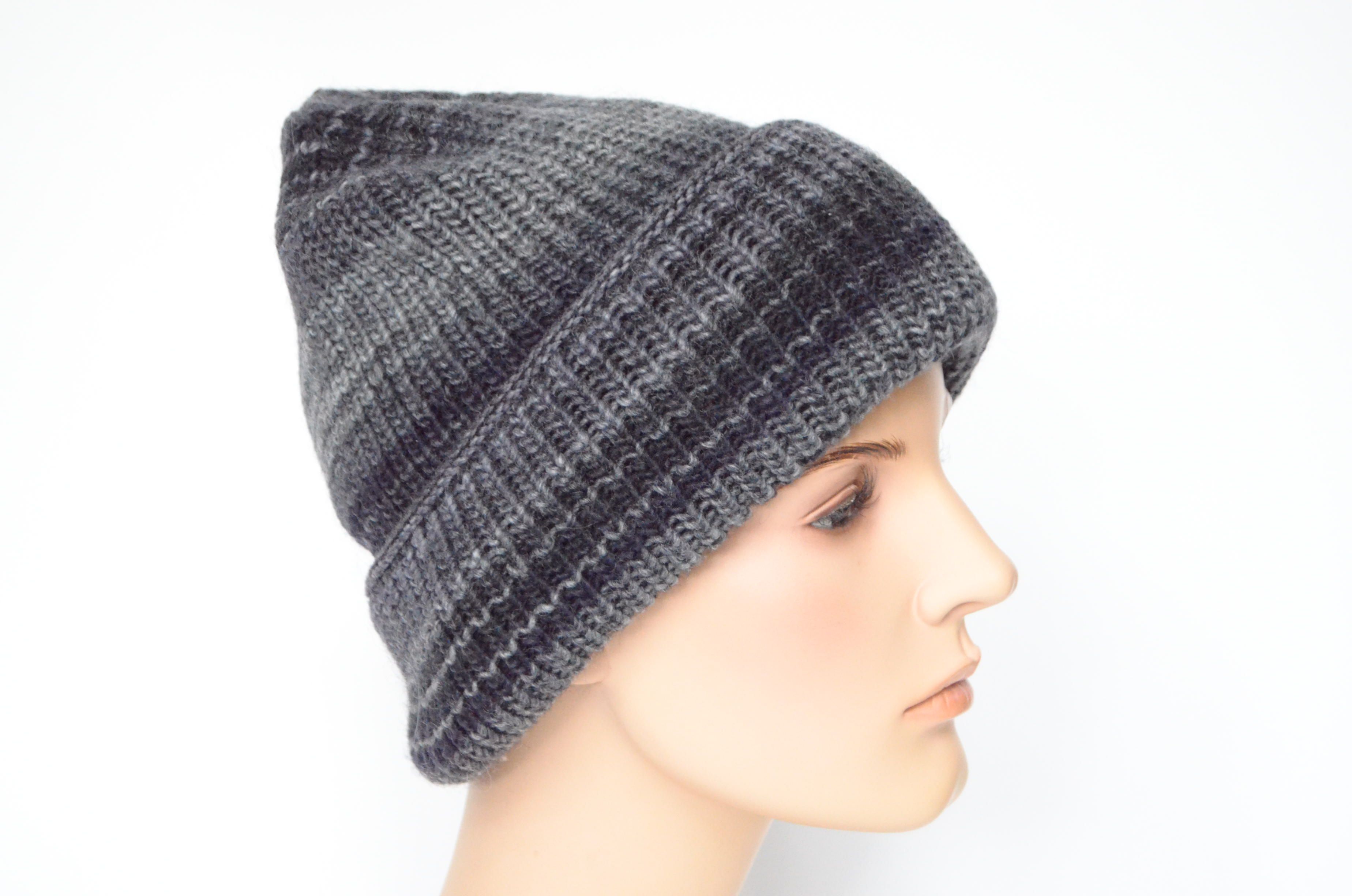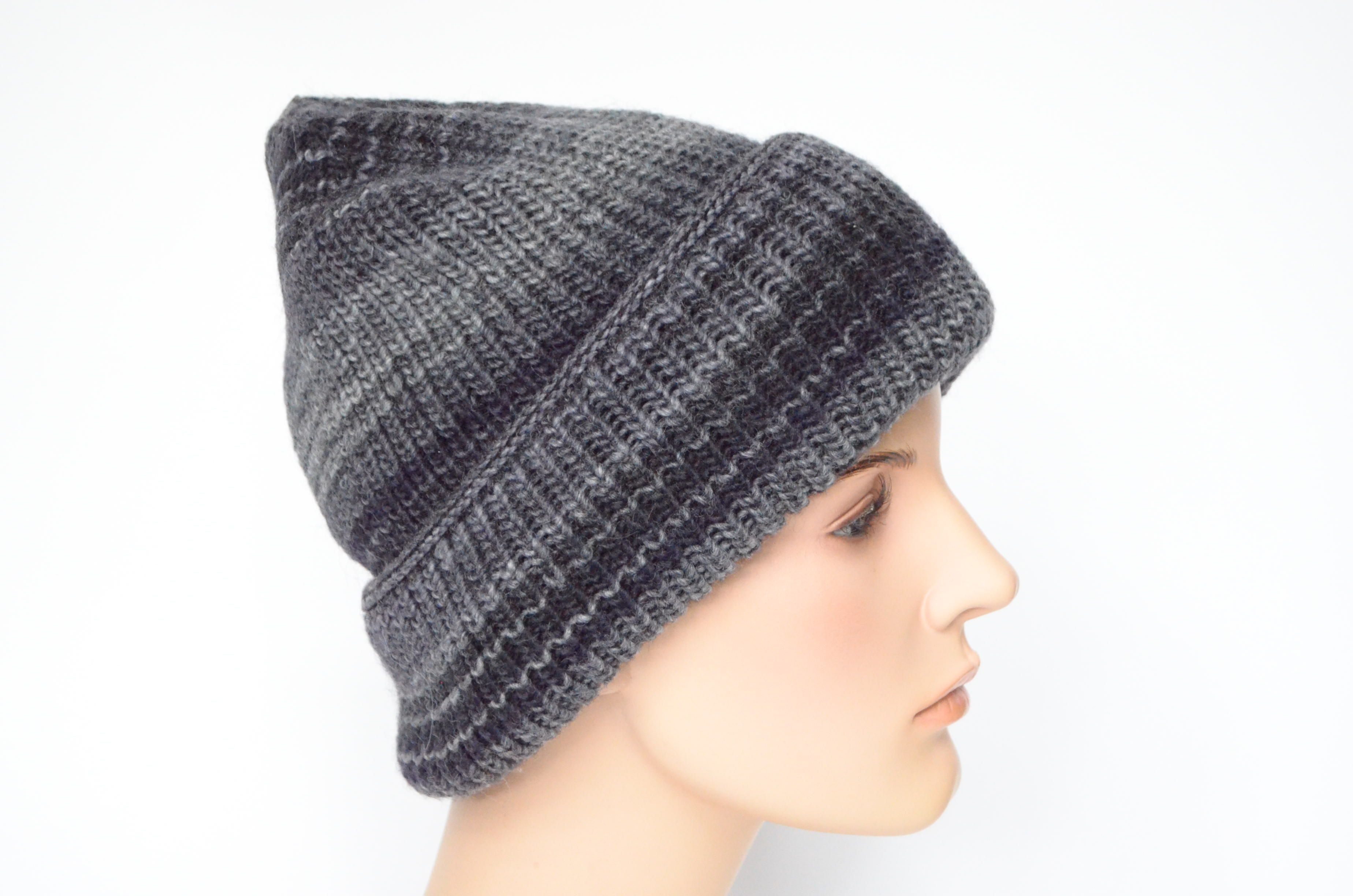 Черная женская шапка с отворотом зимняя двойная с вязаным подкладом