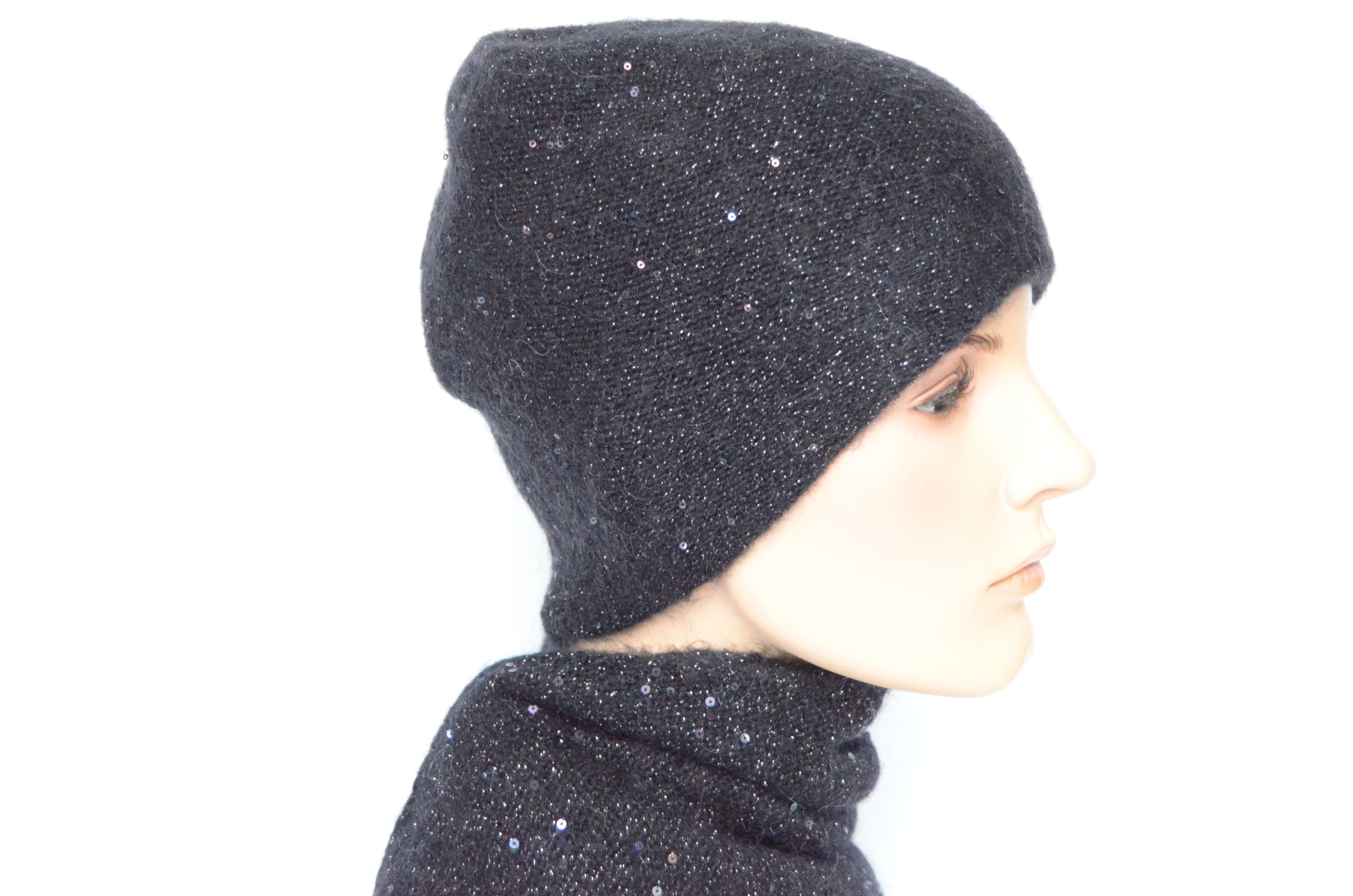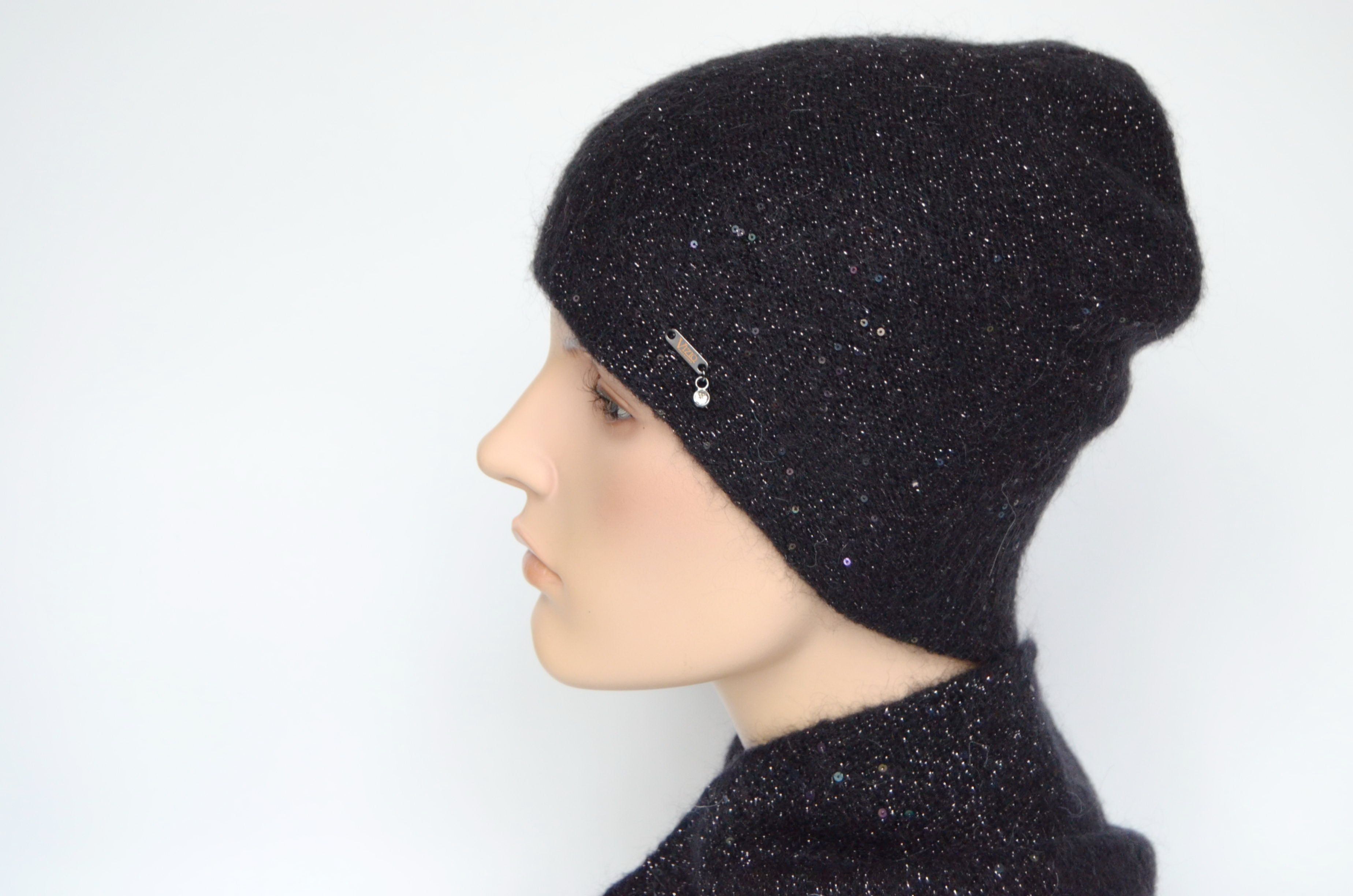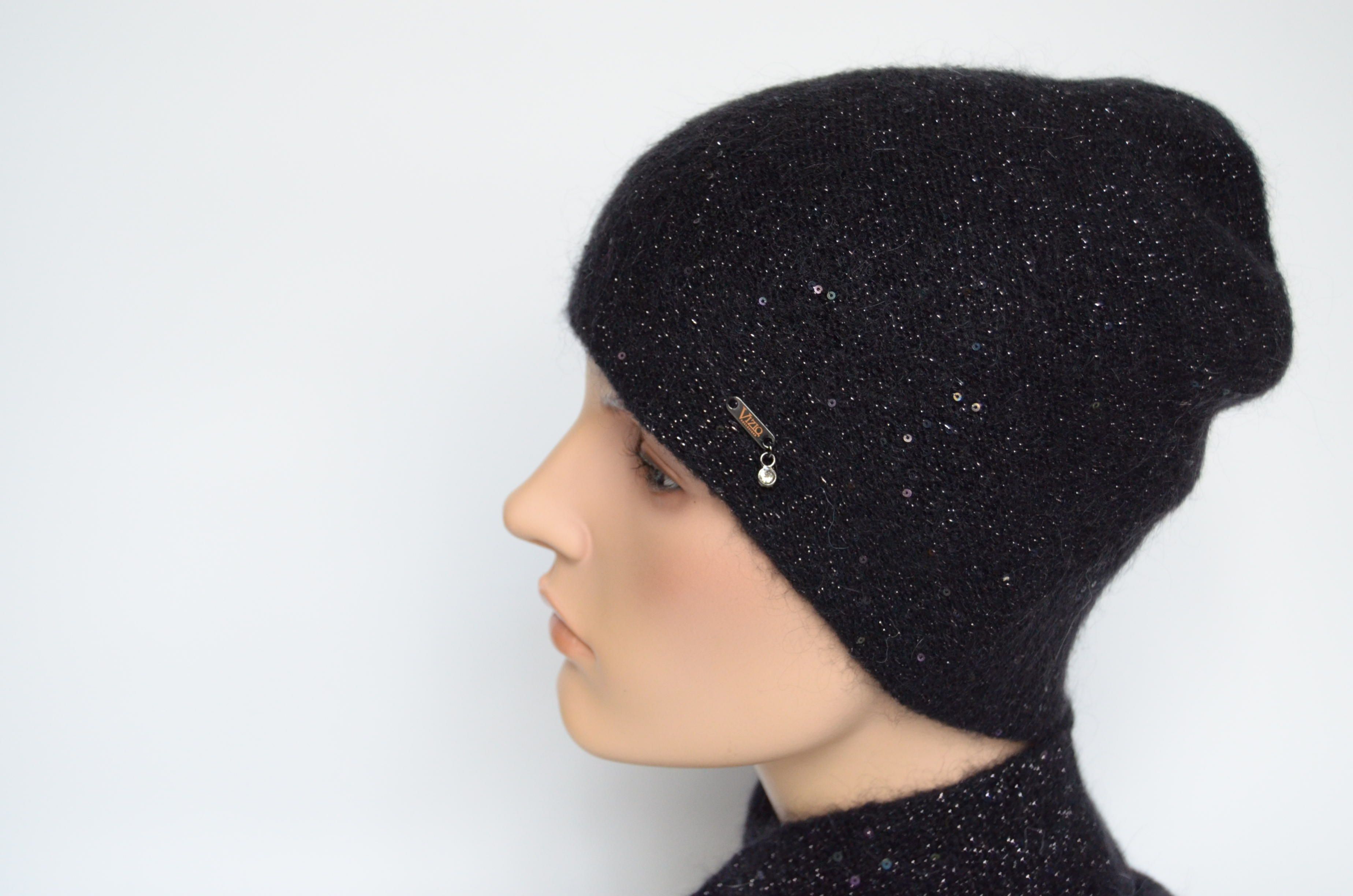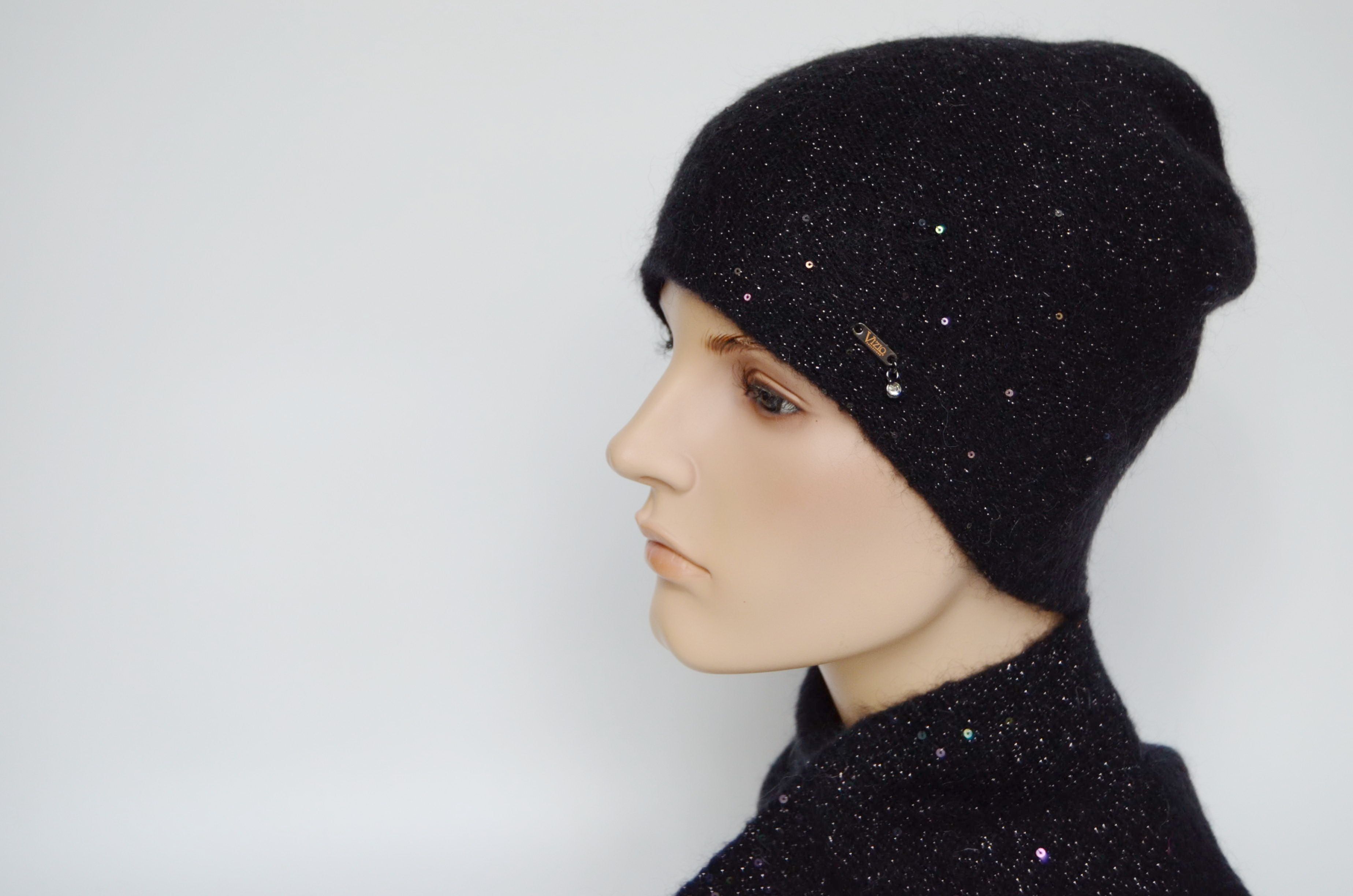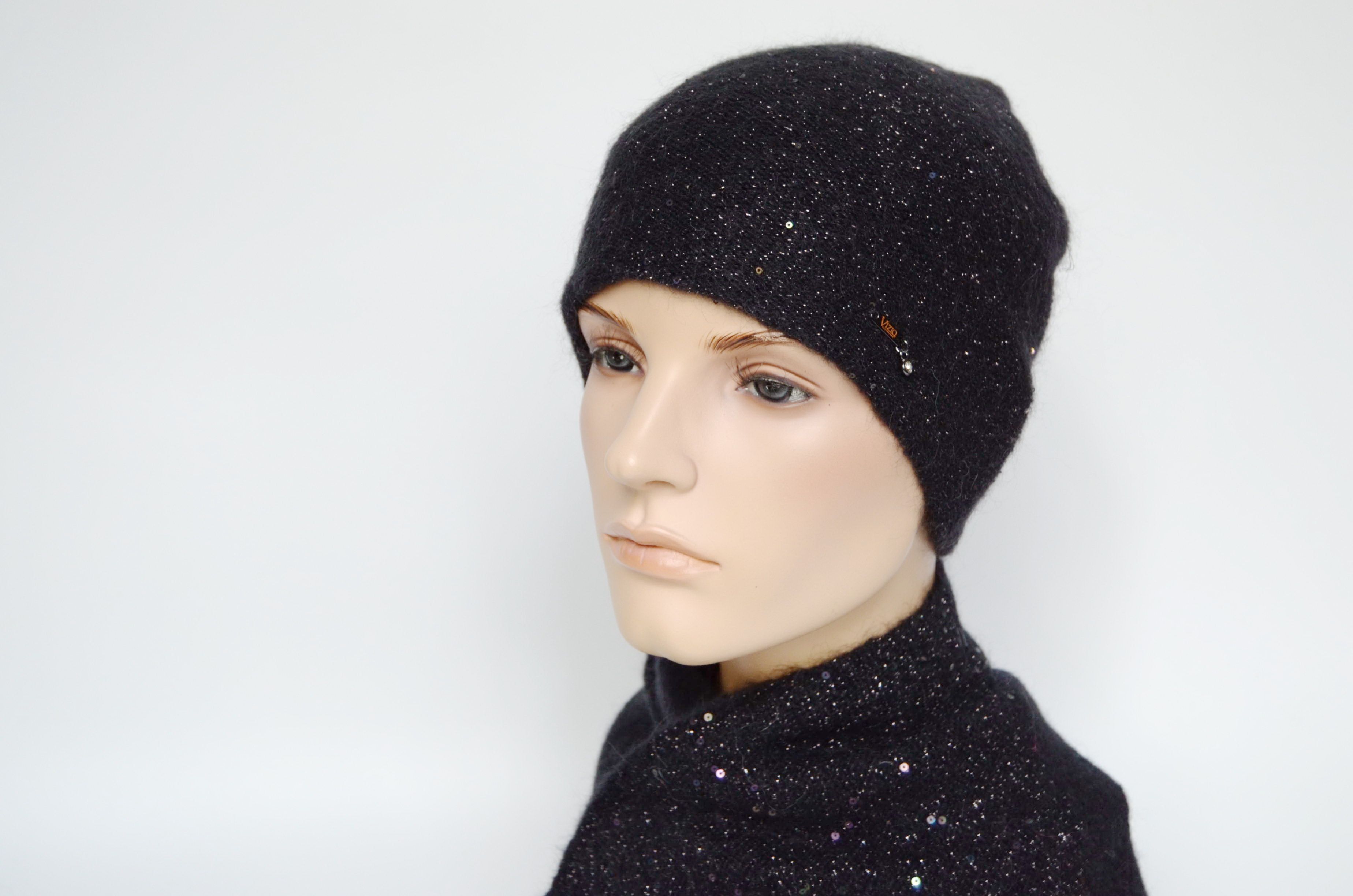 Шапка с пайетками черного цвета Vizio Италия 8058 CY зима 2022 - 2023 купить в магазине итальянских головных уборов для женщин