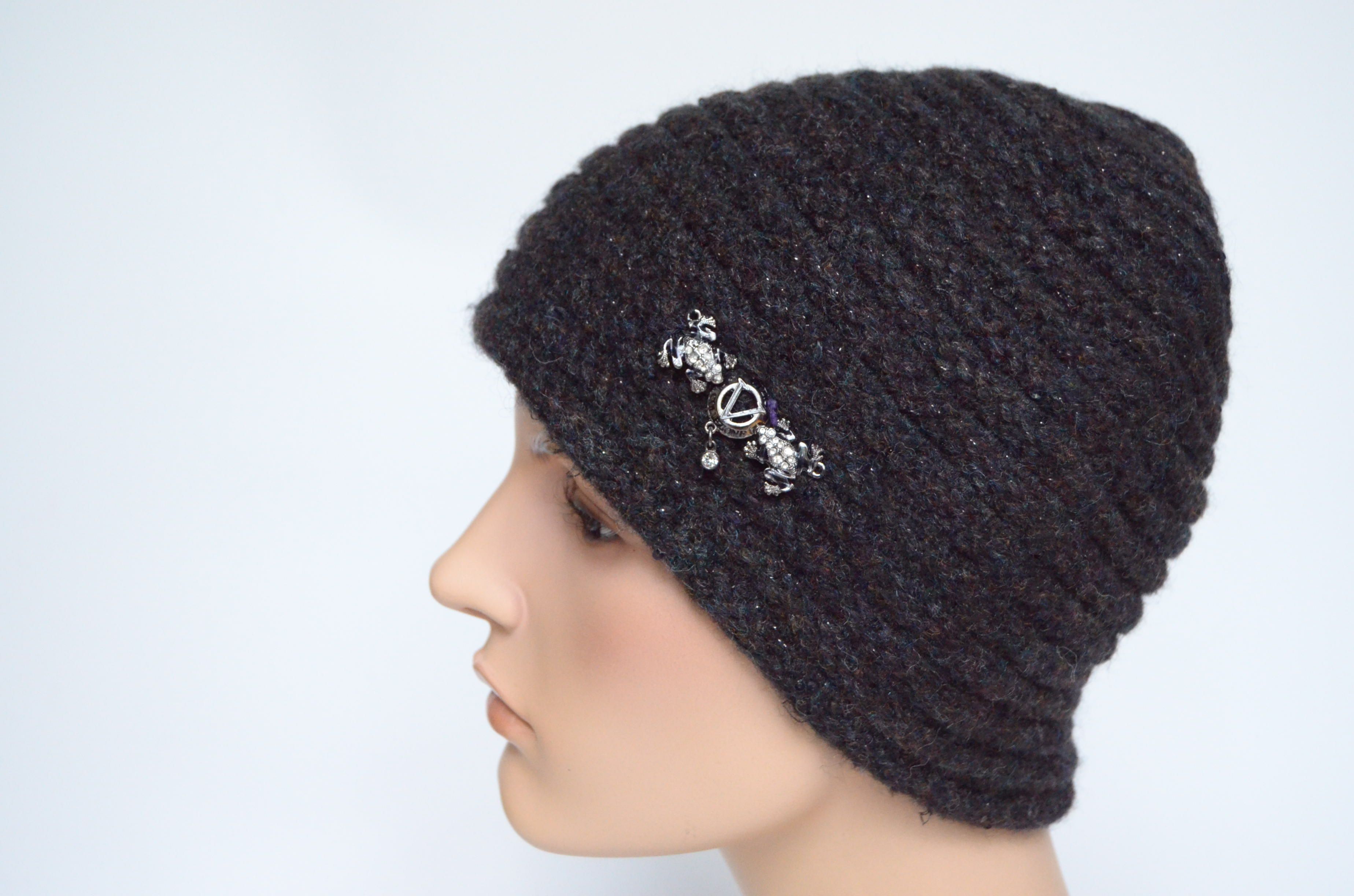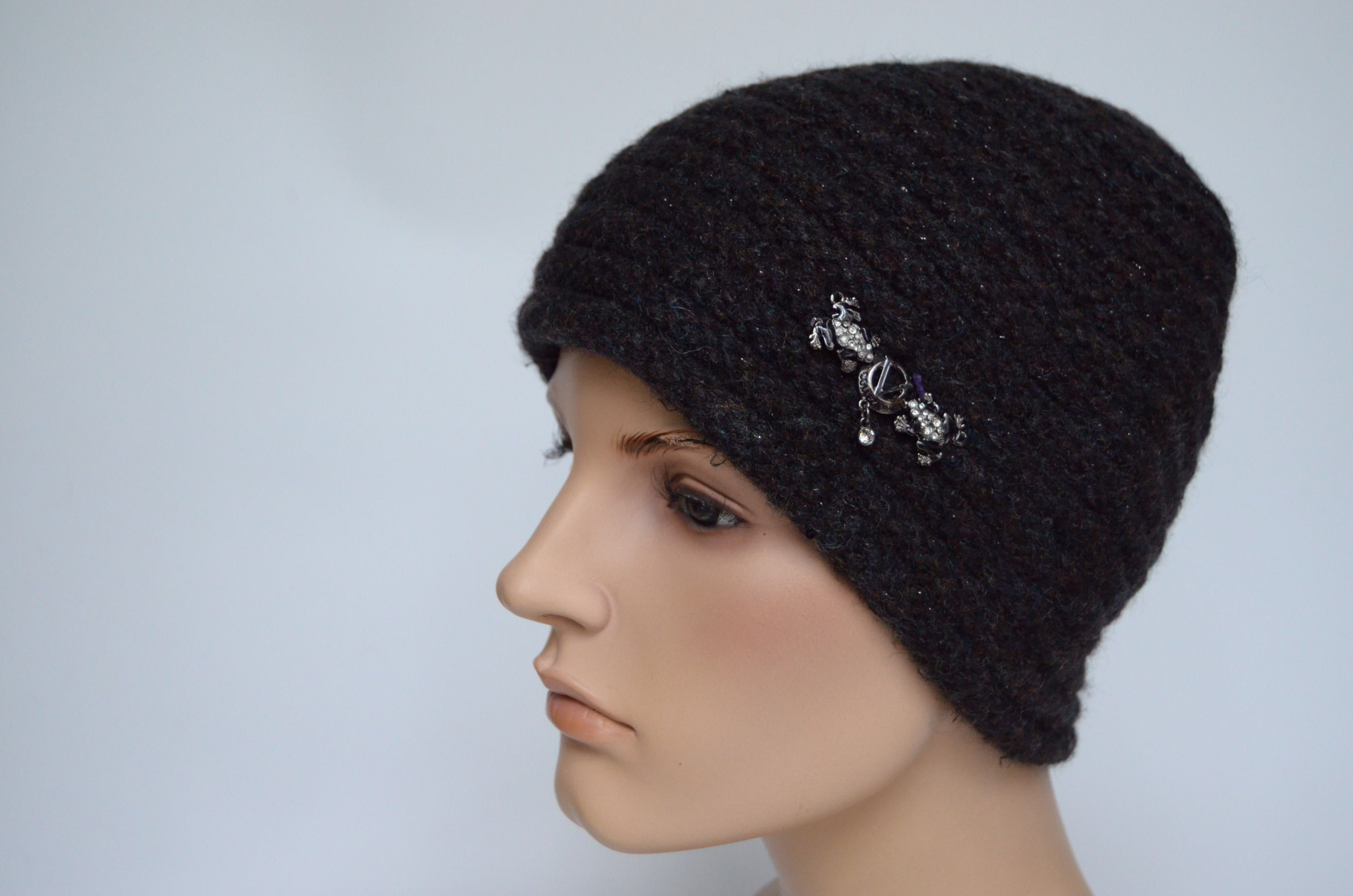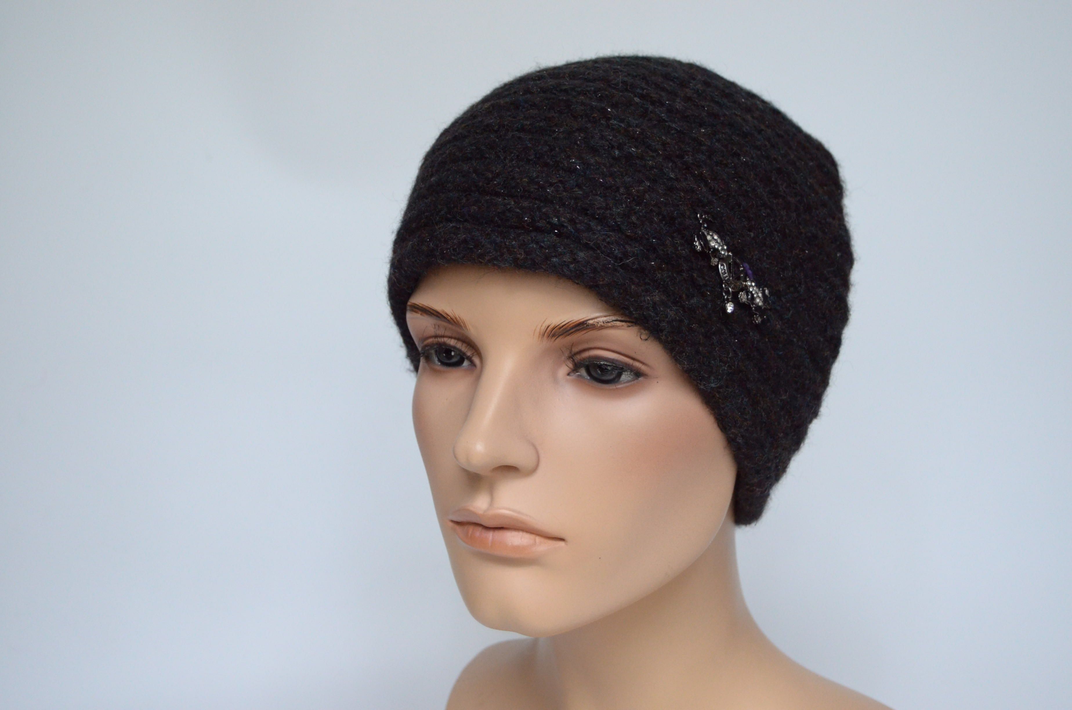 Шляпка клош черная женская зимняя Vizio Италия 6126 зима от итальянского производителя вязаных шляп Vizio Collezione