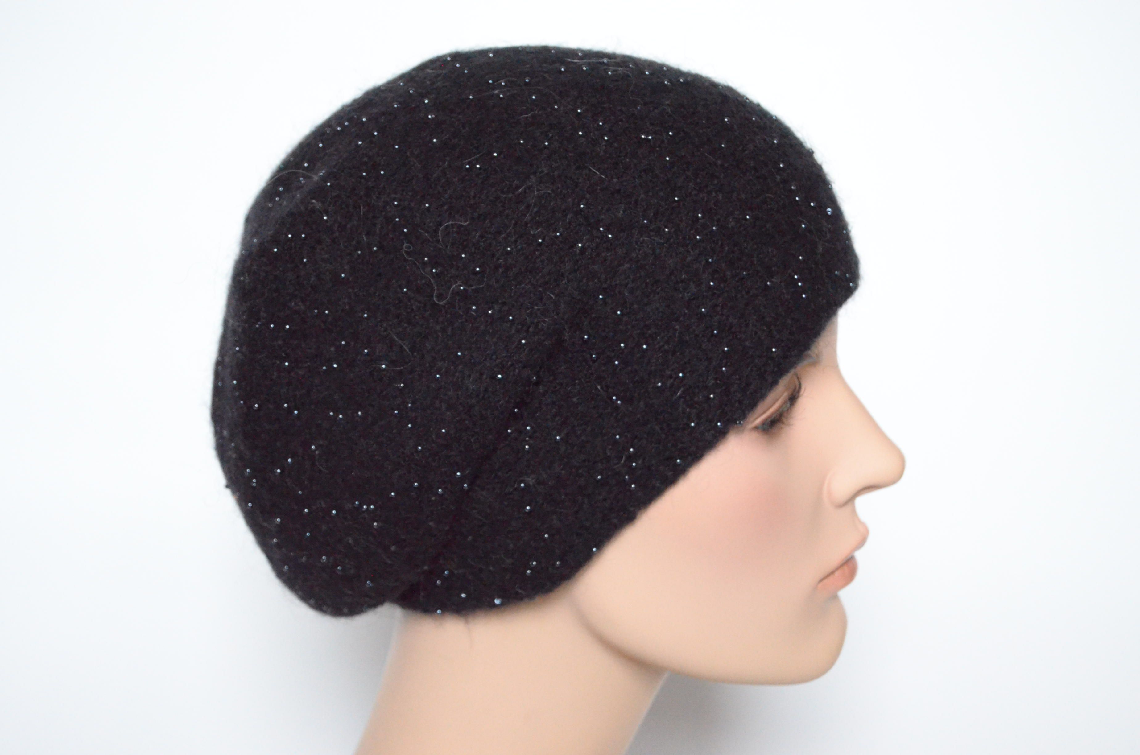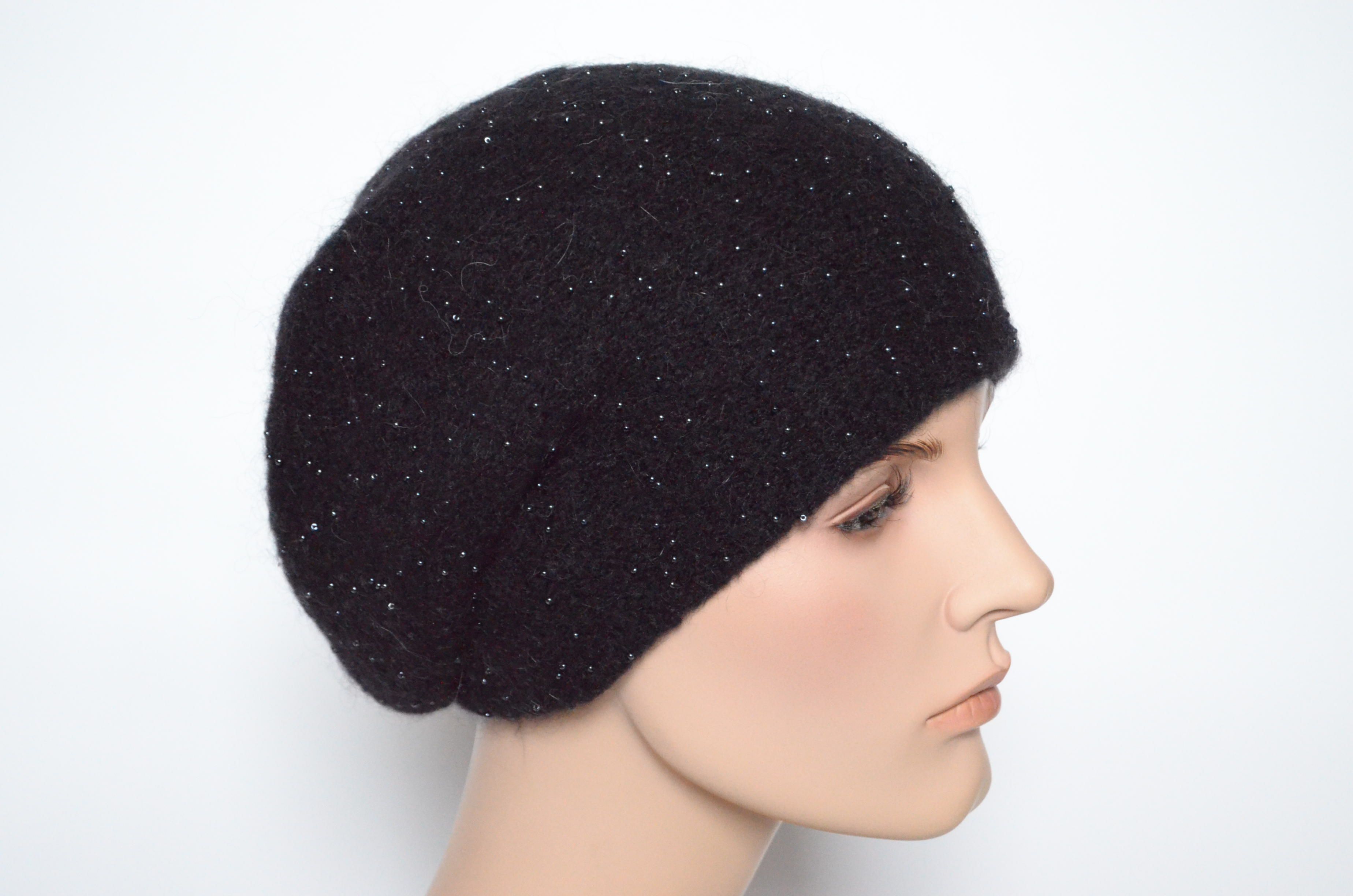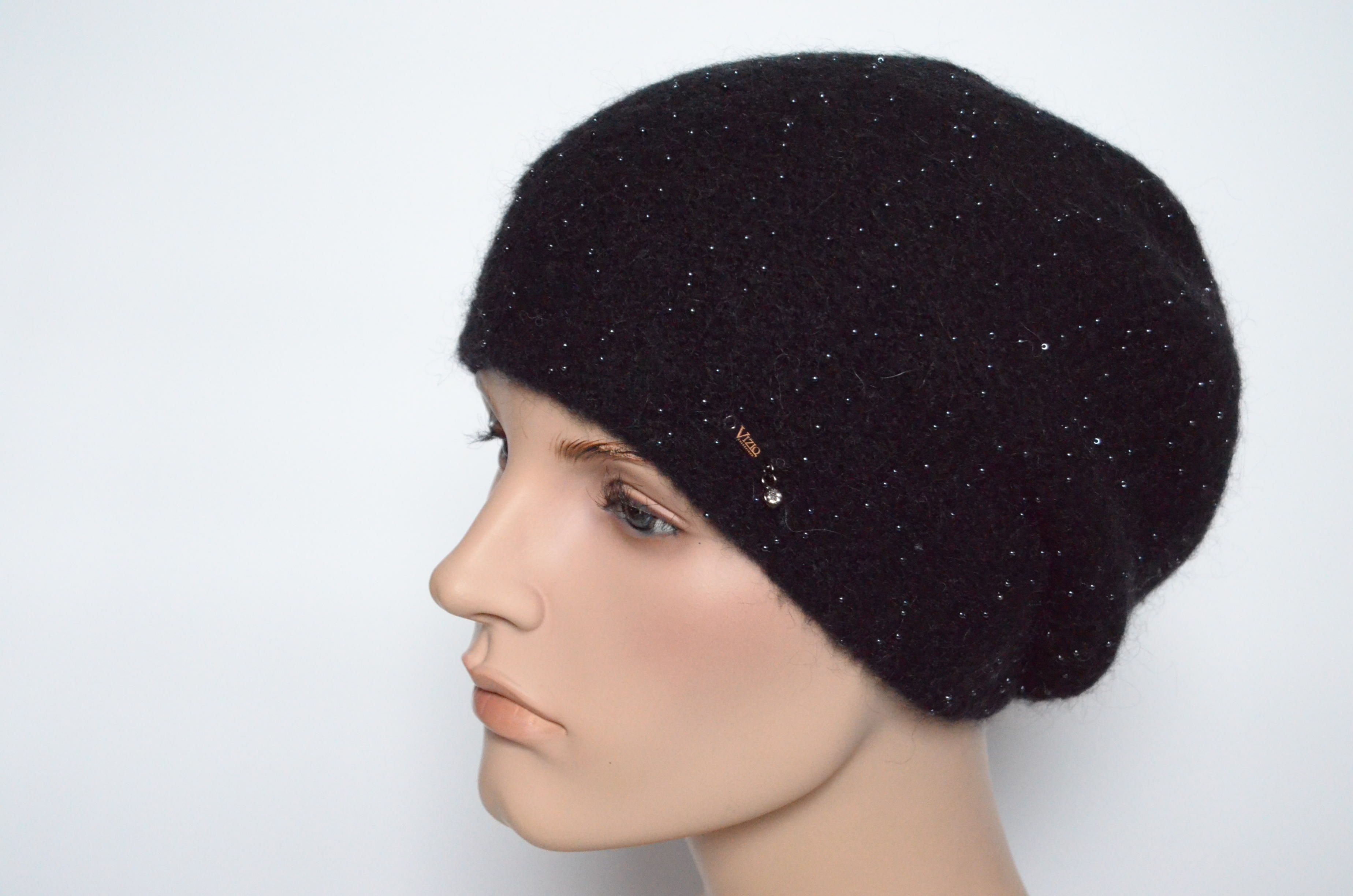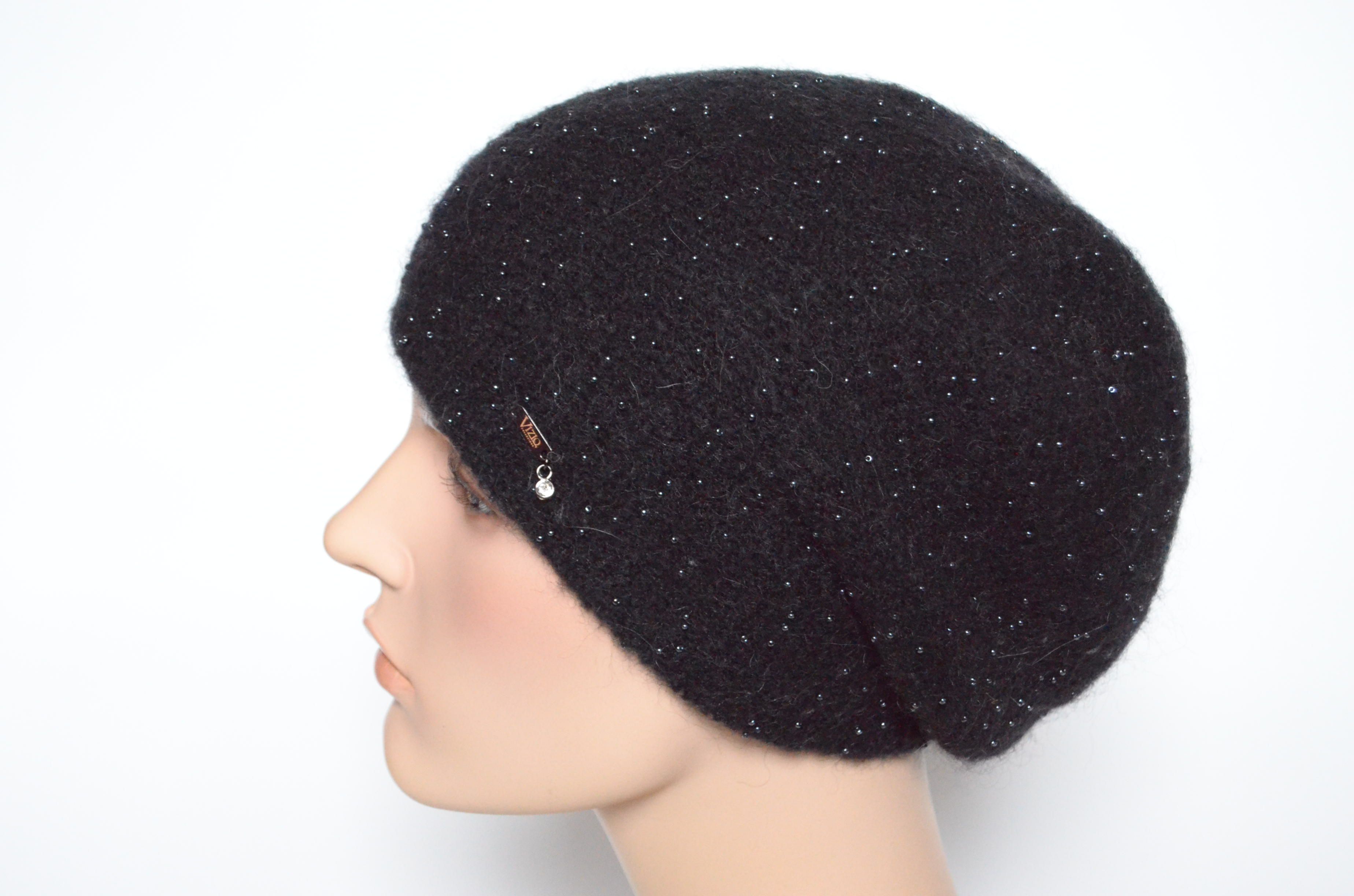 Берет черный с бисером женский вязаный Vizio Collezione 6727 зимний в интернет магазине головных уборов Италии