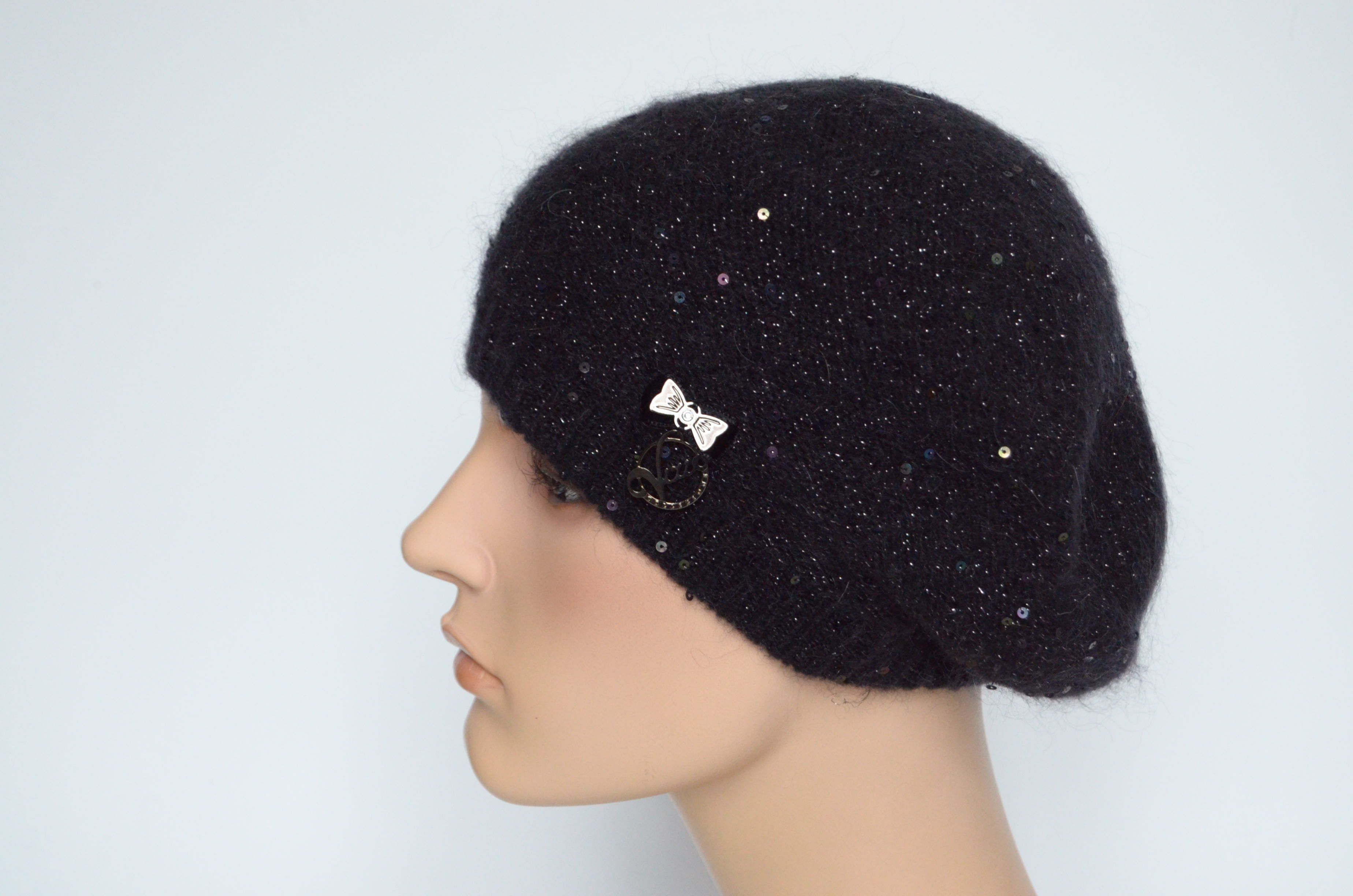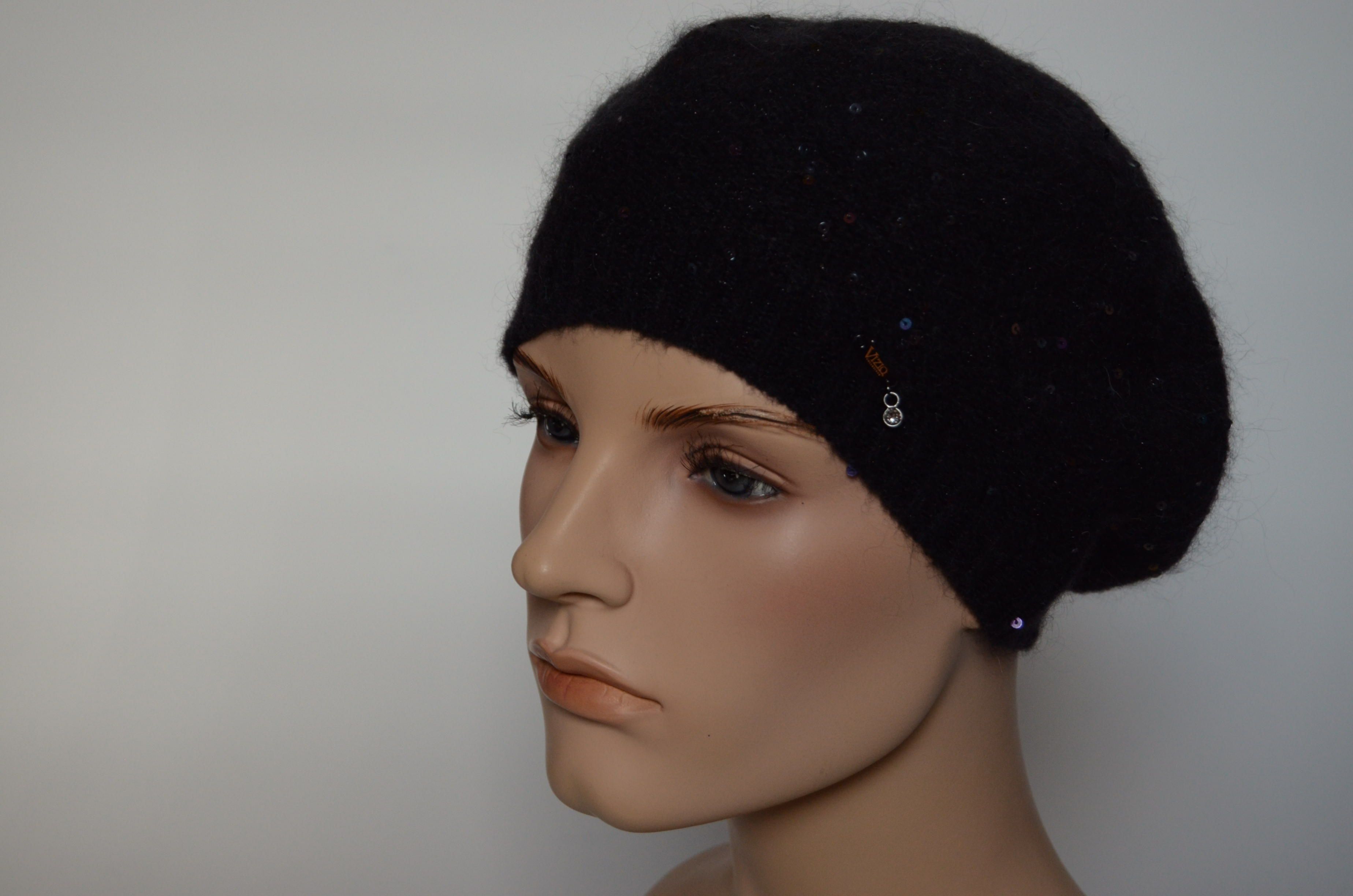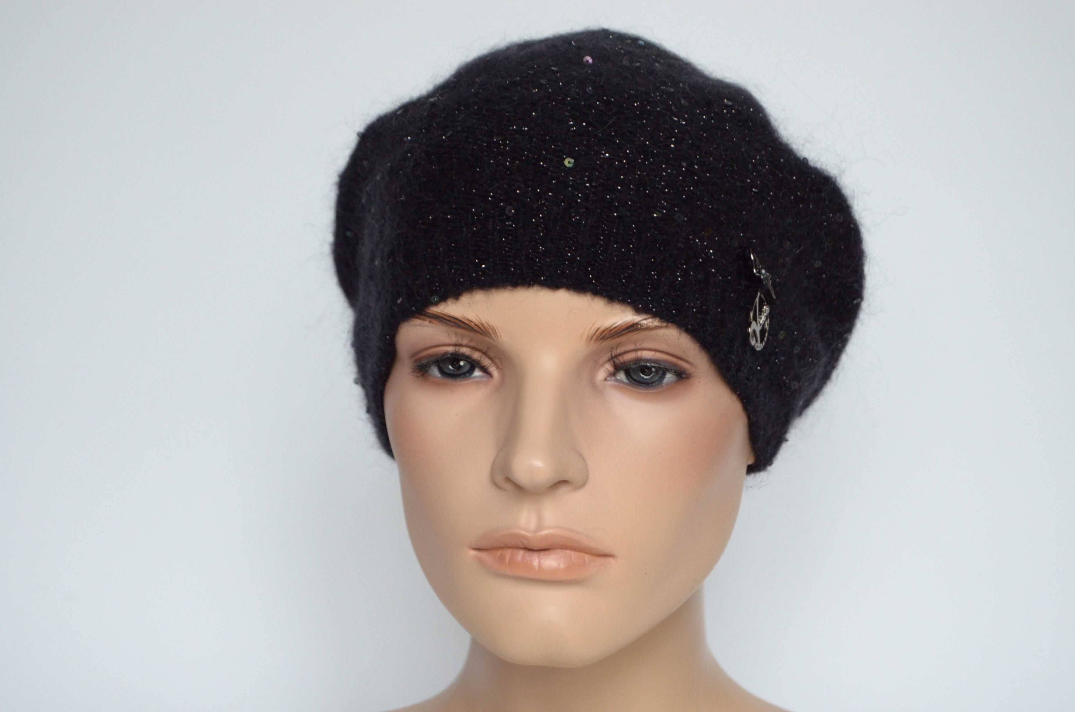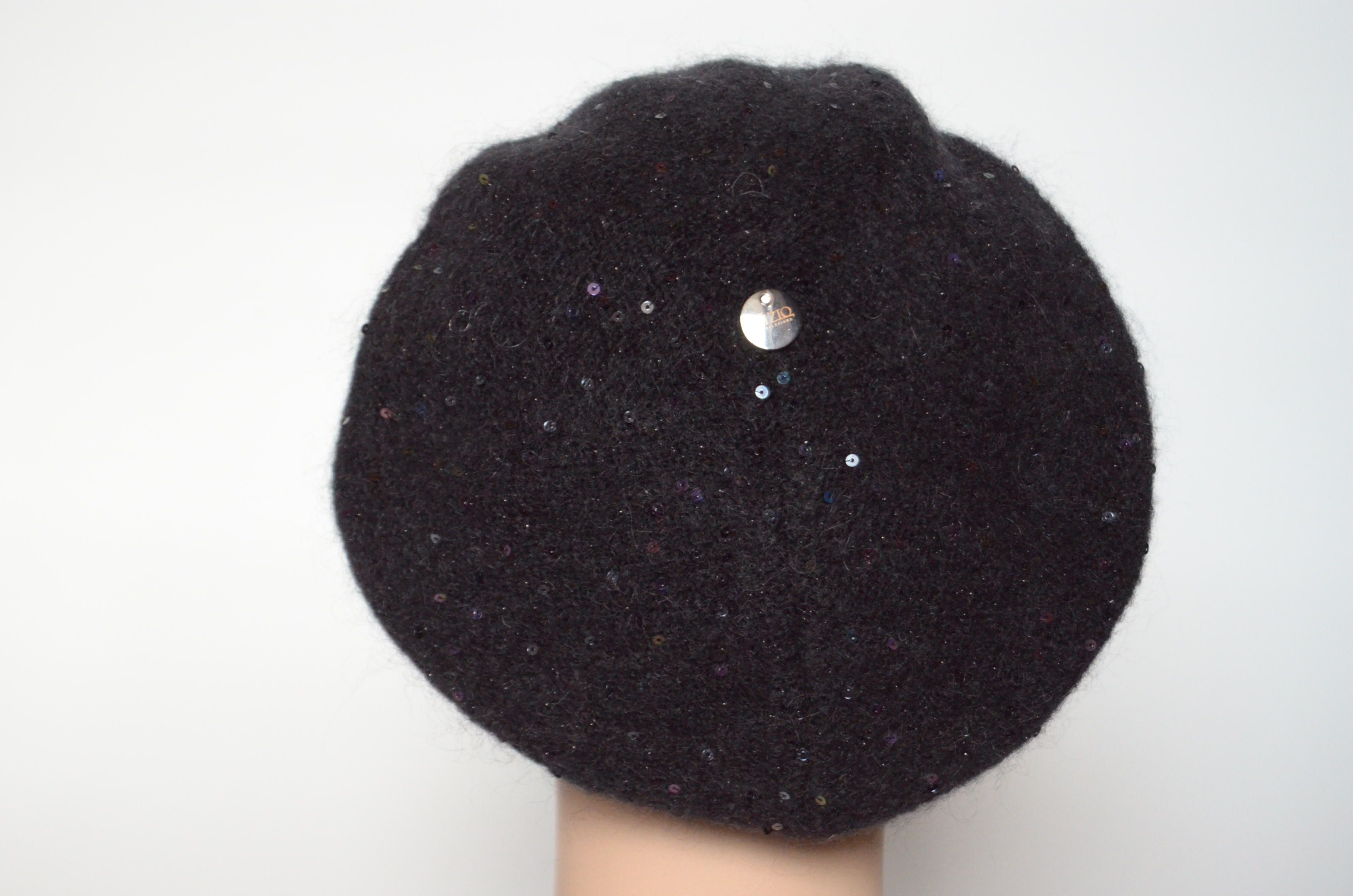 Купить женский одинарный вязаный берет черного цвета с пайетками Vizio Италия вы можете в интернет магазине итальянских шапок и беретов для женщин с доставкой по Москве и России